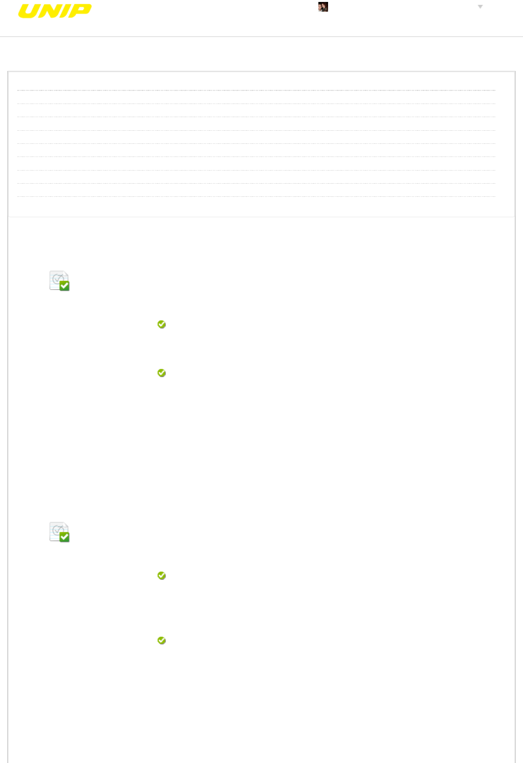 Revisar envio do teste: ATIVIDADE TELEAULA ICITOLOGIA 6643-60_52502_R_20192 CONTEÚDO Usuário gisele.miranda4 @unipinterativa.edu.br Curso CITOLOGIA Teste ATIVIDADE TELEAULA I Iniciado 11/11/19 15:47 Enviado 11/11/19 15:48 Status Completada Resultado da tentativa 0 em 0 pontos Tempo decorrido 1 minuto Autoteste O aluno responde e o resultado do aluno não é visível ao professor. Resultados exibidos Todas as respostas, Respostas enviadas, Respostas corretas, Comentários, Perguntas respondidas incorretamente Pergunta 1 Resposta Selecionada: c. Respostas: a. b. c. d. e. Feedback da resposta: Compostos orgânicos e inorgânicos constituem a matéria viva (protoplasma). O mais abundante é a água, seguida das proteínas e dos lipídios. Cada composto possui função bem conhecida nos dias atuais. A glândula tiroide ou tireoide produz hormônios T3, T4 e a calcitonina. O T4 é denominado também de tiroxina. Qual é a natureza química do T4? Glicoproteína. Carboidrato. Lipídio. Glicoproteína. Sal mineral. Proteína. Resposta: c Pergunta 2 Resposta Selecionada: d. Respostas: a. b. c. d. e. Feedback da resposta: O núcleo celular é ácido, logo, possui a�nidade por corante básico, a hematoxilina; já o citoplasma é alcalino, possui a�nidade pelo corante eosina. Quimicamente, os ribossomos são constituídos por ácido ribonucleico (RNA). Pergunta-se: Qual das organelas citoplasmáticas é evidenciada pelo corante hematoxilina? Retículo Endoplasmático Granular ou Rugoso (REG / RER). Golgi. Mitocôndrias. Retículo Endoplasmático Agranular ou Liso (REAg / REL). Retículo Endoplasmático Granular ou Rugoso (REG / RER). Centríolos. Resposta: d Pergunta 3 UNIP EAD BIBLIOTECAS MURAL DO ALUNO TUTORIAIS LABORATÓRIOSCONTEÚDOS ACADÊMICOS 0 em 0 pontos 0 em 0 pontos 0 em 0 pontos gisele.miranda4 @unipinterativa.edu.br Segunda-feira, 11 de Novembro de 2019 15h48min54s GMT-03:00 Resposta Selecionada: a. Respostas: a. b. c. d. e. Feedback da resposta: Qual alternativa abaixo indica corretamente e respectivamente células classi�cadas como: Livre, haploide, permanente e estável? Leucócito, espermatozoide, neurônio e osteoblasto. Leucócito, espermatozoide, neurônio e osteoblasto. Espermatozoide, leucócito, neurônio e osteoblasto. Neurônio, espermatozoide, osteoblasto e leucócito. Neurônio, espermatozoide, leucócito e osteoblasto. Leucócito, espermatozoide, osteoblasto e neurônio. Resposta: a Pergunta 4 Resposta Selecionada: e. Respostas: a. b. c. d. e. Feedback da resposta: Um estudante, ao observar uma determinada célula, com aumento de 100 x no microscópio óptico composto, visualizou algumas partes fundamentais como núcleo e citoplasma. Ao passar para o aumento máximo de 1.000 x, apenas notou a presença do núcleo ocupando todo o campo. Pergunta-se: Qual é o tamanho aproximado deste núcleo? 150 µm. 1.500 µm. 750 µm. 500 µm. 375 µm. 150 µm. Resposta: e ← OK 0 em 0 pontos