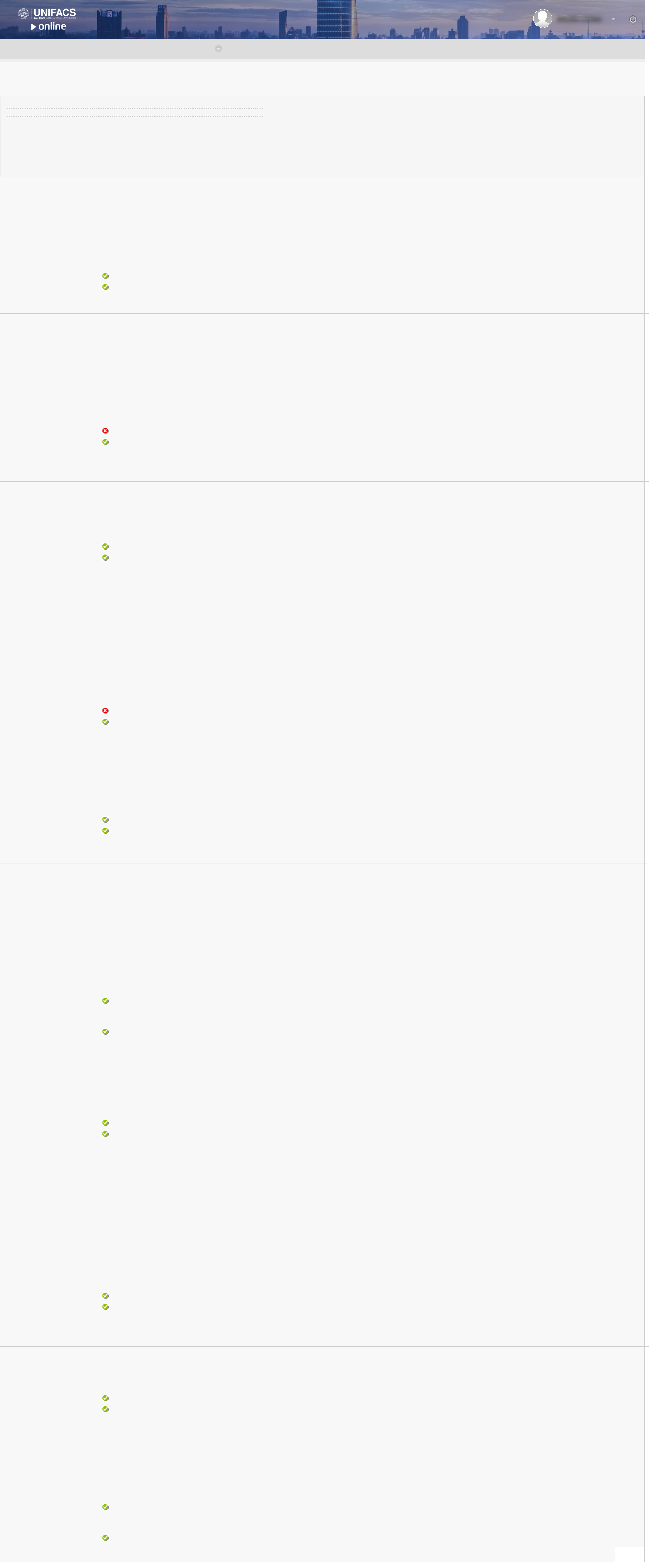 Revisar envio do teste: ATIVIDADE 1ADS0277 FUNDAMENTOS PARA COMPUTAÇÃO PNA (ON) - 201920.1698.03 Unidade 1 Revisar envio do teste: ATIVIDADE 1 Segunda-feira, 30 de Setembro de 2019 19h31min11s BRT Usuário BRUNO LESSA Curso ADS0277 FUNDAMENTOS PARA COMPUTAÇÃO PNA (ON) - 201920.1698.03 Teste ATIVIDADE 1 Iniciado 04/09/19 19:07 Enviado 04/09/19 19:21 Status Completada Resultado da tentativa 2 em 2,5 pontos Tempo decorrido 13 minutos Resultados exibidos Respostas enviadas, Respostas corretas, Comentários Pergunta 1 Resposta Selecionada: Resposta Correta: Feedback da resposta: As memórias são componentes de hardware utilizadas para o armazenamento de dados em sistemas computacionais. Podem ser classificadas com relação à volatilidade dos dados armazenados, tamanho, custo, velocidade e desempenho, o que auxilia na definição do tipo adequado de memória para as necessidades demandadas. Com relação ao conteúdo estudado sobre memórias, ordene as alternativas a seguir das memórias de menor (1) para maior desempenho (5). ( ) Cache L3. ( ) Memória Principal. ( ) Cache L2. ( ) Disco Rígido. ( ) Cache L1. Assinale a alternativa que representa a sequência correta: 3, 2, 4, 1, 5. 3, 2, 4, 1, 5. Resposta correta. A ordem das memórias de pior desempenho para maior desempenho é: disco rígido, memória principal, cache L3, cache L2 e cache L1. Pergunta 2 Resposta Selecionada: Resposta Correta: Feedback da resposta: Um computador tem como função básica a execução de um programa, sendo este uma sequência de instruções armazenadas na memória (STALLINGS, 2010). O processador deve executar instrução por instrução dentro do que foi especificado pelo programa, através de etapas realizadas de forma sequencial. STALLINGS, W. Arquitetura e Organização de Computadores . 8. ed. São Paulo: Pearson Practice Hall, 2010. p. 56. Considerando essas informações sobre as etapas de execução de uma instrução de programa e o conteúdo estudado, analise as afirmativas a seguir e assinale V para a(s) verdadeira(s) e F para a(s) falsa(s): ( ) Na busca de instruções, o processador acessa a memória e busca a próxima instrução a ser executada. ( ) Na decodificação, o processador interpreta a instrução e verifica a operação a ser executada. ( ) Na busca de operandos, o processador executa a instrução, pois tem todos os dados necessários. ( ) No armazenamento de resultados, o resultado da operação é armazenado na memória ou nos registradores. A partir das associações feitas anteriormente, assinale a alternativa que apresenta a sequência correta: V, F, F, V. V, V, F, V. Sua resposta está incorreta. A alternativa não apresenta a sequência correta, pois na etapa de busca de instruções, o processador busca a próxima instrução a ser executada na memória. Na etapa de decodificação, o processador verifica a operação que será executada baseado na sua interpretação da instrução. Na execução que o processador executa a instrução. No armazenamento dos resultados, a instrução executada tem seu resultado armazenado na memória ou no registrador do processador. Pergunta 3 Resposta Selecionada: Resposta Correta: Feedback da resposta: Uma das características relevantes de um processador é a velocidade de operação de ciclo de relógio, também conhecida como clock e é medida na unidade de frequência Hertz (Hz). Com a evolução tecnológica, os processadores atuam, em baixo consumo, na frequência de 2 GHz e em alto desempenho podem atingir 4 GHz. Frequências maiores podem ser obtidas através do procedimento overclocking, o que não é recomendado e exige soluções de resfriamento para o processador devido ao aquecimento que pode ser provocado. Em relação à velocidade de operação do ciclo de relógio, esta é medida: com relação ao número de ciclos de relógio por segundo, e representa a quantidade de operações que o processador pode realizar em uma unidade de tempo. com relação ao número de ciclos de relógio por segundo, e representa a quantidade de operações que o processador pode realizar em uma unidade de tempo. Resposta correta. A velocidade do processador (clock) é medida em função do número de ciclos demandados pelo processador por unidade de tempo (segundo) para a execução das instruções de um programa. Pergunta 4 Resposta Selecionada: Resposta Correta: Feedback da resposta: Os dispositivos de armazenamento do tipo meio magnético permitem armazenar uma grande quantidade de dados em um espaço físico relativamente pequeno, de forma permanente, sendo mantidos mesmo que o computador seja desligado. Considerando as informações apresentadas sobre o dispositivo de armazenamento do tipo meio magnético e os conteúdos abordados no texto-base, analise as asserções a seguir e a relação proposta entre elas. Em dispositivos de armazenamento do tipo meio magnético, os dados são lidos através de uma cabeça magnética utilizada para ler e gravar dados de um meio magnetizado. PORQUE Nos dispositivos de armazenamento do tipo meio magnético, um campo magnético é gerado pela cabeça de leitura e gravação do dispositivo, representando os bits de acordo com a polaridade usada. A seguir, assinale a assertiva correta. As asserções I e II são proposições verdadeiras e a II não é uma justificativa correta da I. As asserções I e II são proposições verdadeiras e a II é uma justificativa correta da I. Sua resposta está incorreta. A alternativa não se aplica, pois as asserções I e II são proposições verdadeiras e a II é uma justificativa correta da I. Pergunta 5 Resposta Selecionada: Resposta Correta: Feedback da resposta: Armazenamento de dados é uma das funções básicas de um computador e, segundo Stallings (2010), mesmo que o processamento de dados esteja sendo feito dinamicamente, o computador precisa ao menos armazenar parte dos dados temporariamente, indicando um armazenamento de curto prazo. STALLINGS, 