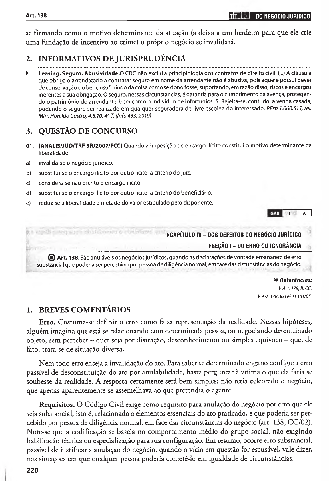 (8) A rt. 138. São anuláveis os negócios jurídicos, quando as declarações de vontade emanarem de erro