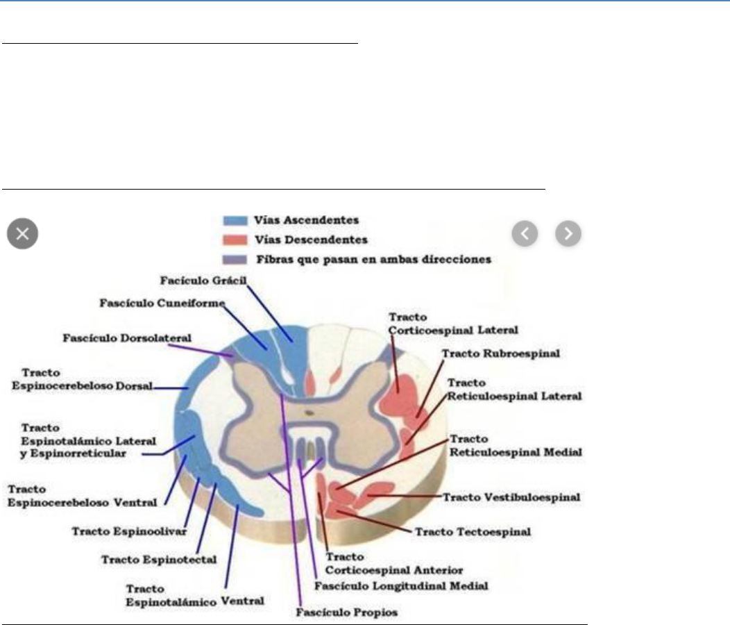 UNIP – UNIVERSIDADE PAULISTA Professoras Débora Pedrolo e Andréia Joaquim REVISÃO VIAS DE SENSIBILIDADE MODALIDADES SENSORIAIS (CONSCIENTE) • Dor e Temperatura • Tato Protopático (não discriminativo) e Pressão • Tato Epicrítico (discriminativo), Vibração e Propriocepção Consciente AREAS MEDULARES RELACIONADAS A SENSIBILIDADE (EM AZUL) FUNÍCULO LATERAL FUNÍCULO ANTERIOR FASCÍCULO GRACIL E CUNEIFORME Tratos ascendentes – aferentes 1. Trato espino talâmico lateral (dor e temperatura) 2. Trato espino talâmico anterior (tato protopático e pressão) 3. Via do fascículo grácil e cuneiforme (trato epicrítico, propriocepção e vibração 1. TRATO ESPINOTALAMICO LATERAL (DOR E TEMPERATURA) • Neurônio I conduz a informação sensitiva (dor ou temperatura), entra no corno posterior da medula, faz sinapse com o neurônio II, decussa (cruza para o outro lado) até atingir a região do funículo lateral, ascende até o tálamo, faz sinapse com o neurônio III, e então o estimulo chega ao córtex (giro pós central) e se torna consciente. • Via cruzada na medula: ex. Se ocorrer uma lesão no funículo lateral direito a perda de dor e temperatura será no lado esquerdo. 2. TRATO ESPINOTALAMICO ANTERIOR (TATO PROTOPÁTICO E PRESSÃO) • Neurônio I conduz a informação sensitiva (tato protopático ou pressão), entra no corno posterior da medula, faz sinapse com o neurônio II, decussa até atingir a região do funículo anterior, ascende até o tálamo, faz sinapse com o neurônio III, e então o estimulo chega ao córtex (giro pós central) e se torna consciente. • Via cruzada na medula: ex. Se ocorrer uma lesão no funículo anterior direito a perda de tato protopático e pressão será no lado esquerdo. 3. VIA DO FASCÍCULO GRÁCIL E CUNEIFORME (TATO EPICRÍTICO, PROPRIOCEPÇÃO E VIBRAÇÃO) • Neurônio I conduz a informação sensitiva (tato epicrítico, propriocepção consciente ou vibração), entra no corno posterior da medula, ascende passando pelo fascículo grácil ou cuneiforme do mesmo lado, ao atingir o tronco encefálico faz sinapse com o neurônio II e decussa e ascende até o tálamo, faz sinapse com o neurônio III, e então o estimulo chega ao córtex (giro pós central) e se torna consciente. • Via direta na medula e cruzada no encéfalo: ex. se ocorrer uma lesão no fascículo grácil ou cuneiforme do lado direito a perda de tato epicrítico, propriocepção e vibração será no lado direito. REVISÃO DE MOTRICIDADE 1. ARCO REFLEXO SIMPLES OU ESTIRAMENTO Ex., Reflexo patelar – M. Quadríceps (L2 a L4 – nervo femoral) Resumo: ao ser dado o estimulo com martelinho no tendão patelar a tíbia é projetada para trás ocasionando o estiramento do músculo quadríceps, e este estiramento é percebido pelo receptor chamado fuso neuromuscular (FNM) e então o estímulo de estiramento é conduzido pelo neurônio sensitivo até a região do corno posterior da medulo espinhal e na região anterior faz sinapse com o neurônio motor inferior (chamado de neurônio alfa) que conduz o estímulo para a contração do músculo quadríceps ocorrendo assim a extensão da perna. Outros reflexos: • Estiloradial – M.braquioradial (C5- a C7 – nervo radial) • Biciptal – M. Bíceps braquial (C5 - C6 – nervo musculocutâneo) • Tríciptal – M. Tríceps braquial (C6 a C8 nervo radial) • Reflexo calcâneo (S1 a S2, nervo tibial) 2. VIAS MOTORAS DESCENDETES (TRATOS PIRAMIDAIS) • Trato cortiço espinhal lateral e trato córtico espinhal anterior ou medial Trato córtico espino lateral Neurônio motor superior ou primeiro motoneurônio: partem do córtex motor e descem em direção as pirâmides bulbares, decussam na pirâmide e descem para a medula onde fazem sinapses com os neurônios motores inferiores e estes conduzem o estímulo para o músculo contrair. Trato córtico espinhal anterior Neurônio motor superior ou primeiro motoneurônio: partem do córtex motor e descem em direção as pirâmides bulbares, não decussam na pirâmide e descem para a medula e ao atingirem a medula decussam e então onde fazem sinapses com os neurônios motores inferiores e estes conduzem o estímulo para o músculo contrair. AVALIAÇÃO FÍSICA: Sensibilidade: Possíveis achados: • Hiperestesia : aumento de sensibilidade • Normoestesia: sensibilidade prezervada • Parestesia: sensação de formigamento • Hipoestesia: sensibilidade diminuída • Anestesia: ausência de sensibilidade Motricidade: Reflexos ósteotendinosos GRADUAÇÃO DOS REFLEXOS Trofismo muscular (massa muscular) • Hipertrofia: trofismo muscular aumentado • Normotrofia: trofismo muscular preservado • Hipotrofia: trofismo muscular diminuído • Atrofia: ausência de trofismo muscular • Pseudo hipertrofia muscular: substituição do tecido muscular por tecido de preenchimento (ex. Pacientes com Distrofia) Tônus muscular (estado de contração mínima fisiológica do músculo) • Hipertonia muscular: tônus aumentado • Nomotonia muscular: tônus muscular aumentado • Hipotonia muscular: tônus muscular diminuído • Atonia muscular: ausência de tônus ou flacidez muscular A Hipotonia está relacionada principalmente por desnervação muscular ou compromentimento cerebelar. A hipertonia pode ser classificada em dois tipos: 1. Hipertonia Plástica (extrapiramidal, em roda denteada –Parkinson) 2. Hipertonia Elástica (piramidal, em sinal de canivete, acomete mm flexora de MMSS e extensora de MMII - AVC) EXAME DOS REFLEXOS: 0 ausente + hiporeflexia ++ normoreflexia +++ hiperreflexia ++++ hiperreflexia com aumento da área reflexógena Graduação da Força Muscular Contração muscular • Prezervada • Paresia muscular: diminuição • Plegia muscular: ausência Lesão de neurônio motor superior (ex. AVC) • Quadro de Espaticidade Caracterizado por : Hipereflexia, hipertonia muscular, sinal de clonus e sinal de Babinski+