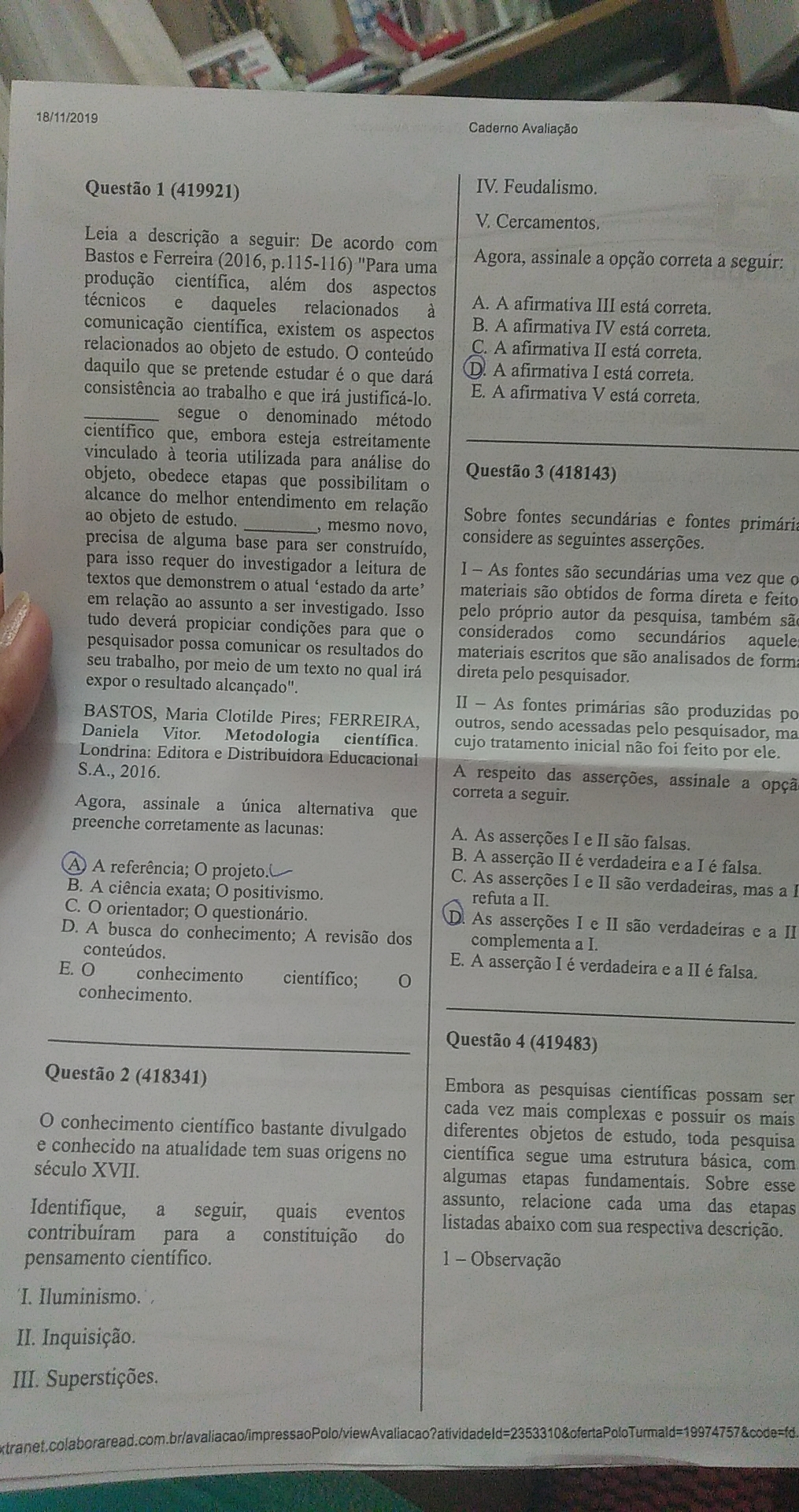 Sobre fontes secundárias e fontes primárias, considere as seguintes asserções. A respeito das asserções, assinale a opção correta a seguir. I - As fontes são secundárias, materiais obtidos de forma direta e feitos pelo próprio autor da pesquisa, também são considerados como secundários aqueles materiais escritos que são analisados de forma direta pelo pesquisador. II - As fontes primárias são produzidas por outros, sendo acessadas pelo pesquisador, mas cujo tratamento inicial não foi feito por ele. A. As asserções I e II são falsas. B. A asserção II verdadeira e a I falsa. C. As asserções I e II são verdadeiras, mas a II refuta a I. D. As asserções I e II são verdadeiras e a II complementa a I. E. A asserção I é verdadeira e a II é falsa.