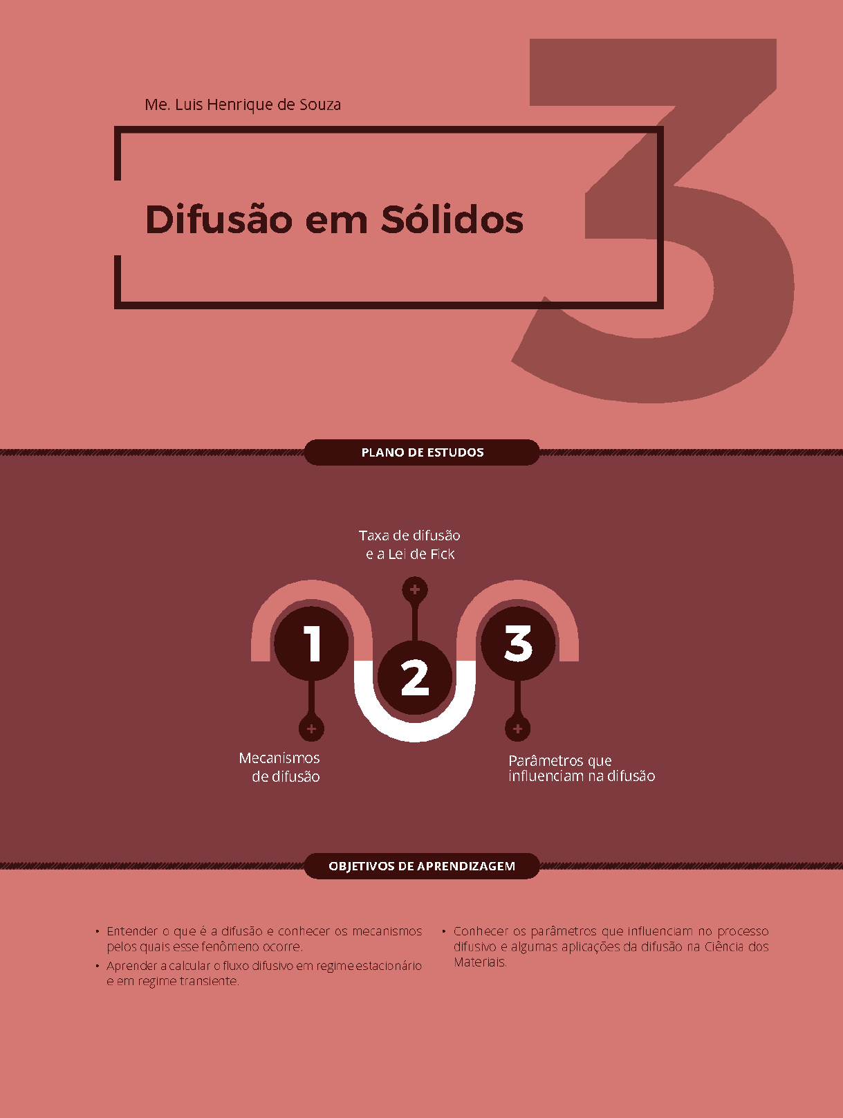 73UNIDADE 3 ser introduzidas intencionalmente. Além disso, é bom que você tenha em mente que tanto essas imperfeições quanto os átomos, íons ou moléculas que compõem o material estão em constante mo- vimento devido à energia térmica que possuem. Como resultado disso, os átomos podem se mover dentro da rede cristalina, ocupando uma lacuna próxima a eles ou, ainda, ocupando interstícios dessa rede próximos a eles, e devido à difusão, esses átomos podem saltar contornos de grãos causando o deslocando das fronteiras destes de- feitos superficiais (ASKELAND; WRIGHT, 2015). O fenômeno de difusão acontece com mate- riais metálicos, poliméricos e também em mate- riais cerâmicos, contudo, é mais complexo nesses últimos devido às suas ligações do tipo iônicas. Nos sólidos, a difusão consiste na migração passo a passo dos átomos, íons ou moléculas, de uma po- sição para outra, dentro da estrutura do material. O processo difusivo pode ocorrer entre átomos do mesmo tipo que os átomos da rede cristalina; nesse caso, chamamos o processo de autodifu- são. Por exemplo, dentro da estrutura cristalina de uma barra de ouro puro existem lacunas e inters- tícios, em que os átomos de ouro podem migrar o tempo todo. Essa migração dos átomos de ouro dentro da sua estrutura cristalina caracteriza uma autodifusão, uma vez que nenhum átomo diferen- te do ouro está envolvido. Entretanto, quando a difusão ocorre entre áto- mos de diferentes tipos, chamamos o processo de interdifusão. Esse processo pode ser exem- plificado colocando-se em contato duas barras metálicas, uma de cobre puro e outra de níquel puro, como representado na Figura 1(a), a uma temperatura elevada menor que a temperatura de fusão desses metais. Como podemos observar na Figura 1(b), a placa da esquerda possui apenas átomos de cobre (círculos azul-claros), e a placa da direita possui apenas átomos de níquel (círculos azul-escuros). Na Figura 1(c), observamos que, após decorri- do um certo tempo de difusão, se resfriarmos as placas e fizermos uma análise química, observa- remos que alguns átomos de cobre migraram para a região da placa de níquel e, em contrapartida, alguns átomos de níquel migraram para a região da placa de cobre; podemos dizer, então, que, nesse caso, ocorreu uma interdifusão (CALLISTER JR.; RETHWISCH, 2013). Cobre Cu Níquel Ni (a) (b) (c) Figura 1 - Representação da interdifusão entre uma placa de cobre e uma placa de níquel Fonte: o autor. Difusão por Lacunas Como vimos na Unidade 2, os materiais sólidos possuem lacunas em suas estruturas cristalinas. Essas lacunas permitem que os átomos transitem 74 Difusão em Sólidos de um ponto da rede cristalina para um ponto vazio dessa rede (lacuna), e quando esse átomo da rede cristalina migra (difunde) para uma lacuna, ele deixa para trás uma lacuna em sua posição original. A esse tipo de processo dá-se o nome de difusão por lacunas, e nota-se que a sua ocorrência está diretamente ligada à existência de lacunas na rede cristalina do material. A difusão por lacunas pode ocorrer por autodifusão, ou seja, os átomos que difundem são do mesmo tipo que os átomos da rede, como no caso dos átomos de ouro difundindo entre as lacunas da rede cristalina em uma barra de ouro puro. Contudo, a modalidade mais interessante para nós é a difusão por lacunas, que ocorre por interdifusão, na qual as lacunas são ocupadas por átomos de impureza (átomos diferentes dos átomos da rede), gerando um defeito substitucional. Na Figura 2(a), podemos observar a representação de uma autodifusão por lacunas, uma vez que a lacuna do material será ocupada por um átomo do mesmo tipo que os átomos da rede cristalina. Esse processo ocorre pela migração de um átomo vizinho a essa lacuna, saindo de sua posição inicial e ocupando a lacuna, e, como consequência, é formada uma nova lacuna na posição que esse átomo ocupava anteriormente. Na Figura 2(b), temos a representação de uma interdifusão por lacunas, pois o átomo que ocupará a lacuna é um átomo de impureza, ou seja, é um átomo diferente dos átomos originais da rede. Esse átomo de impureza tem a possibilidade de ocupar a lacuna vizinha e, com isso, formar uma lacuna na posição que ele ocupava anteriormente. Migração de um átomo do mesmo tipo Migração de um átomo de impureza da rede Lacuna Lacuna Lacuna Lacuna (b) (a) Figura 2 - Representação do mecanismo de difusão por lacunas Fonte: o autor. 75UNIDADE 3 Difusão Intersticial Além da difusão por lacunas, o processo difusivo em sólidos pode ocorrer por meio dos espaços vazios entre os átomos que compõem a rede cristalina do material, chamados interstícios. A esse processo de difusão, damos o nome de difusão intersticial. Átomo de impureza alojado no interstício da rede cristalina Átomo de impureza após a difusão Figura 3 - Representação do meca- nismo de difusão intersticial para um átomo de impureza Fonte: o autor. Como esses interstícios são pequenos em relação ao tamanho dos átomos da rede cristalina, os átomos que difundem em seu interior devem ser átomos pequenos o suficiente para se encaixarem nessas posições intersticiais, geralmente hidrogênio, carbono, nitrogênio e oxigênio. Devido a essa limitação de tamanho, os átomos hospedeiros (átomos originais da rede) e de impurezas substitucionais (átomos de impureza que substituem os átomos hospedeiros e têm a mesma ordem de grandeza deles) raramente se difundem por meio dos interstícios. A difusão intersticial ocorre com muito mais frequência que a difusão por lacunas. Esse comportamento acontece por duas razões, primeiro porque o número de interstícios é muito maior que o número de lacunas nas estruturas cristalinas e, dessa forma, a probabilidade da difusão intersticial é muito maior que da difusão por lacunas. Em segundo lugar, os átomos envolvidos na difusão intersticial são
