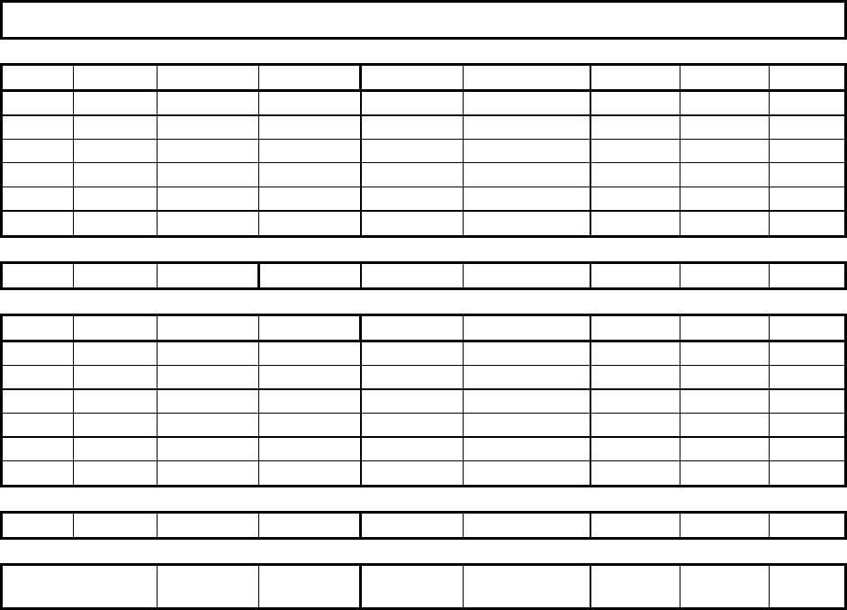 1 LISTA DE EXERCÍCIOS DE EXCEL 01) Elaborar a planilha abaixo, fazendo-se o que se pede: Empresa Nacional S/A Código Produto Jan Fev Mar Total 1º Trim. Máximo Mínimo Média 1 Porca 4.500,00 5.040,00 5.696,00 2 Parafuso 6.250,00 7.000,00 7.910,00 3 Arruela 3.300,00 3.696,00 4.176,00 4 Prego 8.000,00 8.690,00 10.125,00 5 Alicate 4.557,00 5.104,00 5.676,00 6 Martelo 3.260,00 3.640,00 4.113,00 Totais Código Produto Abr Mai Jun Total 2º Trim. Máximo Mínimo Média 1 Porca 6.265,00 6.954,00 7.858,00 2 Parafuso 8.701,00 9.658,00 10.197,00 3 Arruela 4.569,00 5.099,00 5.769,00 4 Prego 12.341,00 12.365,00 13.969,00 5 Alicate 6.344,00 7.042,00 7.957,00 6 Martelo 4.525,00 5.022,00 5.671,00 Totais Total do Semestre FÓRMULAS: 1ª Tabela: Total 1º Trimestre: soma das vendas dos meses de Jan / Fev / Mar. Máximo: calcular o maior valor entre os meses de Jan / Fev / Mar. Mínimo: calcular o menor valor entre os meses de Jan / Fev / Mar. Média: calcular a média dos valores entre os meses de Jan / Fev / Mar. 2ª Tabela: Total 2º Trimestre: soma das vendas dos meses de Abr / Mai / Jun. Máximo: calcular o maior valor entre os meses de Abr / Mai / Jun. Mínimo: calcular o menor valor entre os meses de Abr / Mai / Jun. Média: calcular a média dos valores entre os meses de Abr / Mai / Jun. Totais: soma das colunas de cada mês (1ª e 2ª tabela). Total do Semestre: soma dos totais de cada trimestre. 2 02) Elaborar a planilha abaixo, fazendo-se o que se pede: CONTAS A PAGAR JANEIRO FEVEREIRO MARÇO ABRIL MAIO JUNHO SALÁRIO R$ 500,00 R$ 750,00 R$ 800,00 R$ 700,00 R$ 654,00 R$ 700,00 CONTAS ÁGUA R$ 10,00 R$ 15,00 R$ 15,00 R$ 12,00 R$ 12,00 R$ 11,00 LUZ R$ 50,00 R$ 60,00 R$ 54,00 R$ 55,00 R$ 54,00 R$ 56,00 ESCOLA R$ 300,00 R$ 250,00 R$ 300,00 R$ 300,00 R$ 200,00 R$ 200,00 IPTU R$ 40,00 R$ 40,00 R$ 40,00 R$ 40,00 R$ 40,00 R$ 40,00 IPVA R$ 10,00 R$ 15,00 R$ 14,00 R$ 15,00 R$ 20,00 R$ 31,00 SHOPPING R$ 120,00 R$ 150,00 R$ 130,00 R$ 200,00 R$ 150,00 R$ 190,00 COMBUSTÍVEL R$ 50,00 R$ 60,00 R$ 65,00 R$ 70,00 R$ 65,00 R$ 85,00 ACADEMIA R$ 145,00 R$ 145,00 R$ 145,00 R$ 145,00 R$ 100,00 R$ 145,00 TOTAL DE CONTAS SALDO FÓRMULAS: Total de Contas: soma das contas de cada mês. Saldo: Salário menos Total de Contas. 03) Elaborar as planilhas abaixo, fazendo-se o que se pede: Araras Informática - Hardware e Software Rua São Francisco de Assis, 123 - Araras SP Nº NOME Salário Bruto INSS Gratificação INSS R$ Gratificação R$ Salário Líquido 1 Eduardo R$ 853,00 10,00% 9,00% 2 Maria R$ 951,00 9,99% 8,00% 3 Helena R$ 456,00 8,64% 6,00% 4 Gabriela R$ 500,00 8,50% 6,00% 5 Edson R$ 850,00 8,99% 7,00% 6 Elisangela R$ 459,00 6,25% 5,00% 7 Regina R$ 478,00 7,12% 5,00% 8 Paulo R$ 658,00 5,99% 4,00% FÓRMULAS INSS R$: multiplicar Salário Bruto por INSS. Gratificação R$: multiplicar Salário Bruto por Gratificação. Salário Líquido: Salário Bruto mais Gratificação R$ menos INSS R$. Formatar os números para que eles apareçam de acordo com a planilha dada. 3 04) Elaborar as planilhas abaixo, fazendo-se o que se pede: Valor do Dólar R$ 2,94 Papelaria Papel Branco Produtos Qtde Preço Unit. Total R$ Total US$ Caneta Azul 500 R$ 0,15 Caneta Vermelha 750 R$ 0,15 Caderno 250 R$ 10,00 Régua 310 R$ 0,50 Lápis 500 R$ 0,10 Papel Sulfite 1500 R$ 2,50 Tinta Nanquim 190 R$ 6,00 FÓRMULAS: Total R$: multiplicar Qtde por Preço Unitário Total US$: dividir Total R$ por Valor do Dólar – usar $ nas fórmulas Alterar as colunas de acordo com a necessidade. 05) Elaborar a planilha abaixo, fazendo-se o que se pede: Fazer uma folha de pagamento e calcular o novo salário, baseado no aumento. Se o salário for menor ou igual a R$ 1.000,00, aumento de 40%. Se for maior que R$ 1.000,00, aumento de 30%. Os valores R$ 360,00 e R$ 1.260,00 da primeira linha também deverão ser calculados.... Nome Salário Aumento Novo Salário João dos Santos R$ 900,00 R$ 360,00 R$ 1.260,00 Maria da Silva R$ 1.200,00 Até 1000,00 40% Manoel das Flores R$ 1.500,00 mais 1000,00 30% Lambarildo Peixe R$ 2.000,00 Sebastião Souza R$ 1.400,00 Ana Flávia Silveira R$ 990,00 Silvia Helena Santos R$ 854,00 Alberto Roberto R$ 1.100,00 4 06) Elaborar a planilha abaixo, fazendo-se o que se pede: Projeção para o ano de 2003 Receita bruta Jan-Mar Abr-Jun Jul-Set Out-Dez Total do Ano 140.000,00 165.000,00 208.000,00 280.000,00 Despesa Líquida Jan-Mar Abr-Jun Jul-Set Out-Dez Total do Ano Salários 20.000,00 26.000,00 33.800,00 43.940,00 Juros 20.000,00 15.600,00 20.280,00 26.364,00 Aluguel 12.000,00 20.930,00 27.209,00 35.371,70 Propaganda 16.100,00 28.870,00 33.631,00 43.720,30 Suprimentos 19.900,00 39.000,00 50.700,00 65.910,00 Diversos 25.000,00 32.500,00 42.250,00 54.925,00 Total do Trim. Receita líquida Situação Valor Acumulado do ano de despesas FÓRMULAS: Total do Ano Receita Bruta: Soma das receitas anuais. Total do Ano Despesa Líquida: Soma das despesas anuais. Total do Trimestre: Soma das despesas trimestrais. Receita Líquida: Receita Bruta menos Total do Trimestre. Valor Acumulado do ano de despesas: Soma do Total do Ano de Despesas Situação: Se Receita Líquida for menor que R$ 1.000,00, "Prejuízo Total"; Se Receita Líquida for menor que R$ 5.000,00, "Lucro Médio"; Se Receita Líquida for maior que R$ 5.000,00, "Lucro Total'. 07) Reproduzir a planilha abaixo colocando o resultado usando a função SE com mais de um resultado na primeira tabela e função SE(E na segunda tabela. FUNÇÃO SE Controle de Vendas Controle de Idade Produto Jan Fev Resultado Idade do Candidato 20 A 4.665,00 4.654,00 Idade Mínima 18 B 16.574,00 24.348,00 Idade Máxima 24 C 1.654,00 6.468,00 D 654,00 654,00 Resultado: E 413,00 434,00 F 65.765,00 54.646,00 Resultado deve ser Maior, Menor ou Igual. Resultado deve ser Dentro ou Fora. 5 08) Elaborar o banco de dados abaixo, fazendo-se o que se pede: Nome Endereço Bairro Cidade Estado Ana Rodovia Anhanguera, km 180 Centro Leme SP Eduardo R. Antônio de Castro, 362 São Benedito Araras SP Érica R. Tiradentes,
