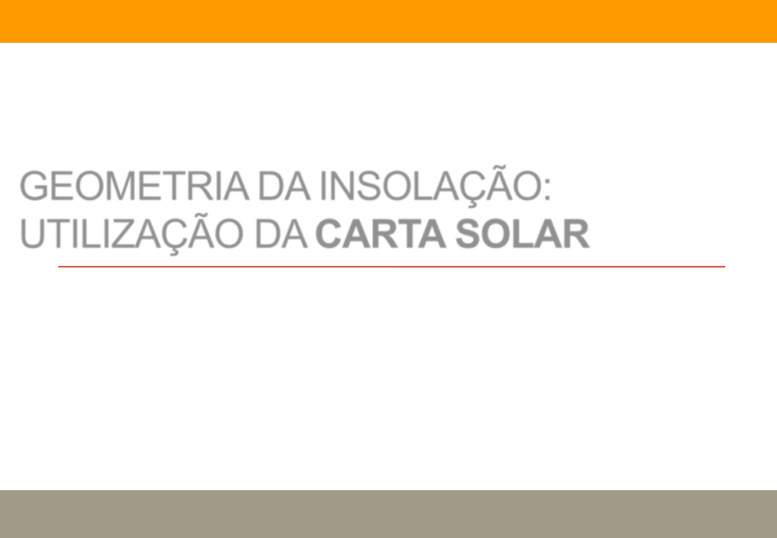 Carta Solar AUT0272 – Sol, Arquitetura e Urbanismo GEOMETRIA DA INSOLAÇÃO: UTILIZAÇÃO DA CARTA SOLAR Carta Solar AUT0272 – Sol, Arquitetura e Urbanismo Carta Solar AUT0272 – Sol, Arquitetura e Urbanismo SOL: Incide sob diferentes ângulos sobre a superfície da Terra, por tempos que variam entre 0 e 24 horas, conforme a latitude e a época do ano. Carta Solar AUT0272 – Sol, Arquitetura e Urbanismo a terra e o sol solstícios e equinócios Carta Solar AUT0272 – Sol, Arquitetura e Urbanismo Equador Latitude 0° São Paulo Latitude 23°30’ 22 de julho 21 de março 24 de setembro 22 de dezembro Carta Solar AUT0272 – Sol, Arquitetura e Urbanismo 23° 27’23° 27’ Equador 12:00 - Latitude 0° V I FROTA, Anésia. Geometria da Insolação. São Paulo: Geros, 2004. Carta Solar AUT0272 – Sol, Arquitetura e Urbanismo 23° 27’ 23° 27’ 46° 54’ V I São Paulo 12:00 - Latitude 23° 30´ FROTA, Anésia. Geometria da Insolação. São Paulo: Geros, 2004. Carta Solar AUT0272 – Sol, Arquitetura e Urbanismo Fonte: LAMBERTS. Roberto, et al. Eficiência Energética na Arquitetura. São Paulo Carta Solar AUT0272 – Sol, Arquitetura e Urbanismo Carta Solar AUT0272 – Sol, Arquitetura e Urbanismo Carta Solar AUT0272 – Sol, Arquitetura e Urbanismo CARTA SOLAR Carta Solar AUT0272 – Sol, Arquitetura e Urbanismo EstereográficaOrtográficaEquidistante Carta Solar AUT0272 – Sol, Arquitetura e Urbanismo Neste método de projeção os ângulos de altitude aparecem igualmente espaçados. Esta característica assegura igual facilidade de leitura para os ângulos altos e baixos e é de fácil plotagem. Equidistante Carta Solar AUT0272 – Sol, Arquitetura e Urbanismo Ortográfica Este tipo de projeção é contida dentro do círculo do horizonte. Pontos da hemisfera são projetados no plano do horizonte, com linhas de projeção paralelas verticais. A desvantagem deste método é que os círculos de altitude de igual distância angula, ficam mais espaçados perto do Zênite, mas muito próximos uns dos outros próximos ao horizonte. Carta Solar AUT0272 – Sol, Arquitetura e Urbanismo Estereográfica Este método foi desenvolvido para superar a dificuldade do método de projeção ortográfica. Pontos da hemisfera são projetados no círculo do horizonte, com um método de projeção radial com o centro no Nadir, ou seja, a distância r abaixo do ponto do observador. Carta Solar AUT0272 – Sol, Arquitetura e Urbanismo PROJEÇÃO ESTEREOGRÁFICA Carta Solar AUT0272 – Sol, Arquitetura e Urbanismo FROTA, Anésia. Geometria da Insolação. São Paulo: Geros, 2004. Carta Solar AUT0272 – Sol, Arquitetura e Urbanismo FROTA, Anésia. Geometria da Insolação. São Paulo: Geros, 2004. Carta Solar AUT0272 – Sol, Arquitetura e Urbanismo FROTA, Anésia. Geometria da Insolação. São Paulo: Geros, 2004. Carta Solar AUT0272 – Sol, Arquitetura e Urbanismo FROTA, Anésia. Geometria da Insolação. São Paulo: Geros, 2004. Carta Solar AUT0272 – Sol, Arquitetura e Urbanismo FROTA, Anésia. Geometria da Insolação. São Paulo: Geros, 2004. Carta Solar AUT0272 – Sol, Arquitetura e Urbanismo FROTA, Anésia. Geometria da Insolação. São Paulo: Geros, 2004. Carta Solar AUT0272 – Sol, Arquitetura e Urbanismo FROTA, Anésia. Geometria da Insolação. São Paulo: Geros, 2004. Carta Solar AUT0272 – Sol, Arquitetura e Urbanismo FROTA, Anésia. Geometria da Insolação. São Paulo: Geros, 2004. Carta Solar AUT0272 – Sol, Arquitetura e Urbanismo FROTA, Anésia. Geometria da Insolação. São Paulo: Geros, 2004. Carta Solar AUT0272 – Sol, Arquitetura e Urbanismo FROTA, Anésia. Geometria da Insolação. São Paulo: Geros, 2004. Carta Solar AUT0272 – Sol, Arquitetura e Urbanismo FROTA, Anésia. Geometria da Insolação. São Paulo: Geros, 2004. Carta Solar AUT0272 – Sol, Arquitetura e Urbanismo FROTA, Anésia. Geometria da Insolação. São Paulo: Geros, 2004. Carta Solar AUT0272 – Sol, Arquitetura e Urbanismo FROTA, Anésia. Geometria da Insolação. São Paulo: Geros, 2004. Carta Solar AUT0272 – Sol, Arquitetura e Urbanismo FROTA, Anésia. Geometria da Insolação. São Paulo: Geros, 2004. Carta Solar AUT0272 – Sol, Arquitetura e Urbanismo FROTA, Anésia. Geometria da Insolação. São Paulo: Geros, 2004. Carta Solar AUT0272 – Sol, Arquitetura e Urbanismo FROTA, Anésia. Geometria da Insolação. São Paulo: Geros, 2004. Carta Solar AUT0272 – Sol, Arquitetura e Urbanismo UTILIZAÇÃO DAS CARTAS SOLARES 1. Determinação da posição do sol (penetração de sol pelas aberturas e traçado de sombras); 2. Determinação de tempos de insolação de fachadas (orientação dos cômodos e das aberturas); 3. Traçado de máscaras (locação de equipamentos que precisam receber ou serem protegidos do sol); 4. Projeto de dispositivos de proteção solar (brises); Carta Solar AUT0272 – Sol, Arquitetura e Urbanismo N 22.6 N DIAS HORAS 1 - ENCONTRANDO O SOL Carta Solar AUT0272 – Sol, Arquitetura e Urbanismo 24.7 22.6 21.5 22.6 N 24.7 22.6 21.5 22.6 N Azimute | ângulo em relação ao norte => 0° a 360° Altura solar | ângulo com o horizonte => 0° a 90 1 - ENCONTRANDO O SOL Carta Solar AUT0272 – Sol, Arquitetura e Urbanismo Onde está o sol (qual o Az e hs), em São Paulo, às 15 horas do dia 22.6 ? Carta Solar AUT0272 – Sol, Arquitetura e Urbanismo Onde está o sol às 15 horas do dia 22.6 ? 14 18 22 .12 4.1 1 20 .10 24.7 6.1 0 24.9 11.9 28.8 13.8 17 22 .11 15 16 22.6 6 22.12 8.3 23.2 3.4 16.4 1.5 21.5 10 1213 11 9 8 7 21.1 9.2 22.6 N 21.3 Carta Solar AUT0272 – Sol, Arquitetura e Urbanismo 14 18 22 .12 4.1 1 20 .10 24.7 6.1 0 24.9 11.9 28.8 13.8 17 22 .11 15 16 22.6 6 22.12 8.3 23.2 3.4 16.4 1.5 21.5 10 1213 11 9 8 7 21.1 9.2 22.6 N 21.3 Az = 310° Onde está o sol às 15 horas do dia 22.6 ? Carta Solar AUT0272 – Sol, Arquitetura e Urbanismo 14 18 22 .12 4.1 1 20 .10 24.7 6.1 0 24.9 11.9 28.8 13.8 17 22 .11 15 16 22.6 6 22.12 8.3 23.2 3.4 16.4 1.5 21.5 10 1213 11 9 8 7 2