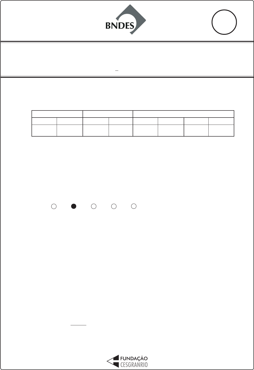 01 PROFISSIONAL BÁSICOPROFISSIONAL BÁSICOPROFISSIONAL BÁSICOPROFISSIONAL BÁSICOPROFISSIONAL BÁSICO ADMINISTRAÇÃOADMINISTRAÇÃOADMINISTRAÇÃOADMINISTRAÇÃOADMINISTRAÇÃO (1(1(1(1(1aaaaa F F F F FASE)ASE)ASE)ASE)ASE) N O VE M B R O / 2 00 9 A C D E LEIA ATENTAMENTE AS INSTRUÇÕES ABAIXO. 01 - Você recebeu do fiscal o seguinte material: a) este caderno, com o enunciado das 70 questões das Provas Objetivas, sem repetição ou falha, com a seguinte distribuição: b)1 CARTÃO-RESPOSTA destinado às respostas das questões objetivas formuladas nas provas. 02 - Verifique se este material está em ordem e se o seu nome e número de inscrição conferem com os que aparecem no CARTÃO-RESPOSTA. Caso contrário, notifique IMEDIATAMENTE o fiscal. 03 - Após a conferência, o candidato deverá assinar no espaço próprio do CARTÃO-RESPOSTA, preferivelmente a caneta esferográfica de tinta na cor preta. 04 - No CARTÃO-RESPOSTA, a marcação das letras correspondentes às respostas certas deve ser feita cobrindo a letra e preenchendo todo o espaço compreendido pelos círculos, a caneta esferográfica de tinta na cor preta, de forma contínua e densa. A LEITORA ÓTICA é sensível a marcas escuras; portanto, preencha os campos de marcação completamente, sem deixar claros. Exemplo: 05 - Tenha muito cuidado com o CARTÃO-RESPOSTA, para não o DOBRAR, AMASSAR ou MANCHAR. O CARTÃO-RESPOSTA SOMENTE poderá ser substituído caso esteja danificado em suas margens superior ou inferior - BARRA DE RECONHECIMENTO PARA LEITURA ÓTICA. 06 - Para cada uma das questões objetivas, são apresentadas 5 alternativas classificadas com as letras (A), (B), (C), (D) e (E); só uma responde adequadamente ao quesito proposto. Você só deve assinalar UMA RESPOSTA: a marcação em mais de uma alternativa anula a questão, MESMO QUE UMA DAS RESPOSTAS ESTEJA CORRETA. 07 - As questões objetivas são identificadas pelo número que se situa acima de seu enunciado. 08 - SERÁ ELIMINADO do Processo Seletivo Público o candidato que: a) se utilizar, durante a realização das provas, de máquinas e/ou relógios de calcular, bem como de rádios gravadores, headphones, telefones celulares ou fontes de consulta de qualquer espécie; b) se ausentar da sala em que se realizam as provas levando consigo o Caderno de Questões e/ou o CARTÃO-RESPOSTA. Obs: Por medida de segurança, o candidato só poderá retirar-se da sala após 60 (sessenta) minutos contados a partir do início das provas e só poderá levar o Caderno de Questões das Provas Objetivas faltando 30 (trinta) minutos ou menos para o término das mesmas. 09 - Reserve os 30 (trinta) minutos finais para marcar seu CARTÃO-RESPOSTA. Os rascunhos e as marcações assinaladas no Caderno de Questões NÃO SERÃO LEVADOS EM CONTA. 10 - Quando terminar, entregue ao fiscal O CADERNO DE QUESTÕES, ressalvado o disposto na observação do item 08, o CARTÃO-RESPOSTA e ASSINE A LISTA DE PRESENÇA. 11 - O TEMPO DISPONÍVEL PARA ESTAS PROVAS DE QUESTÕES OBJETIVAS É DE 4 (QUATRO) HORAS. 12 - As questões e os gabaritos das Provas Objetivas serão divulgados, no primeiro dia útil após a realização das provas, nas páginas da FUNDAÇÃO CESGRANRIO (www.cesgranrio.org.br) e do BNDES (www.bndes.gov.br). LÍNGUA PORTUGUESA II LÍNGUA ESTRANGEIRA CONHECIMENTOS ESPECÍFICOS 1 a 10 11 a 20 0,5 1,5 21 a 25 26 a 30 0,5 1,5 51 a 60 61 a 70 2,0 2,5 Questões Pontos Questões Pontos Questões Pontos Questões Pontos 31 a 40 41 a 50 1,0 1,5 O BANCO DO DESENVOLVIMENTO 2 PROFISSIONAL BÁSICO ADMINISTRAÇÃO (1a FASE) LÍNGUA PORTUGUESA II O PESO DA PALAVRA E DO RELACIONAMENTO Quem diz que vai para o escritório para trabalhar e não para fazer amigos está enganado. Ou melhor, estabelecer uma rede de relacionamentos, ser flexível, se adaptar rapidamente a uma nova situação, saber se comunicar com a equipe ou colegas de trabalho, ter capacidade de negociação são características extras no atual mercado, que exige mais do que diploma. Não se trata de fazer amigos, mas de aprender o que se chama de linguagem corporativa. E este be-a-bá é feito de uma mistura de palavras claras, ditas no momento e para a pessoa certa, somado a uma dose de carisma. Não estou falando da política “mantenha um sorriso no rosto porque o cliente tem sempre razão”, mas, sim, tentando mostrar que a facilidade em se expressar ou fazer relacionamentos tem peso tão importante quanto uma boa formação acadêmica. O que a intuição de muitos profissionais de recursos humanos já indicava foi comprovado num estudo finalizado no primeiro semestre deste ano pela ISMA-BR (International Stress Management Association no Brasil), associação internacional que estuda o estresse e suas formas de prevenção. De acordo com a pesquisa, feita entre 230 profissionais — gerentes de três grandes empresas nacionais —, a eficiência na comunicação interpessoal funciona como um colete salva-vidas, atenuando os efeitos negativos das pressões e demandas nos níveis físico, emocional e comportamental. Para chegar a esta conclusão foram analisados três fatores: as pressões e as demandas no trabalho, o nível de ansiedade (somática, comportamental e cognitiva) e o nível de tensão muscular e a satisfação profissional. Conclui-se, então, que o gerenciamento do estresse passa pelo desenvolvimento pessoal, além de programas efetivos de qualidade de vida no trabalho. Isso porque os custos do estresse não afetam apenas a saúde do trabalhador, mas, também, o bolso do empregador. Sabe-se que nos Estados Unidos o estresse profissional tem custo estimado em 300 bilhões de dólares ao ano e nos países membros da União Europeia este valor gira em torno de 265 bilhões de euros – números relativos ao absenteísmo, rotatividade, lesões no trabalho e seguro saúde. Por aqui, ainda não foi feito o cálculo desta conta, mas acredita-se que temos valores similares ao americano. Então, que tal começar a exe