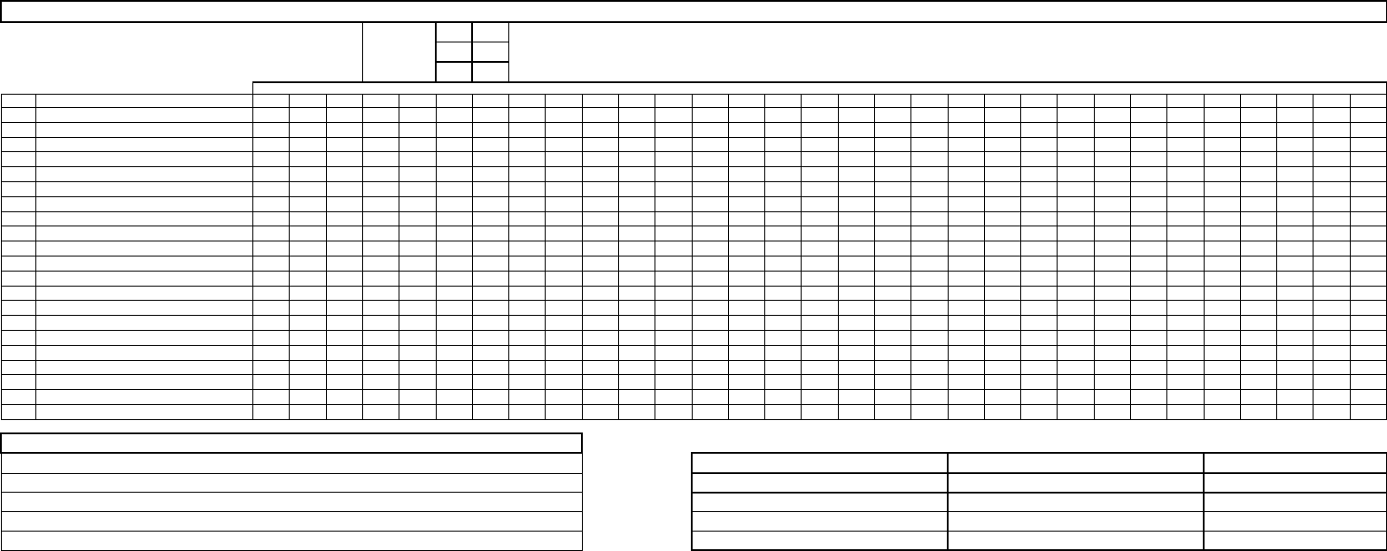1º EMPILHADEIRA NÚMERO _________________ FICHA DE INSPEÇÃO DIÁRIA TURNO 2º 3º (N) NORMAL (A) ANORMAL MÊS: ______________________ ITEM O QUÊ VERIFICAR 1 2 3 4 5 6 7 8 9 10 11 12 13 14 15 16 17 18 19 20 21 22 23 24 25 26 27 28 29 30 31 1 Vazamento de água 2 Vazamento de óleo 3 Vazamento de fluído de freio 4 Vazamento de gás 5 Nível de óleo hidráulico 6 Nível de água do radiador 7 Nível de óleo do motor 8 Nível de líquido da bateria 9 Pedais (acelerador/freio/embreag.) 10 Freio de estacionamento 11 Buzina/ Alarme de ré 12 Faróis e lanternas/ geroflex 13 Motor/Ruído/Vibrações/Correia 14 Luz de advertência no painel 15 Direção 16 Torre/rolam./mang./corrent./comando 17 Garfo/Trava 18 Pintura/ Amassado 19 Faróis/Frente /Ré 20 Setas 21 Espelhos NOME DO OPERADOR: ______________________________________________________________ NOME DO SUPERVISOR: _____________________________________________________________ HORA ENTRADA DIAS DA SEMANA CHECK LIST DE EMPILHADEIRAS OBSERVAÇÃO MÁQUINA NA OFICINA DATA HORA SAIDA