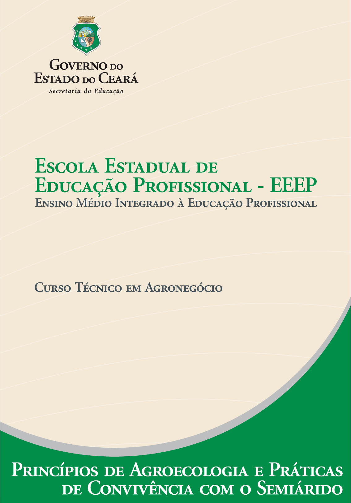 Escola Estadual de Educação Profissional [EEEP] Ensino Médio Integrado à Educação Profissional Agronegócio – Princípios de Agroecologia e Convivência com o Semiárido 1 Disciplina: Princípios de Agroecologia e Convivência com o Semiárido ==================================================================== Apostila destinada ao Curso Técnico de Nível Médio em Agronegócio das Escolas Estaduais de Educação Profissional – EEEP Material elaborado/organizado pelo professor Francisco Mateus da Rocha Nascimento - 2018 ==================================================================== Escola Estadual de Educação Profissional [EEEP] Ensino Médio Integrado à Educação Profissional Agronegócio – Princípios de Agroecologia e Convivência com o Semiárido 2 Sumario Página Unidade I 1. Os Fatores do meio ambiente: 04 a) Riscos climáticos no semiárido e nos trópicos 05 b) Limitações para a atividade agropecuária 06 c) Referencial do funcionamento de alguns solos da região semiárida 07 d) Vegetação da caatinga 08 e) Ciclagem da matéria orgânica 10 Unidade II 2. Processos ecológicos no agroecossistemas: 11 a) Diferenças estruturais entre os ecossistemas naturais e agroecossistemas 11 b) Dinâmica das comunidades animais e vegetais no agroecossistemas 13 c) Análise dos ciclos minerais, transformações energéticas e dos processos biológico 13 d) A importância e o manejo da matéria orgânica do solo. 13 Unidade III 3. Biodiversidade: 22 a) Papel das espécies vegetais e das variedades em relação às práticas agrícolas 23 b) Papel dos agricultores no processo de seleção genética 24 c) Perda da diversidade genética e sustentabilidade da agricultura 26 d) Impacto do fogo e pastoreio nas comunidades florísticas 28 Unidade IV 4. Agroecologia e sistemas agrários: 28 a) Manejo integrado de pragas e doenças 28 b) Principais métodos de combate às pragas 29 c) Controle alternativo de pragas 29 d) Controle biológico de pragas e doenças (histórico, tipos, principais inimigos naturais, situação atual, perspectivas futuras) 30 Unidade V 5. Desafios e perspectivas para uma Agroecologia sustentável: 33 a) O Papel da educação de técnicos e agricultores em manejo ecológico de pragas (diálogo de saberes) 34 b) Agroecologia como ciência 34 c) Agroecologia como movimento social 37 d) Agroecologia como política pública 40 Escola Estadual de Educação Profissional [EEEP] Ensino Médio Integrado à Educação Profissional Agronegócio – Princípios de Agroecologia e Convivência com o Semiárido 3 Unidade VI 6. Práticas inadequadas de uso de recursos naturais no semiárido: 42 a) Queimada 43 b) Desmatamento 44 c) Caça predatória 46 Unidade VII 7. O uso em conjunto das águas da chuva e subterrânea: 49 a) Barragens superficiais e subterrâneas 49 b) Sistemas de cisternas 50 Unidade VIII 8. Armazenamento de alimento para animais: 53 a) Fenação e ensilagem 53 b) Cactaceas (palmal, mandacaru) 53 c) Pastejo diferido (espécies da caatinga) 54 d) Leucena, algaroba 60 Escola Estadual de Educação Profissional [EEEP] Ensino Médio Integrado à Educação Profissional Agronegócio – Princípios de Agroecologia e Convivência com o Semiárido 4 Unidade I Os Fatores do meio ambiente: Para iniciar nosso entendimento sobre os fatores atuantes no Meio Ambiente, vejamos alguns conceitos: O meio ambiente envolve todas as coisas com vida (Fatores bióticos) e sem vida (Fatores abióticos) que existem na Terra ou em alguma região dela e que afetam os outros ecossistemas existentes e a vida dos seres humanos. O meio ambiente pode ter diversos conceitos, que são identificados pelos componentes que fazem parte dele. Conheça os mais importantes: Para as Organização das Nações Unidas (ONU) o meio ambiente é o conjunto de elementos físicos, químicos, biológicos e sociais que podem causar efeitos diretos ou indiretos sobre os seres vivos e as atividades humanas. O meio ambiente é o conjunto de unidades ecológicas que funcionam como um sistema natural. Assim, o meio ambiente é composto por toda a vegetação, animais, micro-organismos, solo, rochas, atmosfera. Também fazem parte do meio ambiente os recursos naturais, como a água e o ar e os fenômenos físicos do clima, como energia, radiação, descarga elétrica e magnetismo. O meio ambiente é composto por quatro esferas diferentes: atmosfera, litosfera, hidrosfera e biosfera. A atmosfera é a camada ar que envolve o planeta, formada por gases como oxigênio, gás carbônico, metano e nitrogênio. A litosfera é a camada mais externa do planeta, formada pelo solo e por uma superfície rochosa, também chamada de crosta terrestre. Já a hidrosfera inclui todas as águas do planeta (rios, mares, lagos, oceanos e etc) e a biosfera é a camada referente à vida e engloba todas as formas de vida que existem na Terra. Na ecologia o meio ambiente é o ecossistema em que se desenvolve a vida de um tipo organismo, ou seja, existem diversos tipos de ecossistema em que os organismos vivem. No meio ambiente existem vários fatores externos que têm influência sobre a vida dos organismos. Assim, a ecologia é uma área que tem como objeto de estudo as relações existentes entre os organismos e o ambiente que os envolve. Escola Estadual de Educação Profissional [EEEP] Ensino Médio Integrado à Educação Profissional Agronegócio – Princípios de Agroecologia e Convivência com o Semiárido 5 a) Riscos climáticos no semiárido e nos trópicos O Semiárido brasileiro ocupa uma área de 969.589 km e inclui os Estados do Ceará, Rio Grande do Norte, a maior parte da Paraíba e Pernambuco, Sudeste do Piauí, Oeste de Alagoas e Sergipe, região central da Bahia e uma faixa que se estende em Minas Gerais, seguindo o Rio São Francisco, juntamente com um enclave no vale seco da região média do rio Jequitinhonha. Clima A precipitação pluviométrica (ocorrências de chuvas) do Semiárido brasileiro é marcad