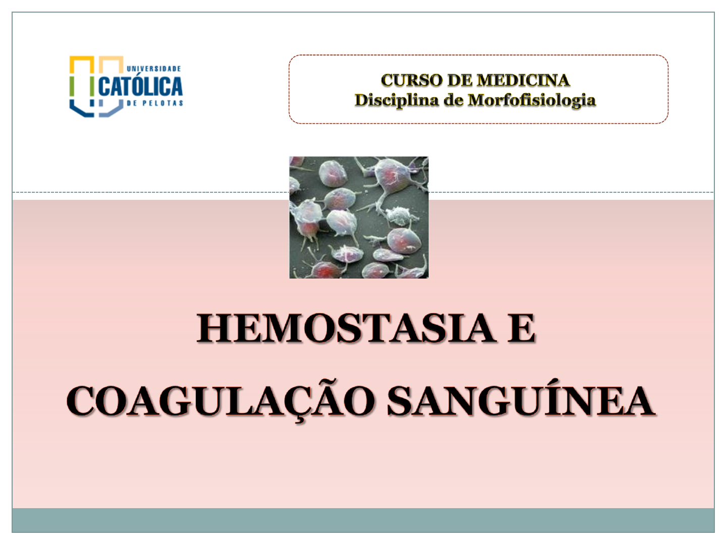 HEMOSTASIA ≠ HOMEOSTASIA Homeostase: habilidade de manter o meio interno em constante equilíbrio, funcionando contra as mudanças no meio externo (PA, Temperatura corporal, pressão osmótica...) Hemostasia: é uma série complexa de fenômenos biológicos que ocorre em resposta à lesão de um vaso sanguíneo com objetivo de evitar uma hemorragia. EVENTOS DA HEMOSTASIA 1) constrição vascular, 2) formação de tampão de plaquetas, 3) formação de coágulo sanguíneo, 4) eventual crescimento de tecido fibroso no coágulo para o fechamento permanente no orifício do vaso. CONSTRIÇÃO VASCULAR 1) espasmo miogênico local, 2) fatores autacoides locais dos tecidos traumatizados e das plaquetas e, 3) reflexos nervosos. Formação do tampão plaquetário Plaquetas (trombócitos): originadas dos megacariócitos da medula óssea Glicoproteínas da membrana plaquetária: repelem a aderência ao endotélio normal e favorecem a aderência às áreas lesionadas da parede vascular Mecanismo do tampão plaquetário Plaquetas em contato com superfície vascular danificada: Dilatação e emissão de pseudópodos Liberação de grânulos com fatores ativos, os quais aderem ao colágeno tecidual e ao fator de von Willebrand (plasma) Secreçaõ de ADP e TXA2, os quais ativam as plaquetas vizinhas Formação do tampão plaquetário inicial Formação do coágulo sanguíneo Substâncias ativadoras (produzidas pela parede vascular lesada, pelas plaquetas e pelas proteínas sanguíneas) iniciam o processo de coagulação Após um período de 20 minutos a 1 hora, o coágulo se retrai, o que fecha ainda mais o vaso Organização fibrosa ou dissolução do coágulo sanguíneo Sobre o coágulo formado: Invasão por fibroblastos, formando tecido conjuntivo por todo o coágulo, ou Dissolução (lise) do coágulo Coagulação em um vaso traumatizado Mecanismo da coagulação sanguínea Mais de 50 substâncias importantes que causam (pró- coagulantes) ou afetam (anticoagulantes) a coagulação foram encontradas no sangue e nos tecidos Na corrente sanguínea predominam os anticoagulantes Quando o vaso é rompido, pró-coagulantes são ativados, predominando sobre os anticoagulantes Mecanismo geral da coagulação A coagulação ocorre em 3 etapas essenciais: 1. Em resposta à ruptura do vaso ou alterações sanguíneas, ocorre no sangue uma cascata de reações químicas, resultando na formação de um complexo de substâncias ativas, chamado ativador da protrombina 2. O ativador da protrombina catalisa a conversão da protrombina (fator II) em trombina (fator IIa) 3. A trombina converte o fibrinogênio (fator I) em fibras de fibrina (fator Ia), formando o coágulo estável Mecanismo geral da coagulação A coagulação ocorre em 3 etapas essenciais: 1. Em resposta à ruptura do vaso ou alterações sanguíneas, ocorre no sangue uma cascata de reações químicas, resultando na formação de um complexo de substâncias ativas, chamado ativador da protrombina 2. O ativador da protrombina catalisa a conversão da protrombina (fator II) em trombina (fator IIa) 3. A trombina converte o fibrinogênio (fator I) em fibras de fibrina (fator Ia), formando o coágulo estável Conversão de protrombina em trombina 1. O ativador da protrombina é formado em resposta à ruptura de um vaso 2. O ativador de protrombina, na presença de Ca++ causa a conversão de protrombina em trombina 3. A trombina converte o fibrinogênio em fibrina Formação de fibrina Protrombina Trombina Fibrinogênio Monômero de fibrinogênio Ca++ Fibras de fibrina Protrombina Protrombina: Formada continuamente no fígado; requer a presença de vitamina K Falta de vitamina K e doença hepática= redução nos níveis de protrombina= aumento da tendência a sangramento Conversão do fibrinogênio em fibrina Formação do coágulo Fibrinogênio: Formado no fígado Trombina: Enzima protêica que atua sobre o fibrinogênio, formando uma molécula de monômero de fibrina, a qual tem capacidade de se polimerizar com outros monômeros de fibrina para formar fibras de fibrina Conversão do fibrinogênio em fibrina Formação do coágulo Nos estágios iniciais da polimerização, os monômeros de fibrina são mantidos unidos por ligação fraca de hidrogênio não-covalente. Por conseguinte, o coágulo resultante é fraco e pode se romper facilmente O fator estabilizador de fibrina (presente nas globulinas do plasma e também liberado pelas plaquetas) é ativado pela trombina, criando ligações covalentes entre os monômeros de fibrina, aumentando a força tridimensional da rede de fibrina Retração do coágulo - soro Alguns minutos após a formação do coágulo, ele começa a se contrair e expelir grande parte do líquido que o compõe (soro), o qual não contém fibrinogênio e fatores da coagulação Para a retração do coágulo, as plaquetas ativam a trombostenina da actina e miosina, que são proteínas contráteis presentes nas plaquetas A retração do coágulo traciona as bordas do vaso lesado, contribuindo para o estado final da hemostasia Desencadeamento da coagulação: Formação do ativador da protrombina O ativador da protrombina é formado por 2 vias: 1. Via extrínseca (começa com o trauma à parede vascular e tecidos vizinhos) 2. Via intrínseca (começa no sangue) Em ambas as vias, os fatores da coagulação sanguínea são ativados em série (cascata) Via Extrínseca da Coagulação 1. Liberação do fator tecidual (tromboplastina tecidual) pelo tecido lesado 2. Ativação do fator X pelo fator VII combinado ao fator tecidual, na presença de Ca++ 3. O fator Xa combina-se ao fator V para formar o complexo ativador da protrombina, na presença de Ca++ Via Extrínseca da Coagulação Via Intrínseca da Coagulação 1. O trauma sanguíneo ativa o fator XII e libera os fosfolipídios das plaquetas 2. O fator XIIa ativa o fator XI 3. O fator XIa ativa o fator IX 4. O fator IXa + o fator VIIIa + fosfolipídios e fator 3 das plaquetas traumati