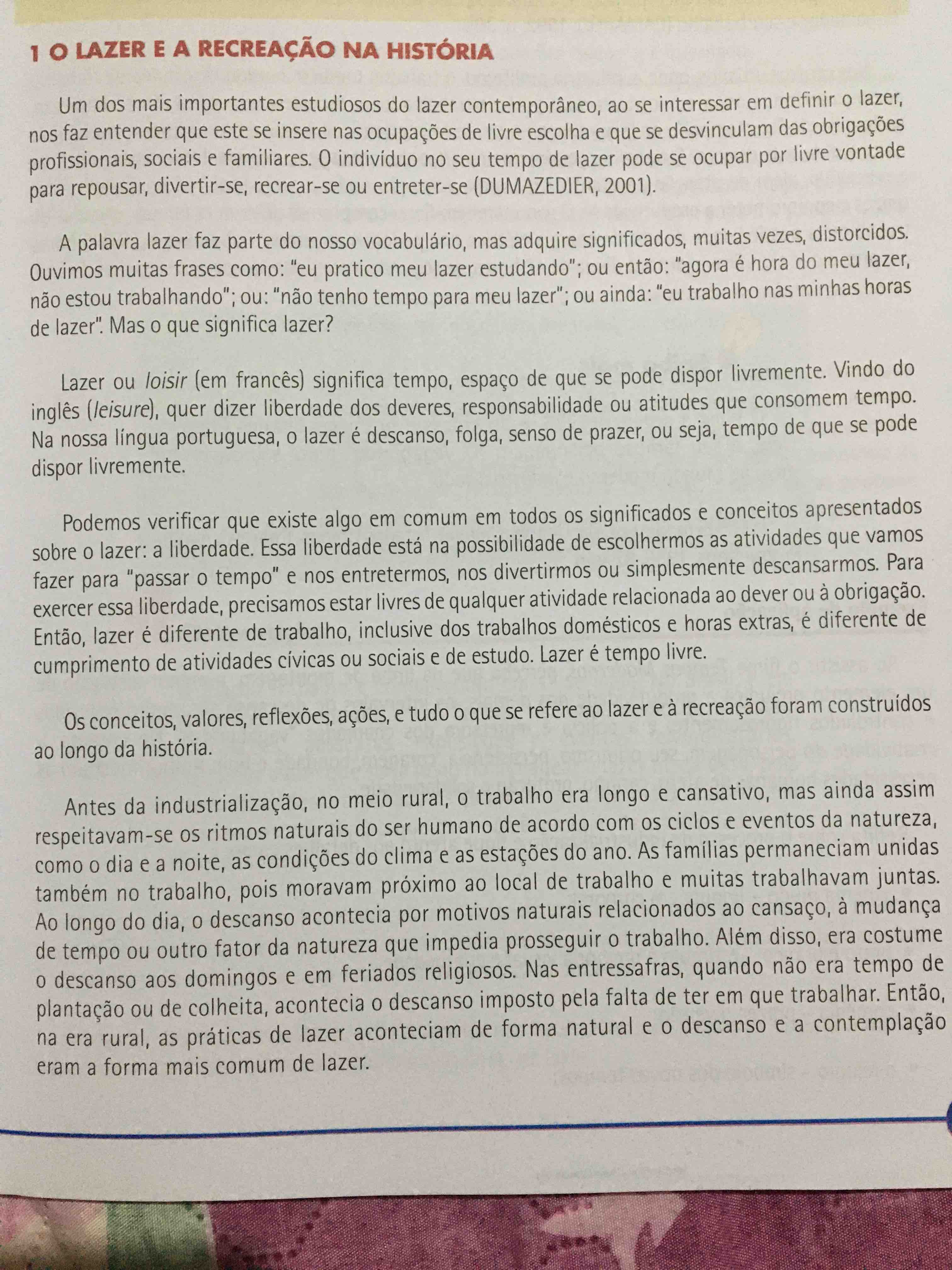 Questão 7 Ler em voz alta A prática do lazer é essencial para as pessoas pois, no tempo livre é possível se ocupar de algo que traga satisfação e porq