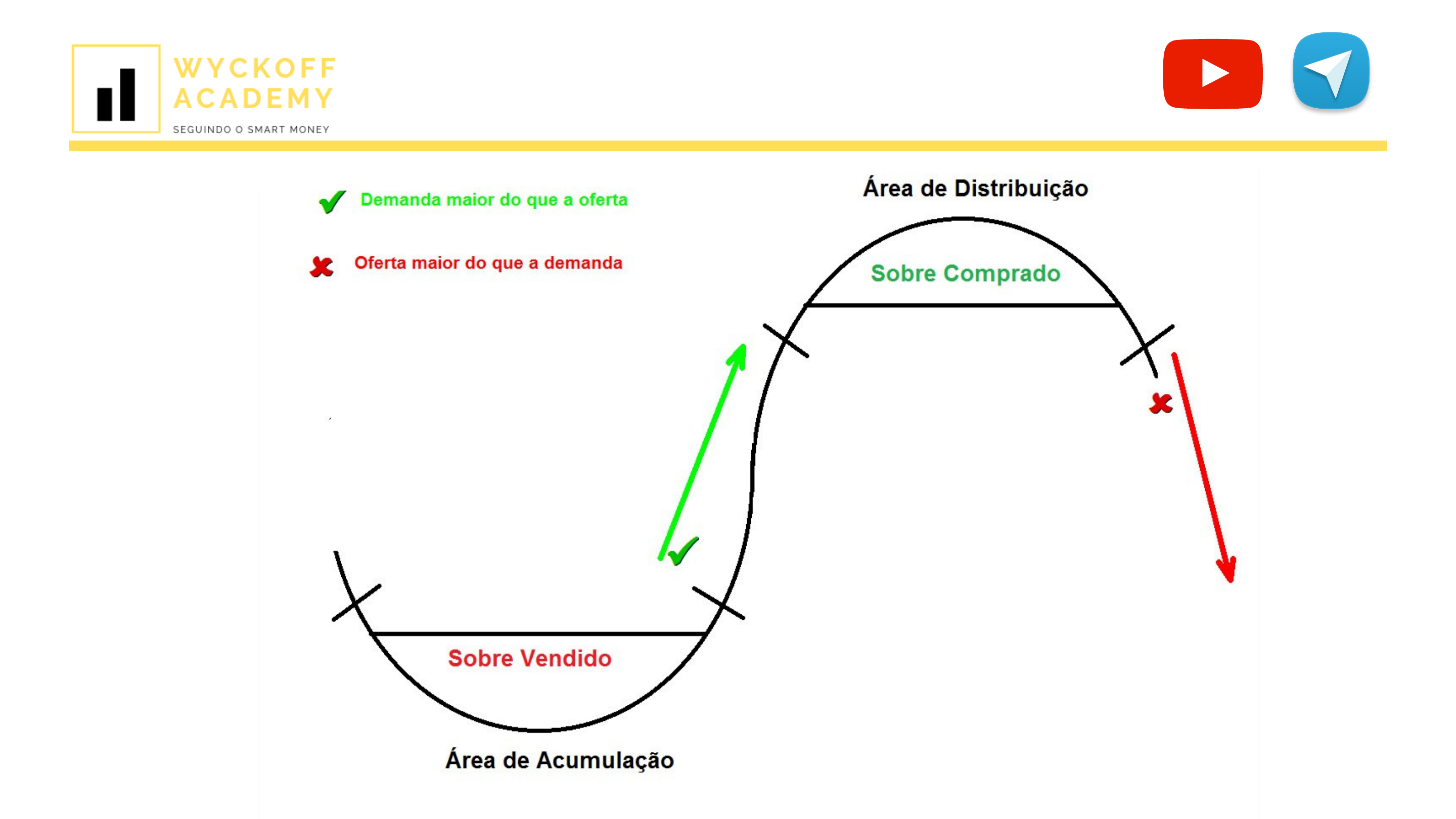 Clique nos ícones para mais conteúdo Clique nos ícones para mais conteúdo REGIÃO DE ACUMULAÇÃO PS:Parada preliminar SC: Venda Climática AR:Rally Automático ST:Segundo teste Spring:Spring LPS:Ultimo ponto de Suporte JTC: Salto sobre o Rio BU: Retrocesso ao JTC RL:Linha de Resistência SL:Linha de Suporte SOS: Sinal de Força ESFORÇO X RESULTADO: Se houver um esforço, o resultado deve ser proporcional ao esforço e não pode ser separado dele. Um exemplo é quando temos muito volume em uma tentativa de movimentação para cima / para baixo. Se vemos muito volume, devemos ter em algum momento resultado proporcional a esse volume. OFERTA E DEMANDA: Quando temos maior numero de compradores do que vendedores temos maior Demanda o Inverso temos Maior Oferta CAUSA E EFEITO: Para que haja um efeito (mudança de preço), é preciso haver uma causa. O efeito será em proporção direta a essa causa. Os melhores movimentos de preço ocorrem quando há tempo suficiente para permitir um período de acumulação ou distribuição (ou, em outras palavras, uma causa). Um ótimo exemplo é quando vemos uma expansão do volume, duração e tempo dentro de um range. REGIÃO DE DISTRIBUIÇÃO PSY: Oferta Preliminar BC:Compra Climática AR:Reação Automática ST: Segundo Teste UT: UP Thrust UTDA: UP Thurust depois da Distribuição LPSY: Ultimo Ponto de Oferta RL: linha e Resistência BTA: Quebra da Linha de Gelo SOW: Sinal de Fraqueza SL: linha de Suporte MD: Tendência de Baixa Clique nos ícones para mais conteúdo Clique nos ícones para mais conteúdo