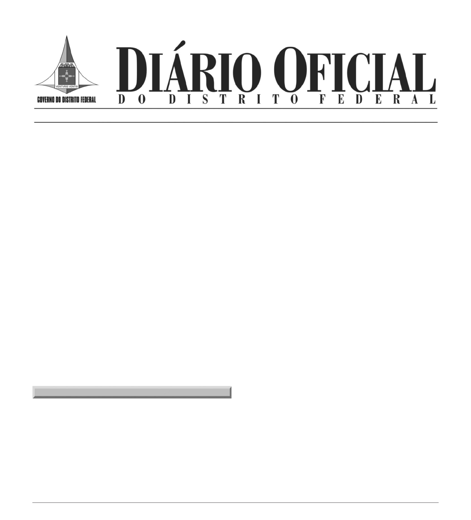 ANO XLVIII EDIÇÃO No- 191 BRASÍLIA - DF, SEGUNDA-FEIRA, 7 DE OUTUBRO DE 2019 Este documento pode ser verificado no endereço eletrônico h t t p : / / w w w. i n . g o v. b r / a u t e n t i c i d a d e . h t m l pelo código 50012019100700001 Documento assinado digitalmente conforme MP nº 2.200-2 de 24/08/2001, que institui a Infraestrutura de Chaves Públicas Brasileira - ICP-Brasil. SEÇÃO I SUMÁRIO SEÇÃO I PÁG. SEÇÃO II PÁG. SEÇÃO III PÁG. Poder Legislativo................................................................................... . 34 Casa Civil .............................................................................................. . 22 Secretaria de Estado de Governo......................................................... . 1 22 34 Secretaria de Estado de Proteção da Ordem Urbanística do Distrito Federal - Df Legal ................................................................................ . 24 Secretaria de Estado de Economia....................................................... . 2 25 34 Secretaria de Estado de Saúde ............................................................. . 7 26 37 Secretaria de Estado de Educação ....................................................... . 7 28 39 Secretaria de Estado de Transporte e Mobilidade .............................. . 15 28 39 Secretaria de Estado de Desenvolvimento Econômico....................... . 40 Secretaria de Estado de Trabalho......................................................... . 15 Secretaria de Estado de Comunicação................................................. . 40 Secretaria de Estado de Agricultura, Abastecimento e desenvolvimento Rural.......................................................................... . 15 28 Secretaria de Estado de Segurança Pública......................................... . 15 29 48 Secretaria de Estado de Justiça e Cidadania ....................................... . 30 50 Secretaria de Estado de Obras e Infraestrutura................................... . 31 50 Secretaria de Estado de Desenvolvimento Urbano e Habitação ........ . 18 31 Secretaria de Estado do Meio Ambiente ............................................. . 18 31 51 Secretaria de Estado de Desenvolvimento Social ............................... . 19 31 51 Secretaria de Estado da Mulher ........................................................... . 32 Secretaria de Estado do Esporte e Lazer............................................. . 32 Secretaria de Estado de Turismo ......................................................... . 32 62 Secretaria de Estado de Cultura e Economia Criativa ....................... . 33 63 Controladoria Geral do Distrito Federal .............................................. . 21 33 Tribunal de Contas do Distrito Federal ............................................... . 21 70 Ineditoriais ............................................................................................. . 71 SECRETARIA DE ESTADO DE GOVERNO SECRETARIA EXECUTIVA DAS CIDADES ADMINISTRAÇÃO REGIONAL DO PLANO PILOTO ORDEM DE SERVIÇO Nº 100, DE 02 DE OUTUBRO DE 2019 A ADMINISTRADORA REGIONAL DO PLANO PILOTO, DO DISTRITO FEDERAL, no uso das atribuições conferidas pelo Regimento Interno aprovado pelo Decreto nº 38.094, de 28 de março de 2017 e o que consta no Processo: 00480-00003920/2018-43, resolve: Art. 1º Prorrogar por mais 30 (trinta) dias, a contar de 26 de setembro de 2019, o prazo fixado na Ordem de Serviço nº 77, de 21/08/2019, publicada no DODF nº 162, de 27/08/2019, pág. 21/22. Art. 2º Esta Ordem de Serviço entra em vigor na data de sua publicação. ILKA TEODORO ADMINISTRAÇÃO REGIONAL DE BRAZLÂNDIA ORDEM DE SERVIÇO Nº 96, DE 30 DE SETEMBRO DE 2019 O ADMINISTRADOR REGIONAL DE BRAZLÂNDIA DO DISTRITO FEDERAL, o uso de suas atribuições que lhe são conferidas no inciso XXXVIII, do artigo 42, do Regimento Interno das Administrações Regionais, aprovado pelo Decreto nº 38.094, de 28 de março de 2017, resolve: Art. 1º Prorrogar por mais 30 (trinta) dias, a partir de 5 de outubro de 2019, o prazo da Comissão de Sindicância instaurada pela ORDEM DE SERVIÇO Nº 60, de 16 de julho de 2019, publicada no DODF Nº 146, de 05 de julho de 2019, página 7, designada para fatos contidos no Inquérito Policial nº 272/2018 - CECOR e no Inquérito Civil Público nº 08190.066474/2013-70, constantes do Processo SEI-GDF nº 00020-00016166/2018-19. Art. 2º Esta Ordem de Serviço entra em vigor na data de sua publicação. JESIEL COSTA ROSA ADMINISTRAÇÃO REGIONAL DO CRUZEIRO DESPACHO DO ADMINISTRADOR Em 03 de outubro de 2019 TORNAR SEM EFEITO a Ordem de Serviço nº 68, de 22 de agosto de 2019, publicada no DODFº 162 de 27 de agosto de 2019, pág. 23. CLÁUDIO SIMÕES DOS SANTOS ADMINISTRAÇÃO REGIONAL DO SETOR COMPLEMENTAR DE INDÚSTRIA E ABASTECIMENTO ORDEM DE SERVIÇO Nº 49, DE 27 DE SETEMBRO DE 2019 O ADMINISTRADOR REGIONAL DO SETOR COMPLEMENTAR DE INDÚSTRIA E ABASTECIMENTO DO DISTRITO FEDERAL no uso das atribuições que lhe confere o inciso L, do art. 42, do Decreto nº 38.094, de 28 de março de 2017, em conformidade com o art. 1º da Lei nº 4.821, de 27 de abril de 2012 que dispõe sobre as manifestações artísticas e culturais nas ruas, avenidas e praças públicas do Distrito Federal e dá outras providências, consubstanciado com o inciso IX do art. 19 da Lei Complementar nº 783, de 30 de outubro de 2008 e pelo que consta no processo: 00306-00001165/2019-19 resolve: Art. 1º Dispensar o pagamento do preço público correspondente à ocupação de área pública, referente à Praça de Alimentação (Vila Estrutural/Setor Leste - Próxima à Quadra 01), no dia 09 de agosto de 2019, no horário de 18h às 22h, para realização do evento cultural Som na Praça, de forma gratuita à comunidade. Art. 2º Esta Ordem de Serviço entra em vigor na data de sua publicação. GUSTAVO CUNHA DE SOUZA ORDEM DE SERVIÇO Nº 52, DE 27 DE SETEMBRO DE 2019