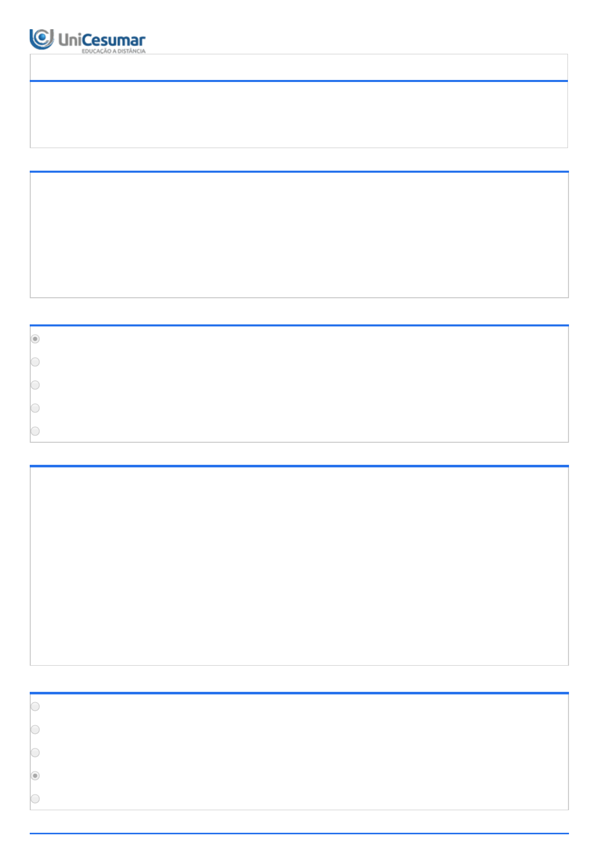 02/12/2019 Unicesumar - Ensino a Distância 1/6 ATIVIDADE DE ESTUDO 2 - CCONT - COMUNICAÇÃO EMPRESARIAL E NEGOCIAÇÃO- 2017A1 Período:06/03/2017 22:30 a 31/03/2017 23:59 (Horário de Brasília) Status:ENCERRADO Nota máxima:0,50 Gabarito:Gabarito será liberado no dia 01/04/2017 00:00 (Horário de Brasília) Nota obtida:0,45 1ª QUESTÃO A ética é sempre um tema polêmico, contudo de grande importância para a vida em sociedade. Imagine que você está parado em um semáforo as 2h da manhã. Por ser um local que oferece risco e por estar em um horário de pouco movimento, você decide sair antes que o sinal estivesse liberado. Tempo depois, você recebe em sua residência uma autuação de infração de trânsito por avançar o sinal vermelho. Você entrou com recurso pedindo a não efetivação da multa, mas não teve jeito, seu pedido foi indeferido. Considerando a situação narrada e também os conceitos éticos, morais e legais, podemos dizer que essa situação se enquadra em qual tipo de comportamento? Assinale a alternativa correta. ALTERNATIVAS Comportamento ético, porém não legal. Comportamento moral, porém não ético. Comportamento nem ético e nem legal. Comportamento considerado legal, porém não ético. Comportamento legal e ético segundo os padrões da sociedade. 2ª QUESTÃO Entre as diversas características que compõem o perfil do líder temos a habilidade de comunicação, pois é o principal meio de relação entre as pessoas. Basicamente o trabalho do líder é se comunicar de forma a executar seu papel interpessoal, informacional e decisorial. Entretanto muitos gestores ainda não valorizam a comunicação e acabam por cometer falhas em seu processo de liderança. Sobre os motivos pela qual os gestores não valorizam a comunicação, analise as proposições a seguir e assinale a alternativa correta: I) Os gestores não acreditam na relação da comunicação com o sucesso, pois consideram que o investimento na comunicação não produz retorno quantificável. Diante disso, II) Pode-se afirmar que os gestores apresentam despreparo para o uso estratégico da comunicação de forma agregadora, organizadora e direcionadora. ALTERNATIVAS Ambas afirmações estão incorretas. A afirmativa I está correta e a II incorreta. A afirmativa I está incorreta e a II correta. As afirmativas I e II são corretas e complementares. As afirmativas I e II são corretas mas não tratam sobre o mesmo assunto. 3ª QUESTÃO 02/12/2019 Unicesumar - Ensino a Distância 2/6 A empresa HB7 está no mercado há onze anos e atua no segmento de software para escritórios. Com as constantes alterações e mudanças econômicas ocorridas nos últimos meses a empresa vem perdendo faturamento mês após mês. Ana Bela, superintendente da empresa, optou por lançar metas ousadas mesmo diante do atual cenário econômico, contudo, ela argumentou que para alcançar tais objetivos a empresa necessitará otimizar seus recursos e sua produtividade. Diante disso Beto, diretor de operações, sugeriu que todos os processos fossem redesenhados de forma que se tornassem mais ágeis e que todas as equipes fossem treinadas sobre esses novos procedimentos. Ainda foi sugerido a criação de um ambiente online “wiki” para que as informações pudessem ser facilmente acessadas pelos colaboradores. Diante desse contexto, podemos dizer que as sugestões propostas por Beto referem-se a qual tipo de comunicação? ALTERNATIVAS Comunicação institucional. Comunicação administrativa. Comunicação interna. Comunicação mercadológica. Comunicação digital. 4ª QUESTÃO Antes de analisarmos como se dá o processo de comunicação e quais são seus elementos, precisamos entender a diferença entre comunicação e informação. Com base no exposto, avalie as seguintes asserções e a relação proposta entre elas. I. Informação é quando um emissor passa para um receptor um conjunto de dados codificados (informações) e estes são entendidos e assimilados. Dessa forma, II. A comunicação acontece somente quando a informação recebida pelo receptor é compreendida, interpretada (decodificada) e encaminhada de volta ao emissor. A respeito dessas asserções, assinale a opção correta. ALTERNATIVAS As asserções I e II são falsas. A asserção I é verdadeira e a asserção II é falsa. A asserção I é falsa e a asserção II é verdadeira. As asserções I e II são verdadeiras, mas não são complementares. As asserções I e II são verdadeiras e complementares. 5ª QUESTÃO 02/12/2019 Unicesumar - Ensino a Distância 3/6 (Adaptado de ENADE 2012) Os executivos de uma empresa do setor de fastfood que mantêm lojas em todo o território nacional, estão preocupados com a recorrência de matérias na mídia sobre os prejuízos causados à saúde pelos maus hábitos alimentares, atribuídos à baixa qualidade das refeições rápidas, foco do negócio da empresa. Como reação, esses executivos desenvolveram um processo de remodelação das lojas e das embalagens dos produtos, buscando incorporar uma concepção de boa relação com o meio ambiente, utilizando materiais reciclados e informando esse fato nas embalagens e nas campanhas de comunicação. Outra ação foi incorporar insumos naturais e orgânicos ao cardápio das lojas, ampliando o número de opções. Isso acarretou o aumento da complexidade na operação, porém de acordo com uma pesquisa de mercado encomendada pela empresa, foi identificado aumento no valor da marca após as ações tomadas. Considerando a situação acima, avalie e assinale a alternativa correta. ALTERNATIVAS As ações empreendidas pela empresa referem-se à comunicação institucional e a comunicação administrativa, pois trabalham simultaneamente os processos internos e a imagem da organização junto a seus públicos. Podemos considerar que a empresa atuou fortemente sobre a comunicação interna e a comunicação mercadológica, uma vez que os processos des