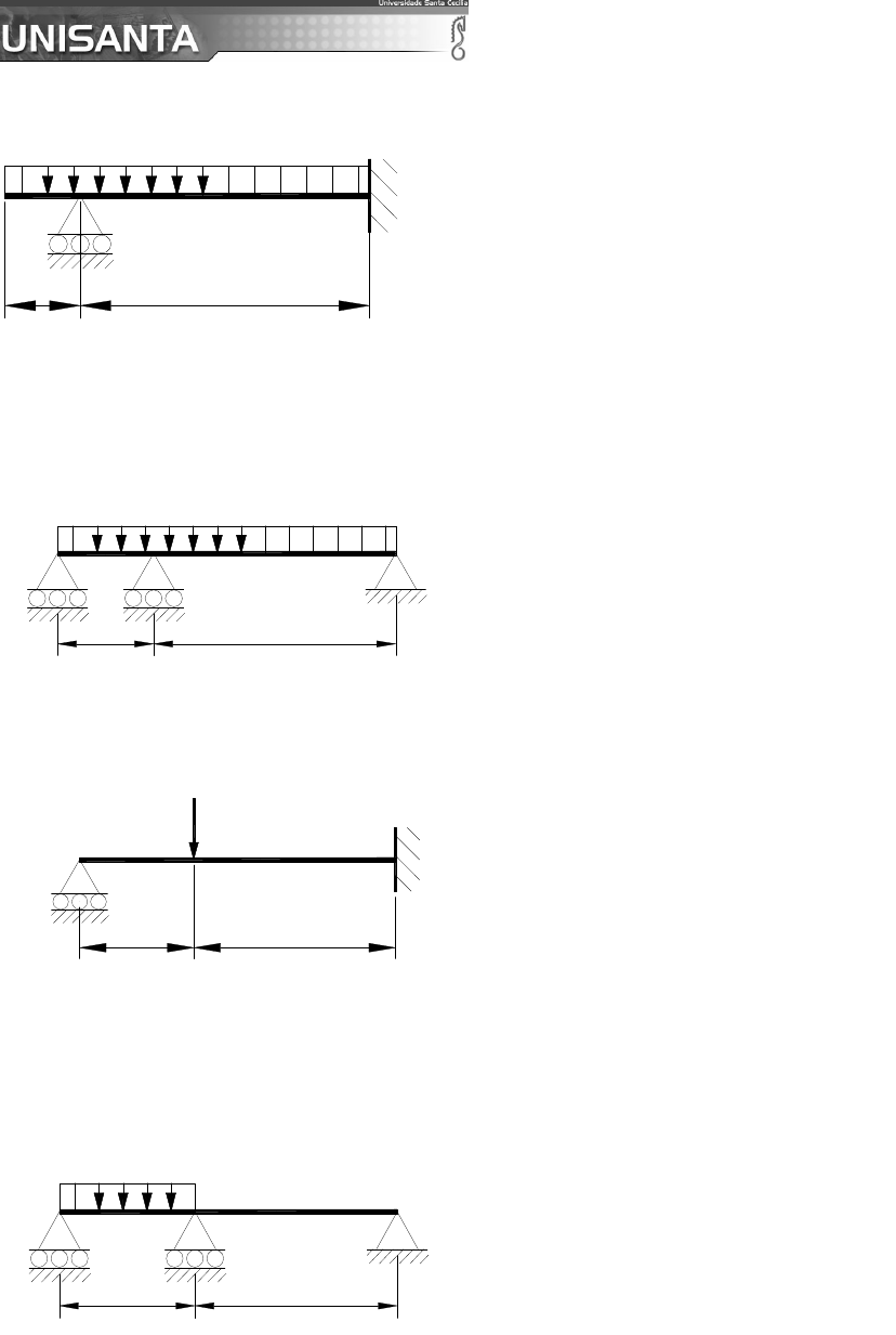 Engenharia Mecânca Resistência dos Materiais I Lista 6 Prof. José Carlos Morilla 1. Determinar a reação no apoio móvel da figura. ( EI – constantes) LL/4 q 2. Determinar as reações de apoio para a estrutura 8kN/m A B C 2m 4m 3. Determinar a reação do apoio A para a estrutura 3m2m A 20 kN 4. Determinar as reações de apoio para a estrutura B 2m 3m 30kN/m A C R = 43qL/64 RA = 13 kN RB = 33 kN RC = 2 kN RA = 8,6 kN RA = 26,3 kN RB = 37,5 kN RC = -3,8 kN Engenharia Mecânca Resistência dos Materiais I Lista 6 Prof. José Carlos Morilla 5. Determinar, para a estrutura abaixo, as reações nos apoios A e B. 20 kN/m AB 3m2m 6. Determinar a flecha em B quando E = 200 GPa e I = 350x106mm4. 7. Determinar a flecha na extremidade livre da barra AB quando esta é feita com um perfil S102x14 e a barra CD feita com um S127x22. E = 200GPa. Resposta v = 3,65 mm 8. Determinar as reações de apoio para a estrutura quando: E = 210 GPa (barra) I=108 mm4 (barra) E = 19 GPa (cabo) A=700 mm2 (cabo) A 2m 1m1m B C D Cabo 3m 30 kN RA = 25,2 kN RB = 45,6 kN RA = -8,6 kN RB = 32,2 kN Ncabo= 6,4 kN Engenharia Mecânca Resistência dos Materiais I Lista 6 Prof. José Carlos Morilla 9. Determinar a forca no tirante de alumínio quando E = 200 GPa (aço) E = 70 GPa (alumínio) Resposta = P = 9,15 kN 10. Duas barras prismáticas, com seção quadrada de 100 mm de lado, são montadas como se mostra na figura. Desprezando-se o atrito existente no ponto de encontro das barras; determinar a máxima carga P que se pode aplicar para que não seja ultrapassada a tensão normal admissível de 120 MPa. E= 210 GPa P 3m 5m 11. As barras da figura são construídas com um perfil laminado em I. O cabo possui seção circular com área de seção transversal igual a 500 mm2. Determinar o deslocamento vertical do ponto de união entre as barras e o cabo. P= 8,13 kN E = 210GPa Iy = 8x106 mm4 Iz = 59x104 mm4 Deslocamento vertical = 2,1 mm