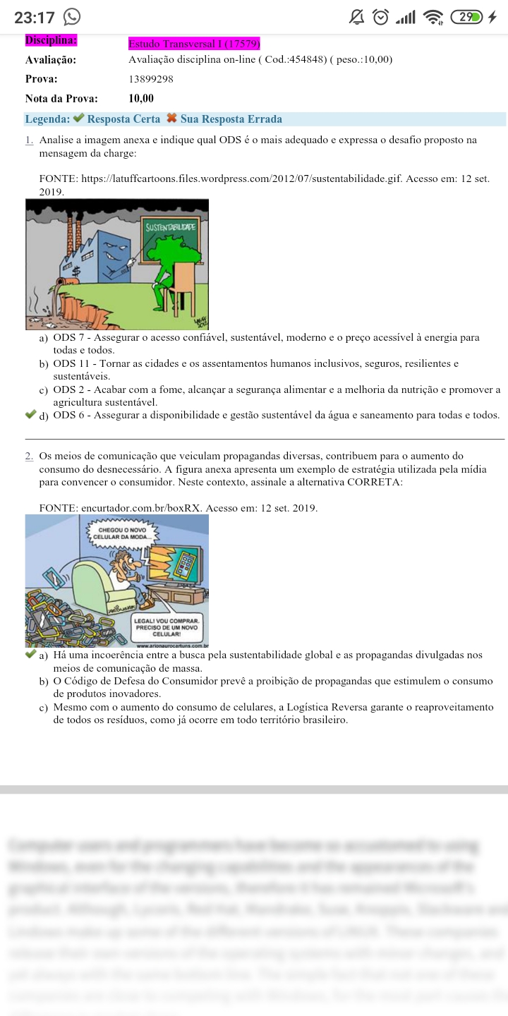 Os meios de comunicacao que veiculam propagandas diversas, contribuem para o aumento do consumo do desnecessario. A figura anexa apresenta um exemplo de estrategia utilizada pela midia para convencer o consumidor. Neste contexto assinale a alternativa CORRETA. a) Ha uma incoerencia entre a busca pela sustentabilidade global e as propagandas divulgadas nos meios de comunicacao de massa. b) Codigo de Defesa do Consumidor preve a proibicao de propagandas que estimulem o consumo de produtos inovadores. c) Mesmo com o aumento do consumo de celulares, a Logistica Reversa garante o reaproveitamento de todos os residuos, como ja ocorre em todo territorio brasileiro.