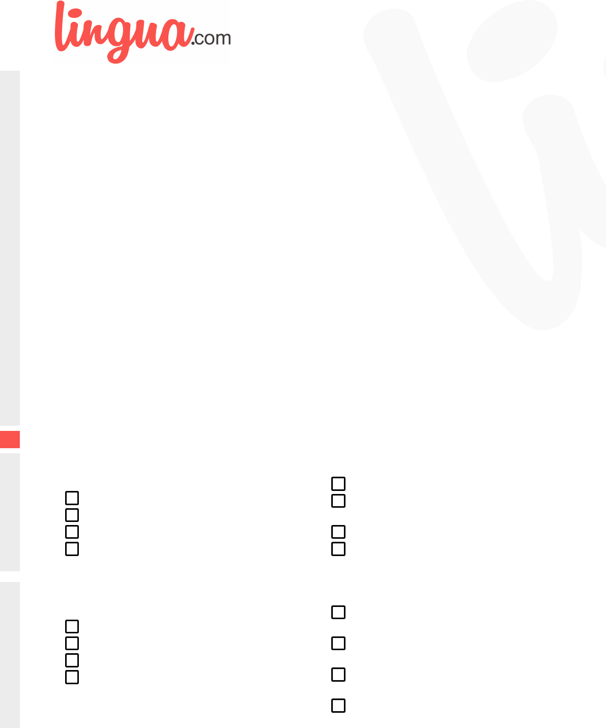 Going to a restaurant (A2) Sandra and Paul are at a steak restaurant. A waiter greets them. "Do you know what you would like to drink?" the waiter asks. "Water and orange juice,” Sandra says. "Thank you. Here are your menus," the waiter says. The waiter brings water for Paul and orange juice for Sandra. "What would you like to order?" the waiter asks. "I would like a 12-ounce steak and mashed potatoes," Paul says. "The same thing, but with green beans," Sandra says. "And two orders of garlic bread," Paul says. "Great. You should have it in soon," the waiter says. The waiter returns after an hour. "Sorry for your wait. Here are two orders of 12-ounce steaks with mashed potatoes and garlic bread,” the waiter says. "I asked for green beans with mine," Sandra says. "I'm sorry, I'll get those for you," the waiter says. The waiter quickly returns with Sandra's green beans. Did you understand the text? 1) What kind of restaurant did Paul and Sandra go to? a fast food restaurant a steak restaurant a pizza restaurant an Italian restaurant a) b) c) d) 2) What did Paul and Sandra order to drink? soda for Paul and beer for Sandra water for Paul and orange juice for Sandra beer for Paul and water for Sandra beer for Paul and orange juice for Sandra a) b) c) d) 3) What kind of steaks did Paul and Sandra order? two eight-ounce steaks two twenty-ounce steaks two twelve-ounce steaks two eighteen-ounce steaks a) b) c) d) 4) What was wrong with Sandra's order? she got coleslaw when she wanted green beans she got green beans when she wanted corn she got mashed potatoes when she wanted green beans she got green beans when she wanted a salad a) b) c) d) Source: https://lingua.com/english/reading/going-to-restaurant/ Solution: 1) b 2) b 3) c 4) c https://lingua.com/ https://lingua.com/english/reading/going-to-restaurant/