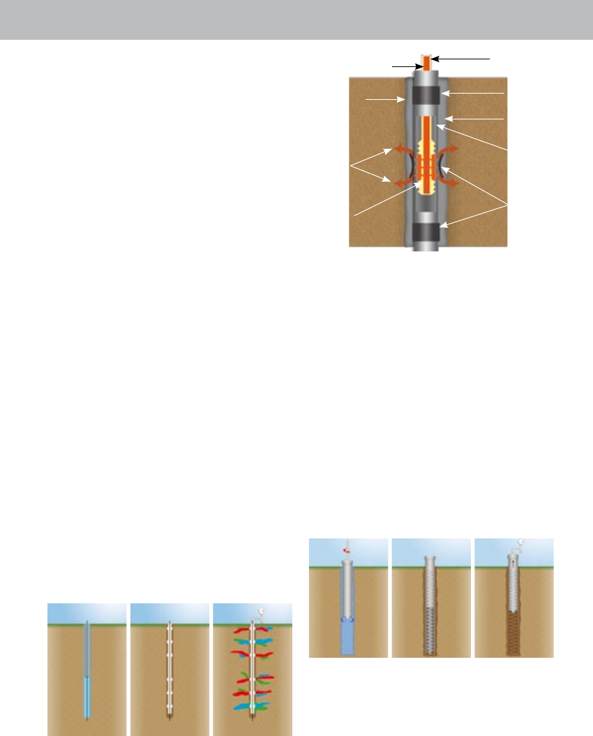 ESTACAS 40 1.1 Estaca-Raiz Imediatamente depois de feita a perfu- ração e a instalação da ferragem, é feita a injeção ascendente, enquanto o tubo de revestimento é retirado e é aplicada baixa pressão no topo. Este procedimento pode ser substituído pela injeção do tubo com válvulas, descrito a seguir. A estaca-raiz é armada com barras de aço e estribos ao longo do seu comprimen- to. Junto à ferragem se instala um tubo com válvulas, para injeção complementar. Depois de pelo menos 12 horas, se executa a injeção complementar. 1.3 Estaca Alluvial Anker A perfuração é feita com o próprio tubo que dispõe de ponta perfurante, sendo a injeção feita numa única fase, Índice 1 Definição 2 Norma 3 Objetivo 4 Documentos de obra 5 Conceitos 6 Equipamentos, acessórios e ferramentas 7 Equipe de trabalho 8 Procedimentos executivos 9 Tabelas de dimensionamento estrutural 10 Modelo de boletim de execução de estaca-raiz, microestaca e estaca alluvial anker 1 Definição Estacas-Raiz, microestacas e estacas alluvial anker são fundações moldadas no local, nas quais se utiliza a injeção sob pressão para se fazer a moldagem do fus- te. 1.2 Microestaca Depois de se fazer a perfuração, a ins- talação do tubo no furo e a injeção da bainha, é iniciada a injeção ponto-a-pon- to e em estágios múltiplos, com obtura- dor duplo através das válvulas-manchete. A microestaca é armada com tubo de aço ao longo de todo o seu comprimento. Figura 1 - Sequência da Microestaca Injeção de fases Perfuração Instalação do tubo e bainha Figura 3 - Sequência da Estaca-Raiz Instalação do tubo e armação Perfuração Injeção Figura 2 - Detalhe do obturador de injeção Calda de injeção Calda de injeção Composição de injeção Válvula- ManchetePerfuração Injeção da bainha Tubo de injeção Válvula- Manchete Obturador duplo ESTACAS 41 através da própria haste de perfuração. Esta injeção também pode ser feita du- rante a perfuração, utilizando-se o fluido cimentante como elemento de refrigera- ção da ferramenta de corte e retirada do material cortado (lama de perfuração). Ao final da perfuração, a estaca allu- vial anker já com o tubo de aço instalado ao longo do seu comprimento, pode re- ceber um capitel de concreto armado, de placa de aço, ou bloco de concreto armado assentado sobre sua cabeça, garantindo a transferência das cargas para a estaca. No caso dos capiteis, é lançada uma camada de brita e geogrelha entre as estacas. Estas estacas são ideais para fundações em solos argilosos moles. 2 Norma Para microestaca e estaca-raiz existe norma específica da ABNT, “NBR 6122 (Out/2010) – Projeto e Execução de Fun- dações”. Não há norma específica para a alluvial anker. 3 Objetivo Este documento: • Estabelece diretrizes e condicionantes para execução, verificação e avaliação de estacas escavadas de pequeno diâmetro moldadas no local: estaca-raiz, microesta- ca e estaca alluvial anker. • Descreve e fixa os equipamentos, ferra- mentas e acessórios mínimos necessários para a execução dos serviços. • Especifica equipe mínima, definindo ta- refas e responsabilidades de cada um. • Especifica os materiais a serem utiliza- dos. 4 Documentos de obra Os seguintes documentos devem estar disponíveis na obra: • Relatório de sondagens do local. • Planta de locação com cotas de arrasa- mento, detalhes da armação e carga pre- vista para a estaca. • Tabela de estacas com numeração, bloco, diâmetro, comprimento previsto, cota de apoio da ponta e cota de arrasamento. • Relação dos encargos sob responsabili- dade do cliente (exemplo: locação, licen- ça, seguro etc). • Relação dos materiais a serem forneci- dos pelo cliente (exemplo: cimento, areia, armação montada etc). • Boletim executivo de cada tipo de esta- ca, conforme mostram as Figuras 15, 16 e 17. No decorrer da obra, devem ser forne- cidos os boletins de controle das estacas ao cliente ou ao consultor de fundações. 5 Conceitos Neste documento são aplicados os se- guintes conceitos. Figura 4 - Sequência da Alluvial Anker Perfuração Injeção Colocação do capitel Camada de brita Geogrelha e aterro ESTACAS 42 5.1 Estaca em solo Executada por perfuração rotativa ou rotopercussiva, usando-se tecnologia que mantenha um fuste íntegro, visando atender necessidades estruturais e geo- técnicas de uso. 5.2 Estaca em solo e rocha Executada por perfuração rotativa ou rotopercussiva, com tecnologia que man- tenha um fuste íntegro, visando atender necessidades estruturais e geotécnicas de uso. Em rochas, seja na passagem de matacões ou no embutimento no topo rochoso, a perfuração deve ser feita por dentro do tubo de revestimento, com a consequente redução do diâmetro neste trecho. A Figura 6 mostra um fluxograma com as possibilidades de perfuração para execução de estaca-raiz, microestaca e estaca alluvial anker. 5.3 Diâmetros nominais Servem como designação para o pro- jeto da fundação, correspondem aos di- âmetros externos, em milímetros, dos tu- bos de revestimento utilizados na perfu- ração, para estaca-raiz. A Figura 5 indica a correspondência entre os diâmetros no- minais e os externos dos tubos de revesti- mento. No caso da microestaca o diâme- tro usual de perfuração varia de 75 a 150 mm. Nas estacas alluvial anker o diâmetro é de 63,5 mm. 5.4 Composição de injeção Conjunto de tubos de PVC, ou galva- nizados, unidos por conexões, utilizados para lavagem interna da composição dos tubos de revestimento e para preenchê- los com argamassa. Para microestaca, usam-se hastes com obturadores duplos para injeção da calda de cimento. Na allu- vial anker, a injeção é feita através da pró- pria haste de perfuração. 5.5 Broca de três asas ou tricone Ferramenta de corte acoplada à com- posição de hastes de perfuração, normal- mente formada por três ou mais faces, com passagem central para 