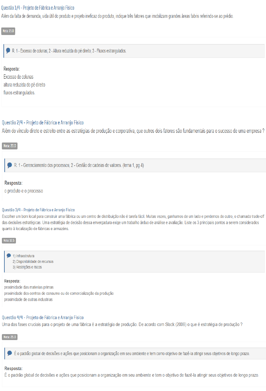 PFAF - Projeto de Fábrica e Arranjo Físico - Discursiva