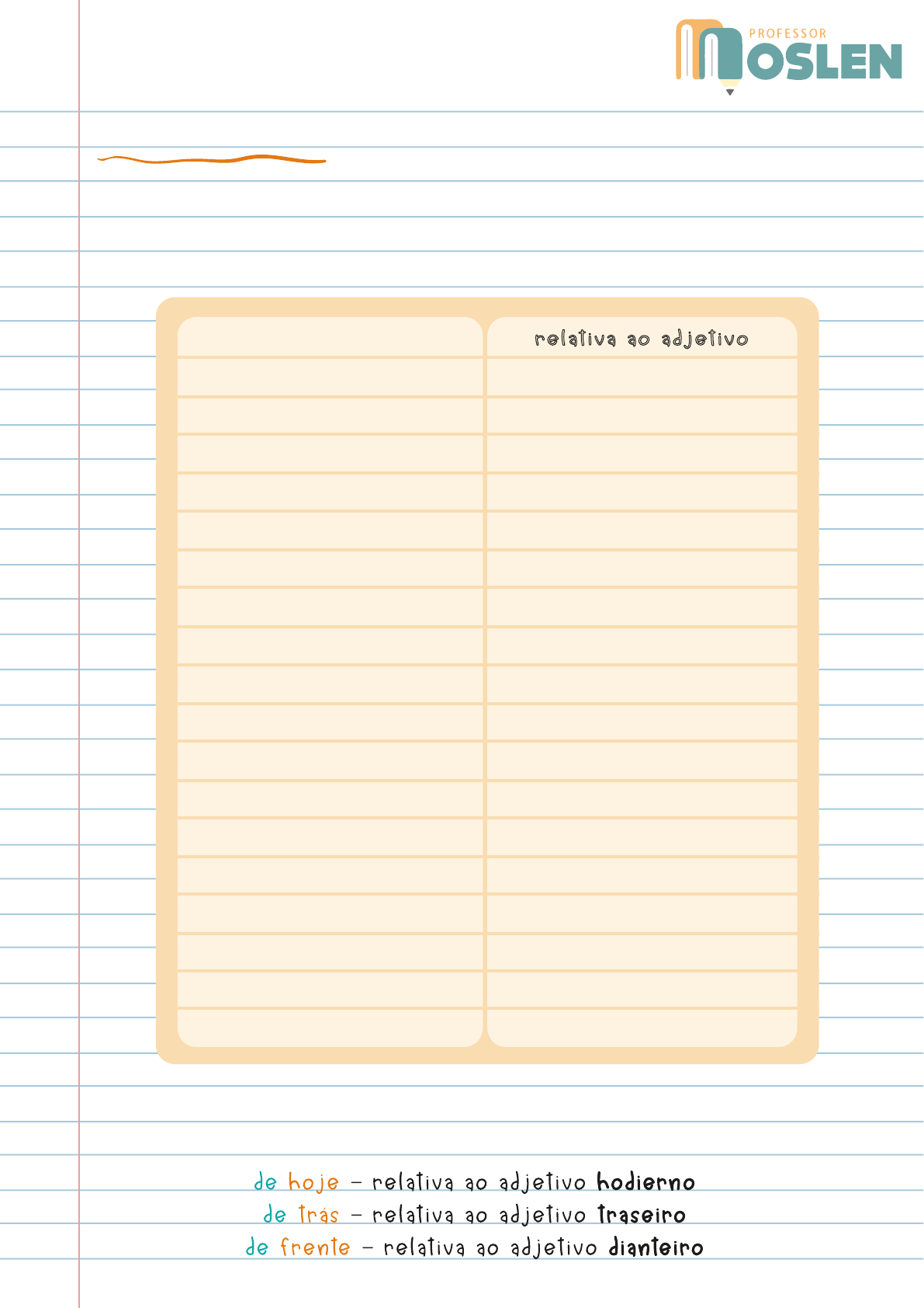 Locução adjetiva Locução adjetiva é um conjunto de duas ou mais palavras que, juntas , atuam como um adjetivo, caracterizando um substantivo. Maioritariamente, são formadas por preposição + substantivo. Algumas locuções adjetivas podem ser formadas por preposição + advérbio. preposição + substantivo de + criança de + pai de + mãe de + morte de + ano de + governo de + decoração de + abelha de + abóbora de + fábrica de + abutre de + açúcar de + águia de + aluno de + professor da + chuva do + rio do + la go relativa ao adjetivo infanti l paterno materno mortal anual governamental decorativo apícola cucurbitáceo fabril vulturino sacarino aquil ino discente docente pluvial fluvial lacustre