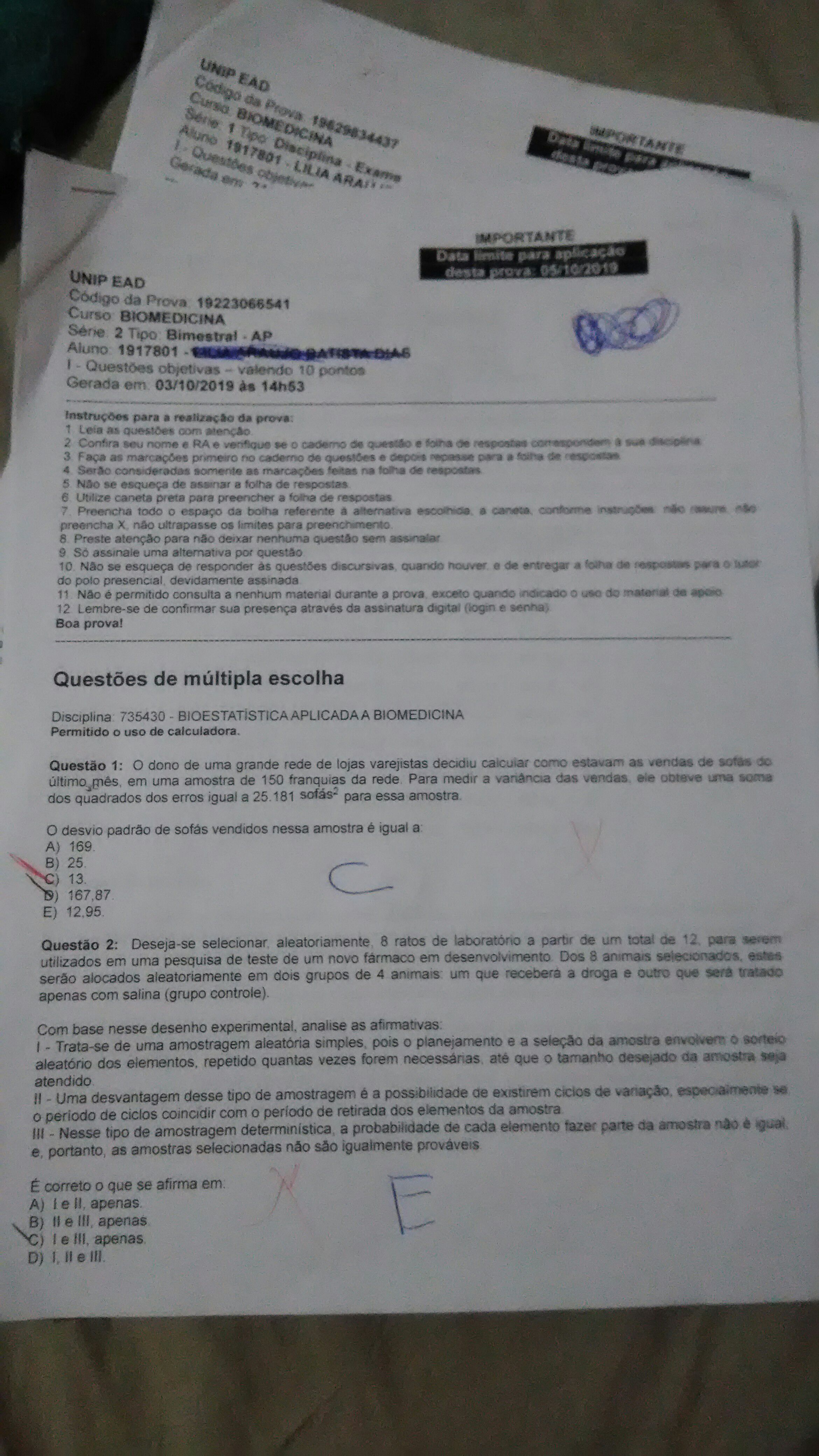 O dono de uma grande rede de lojas varejistas decidiu calcular como estavam as vendas de sofás no último mês em uma amostra de 150 franquias da rede. Para medir a variância das vendas, ele obteve dos quadrados dos erros igual a 25.18 sofás² para essa amostra. O desvio padrão de sofás vendidos nessa amostra é igual a: A) 169 B) 25 C) 13 D) 167,87 E) 12.95
