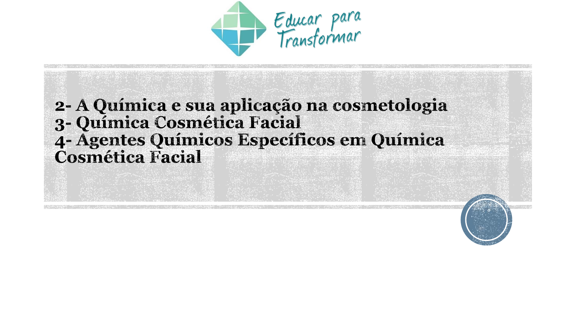 A pele é a interface dinâmica que separa nossos fluidos, células, órgãos e sistemas biológicos do meio exterior, exercendo função protetora, regulatória, sensitiva e metabólica. Os efeitos deletérios podem estar associados aos fatores endógenos, tais como doenças ou a deficiência de nutrientes, ou ainda exógenos, incluindo os agentes biológicos, substâncias químicas agressivas, radiações eletromagnéticas, entre outros. Seja qual for o efeito causador do distúrbio na pele, o importante é que o organismo esteja saudável o suficiente para promover o reparo utilizando seu próprio maquinário bioquímico. Porém, em casos onde isso não é possível, recorrer à cosmetologia pode ser a alternativa mais viável ▪ Os principais tipos de produtos voltados para este mercado atuam como protetores solares, hidratantes corporais e preparações capazes de reparar ou retardar o envelhecimento celular. ▪ A pele é composta por camadas distintas que possuem funções variadas na manutenção da homeostasia. A camada mais externa da pele é chamada de estrato córneo, e é composta por 3 a 5 camadas de células, que permanecem em constante renovação através da sua descamação (Figura). Nessa região, as substâncias de maior ocorrência são os lipídeos e as proteínas. ▪ Mais do que qualquer outro tecido, a pele é exposta a inúmeros agentes químicos, físicos e microbiológicos, muitos dos quais induzem a formação de espécies reativas de oxigênio (ERO) e de nitrogênio (ERN). ▪ Os compostos utilizados com esse objetivo de combater as espécies reativas são chamados de antioxidantes, e têm como principais representantes as vitaminas C (ácido ascórbico) e E (α-tocoferol), alguns compostos fenólicos (quercetina, resveratrol e ácido cafeico) e os carotenoides (licopeno, β-caroteno e luteína). Em sua maioria, são compostos de origem vegetal. ▪ Fornecimento de precursores biológicos; ▪ Catálise de reações vitais; ▪ Minimização de radicais livres; ▪ Manutenção do teor de água; ▪ Formação de filmes protetores; ▪ Reestruturação de estruturas danificadas; ▪ Lubrificação adequada dos tecidos; ▪ São produtos que servem para higienização, manutenção, proteção e decoração da pele, que se apresentam livres de patologias. ▪ b) São formulações de aplicação local, baseados em conceitos científicos, destinados à manutenção e ao melhoramento da pele humana e dos seus anexos, sem interferência nas funções vitais, sem irritar, sensibilizar ou provocar fenômenos secundários indesejáveis. ▪ c) O conceito de cosmético como produto de tratamento de beleza é compreendido de uma forma cada vez mais abrangente, através do uso de ativos cada vez mais eficazes, resultando na moderna cosmecêutica, a cosmética terapêutica. ▪ d) Devemos ter sempre em mente o conceito de que “beleza vem de dentro para fora” e que um produto cosmético só vai ser efetivamente um produto de beleza em um organismo saudável e equilibrado ▪ Os grupos de produtos estão enquadrados em quatro categorias e classificados quanto ao grau de risco (Resolução RDC nº 79, de 28 de agosto de 2000) a que oferecem dados a sua finalidade de uso, para fins de análise técnica, quanto do seu pedido de registro, a saber: ▪ Categoria ▪ Grau de risco ▪ Produto de Higiene ▪ Cosmético ▪ Perfume ▪ Produto de Uso Infantil ▪ Grau 1 - Produtos com risco mínimo, ou seja, são produtos de higiene pessoal, cosméticos e perfumes cuja formulação se caracteriza por possuírem propriedades básicas ou elementares, cuja comprovação não seja inicialmente necessária e não requeiram informações detalhadas quanto ao seu modo de usar e suas restrições de uso, devido às características intrínsecas do produto. ▪ Grau 2 - Produtos com risco potencial, ou seja, são produtos de higiene pessoal, cosméticos e perfumes cuja formulação possui indicações específicas, cujas características exigem comprovação de segurança e/ou eficácia, bem como informações e cuidados, modo e restrições de uso. ▪ Creme – é uma preparação semi- sólida de consistência fluida e de aspecto macroscópico homogêneo, porém quimicamente falando é heterogêneo. Cremes são obtidos pela mistura de substâncias de caráter oleoso (apolar) e aquoso (polar), as quais são imiscíveis (não se misturam) sem o auxílio de outros compostos. Quimicamente, essa mistura torna-se possível com a utilização de compostos tensoativos ou surfactantes. ▪ Loção – é uma forma farmacêutica conhecida também como suspensão de uso tópico, e normalmente tem aparência de um líquido leitoso. ▪ é também um produto semi-sólido, que pode tanto possuir características oleosas quanto aquosas. ▪ Géis hidrofílicos são muito utilizados em preparações pós-barba, enquanto géis hidrofóbicos são comuns na formulação de filtros e protetores solares. ▪ as formulações cosméticas utilizam esta forma farmacêutica em certos casos e por dois motivos principais. Primeiro, por serem muito compatíveis com várias vitaminas que possuem caráter apolar; segundo, pelo seu tempo prolongado de permanência sobre a pele, pois sua remoção é mais difícil. VEÍCULOS ▪ É o componente que geralmente aparece em maior quantidade na fórmula e que tem a função de receber os outros componentes, isto é, nele são incorporadas estas outras substâncias. ▪ Devem ter grande capacidade de solubilização ou de dispersão, conforme o caso. A escolha do tipo de veículo deve se basear na compatibilidade com os outros componentes e também no tipo de pele a que se destina o produto. Podem ser: água, álcool, mistura hidroalcoólica, óleo, glicerina, loções base, cremes base. VEÍCULOS ▪ Quando falamos de veículos vetoriais, falamos de tecnologia, são os lipossomas, nanosferas e silanóis. Eles são capazes de carrear o principio ativo até as camadas
