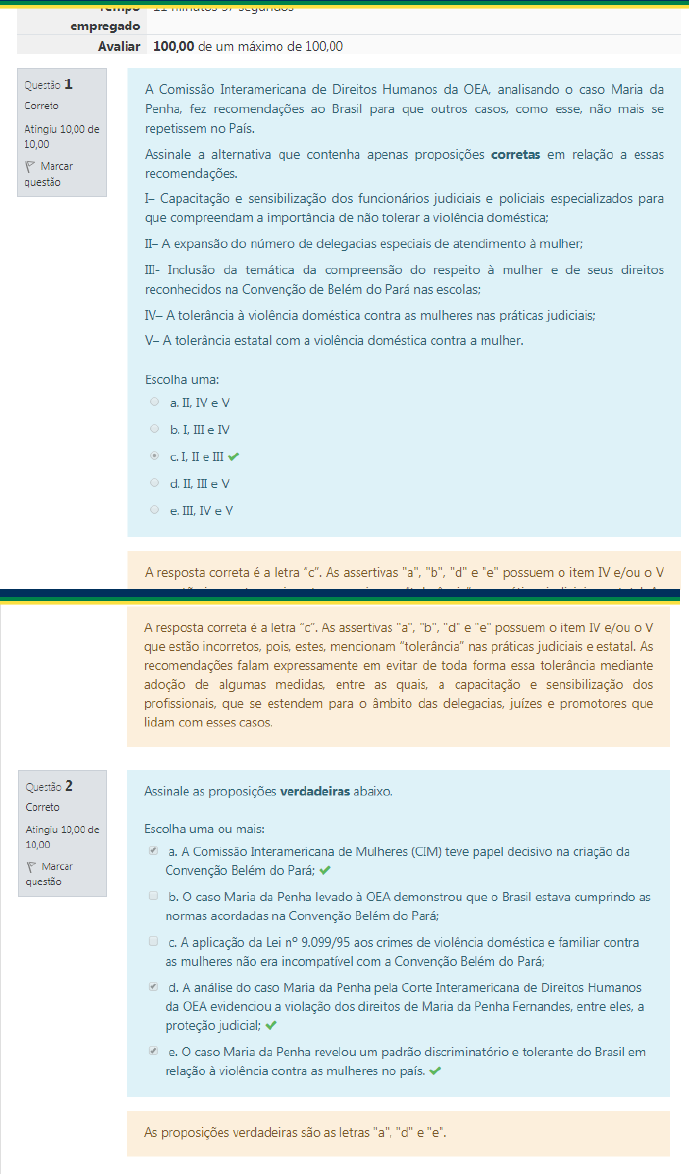 Saberes - Senado online - Gabarito - Maria da Penha - Modulo II Teste Fixação