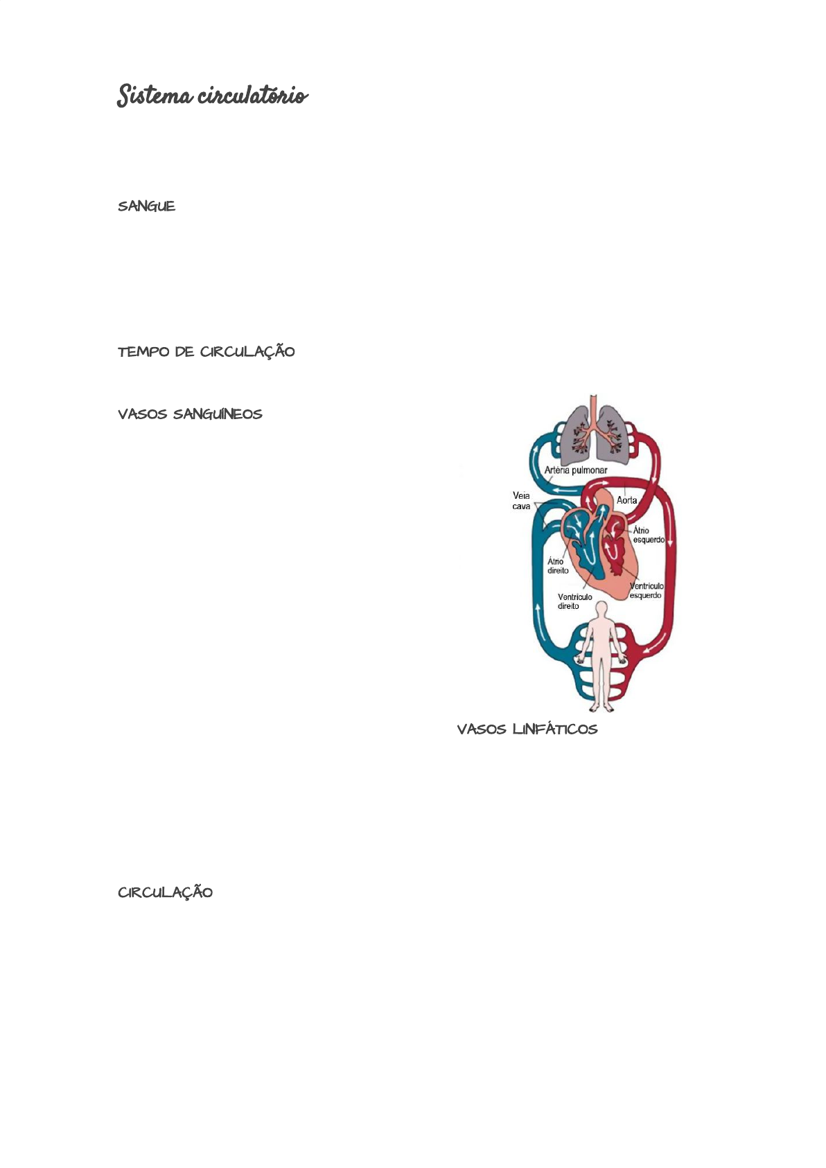 Sistema circulatório Compreende o coração, vasos sanguíneos (artérias, capilares e veias) e linfáticos, sendo o coração a bomba muscular. SANGUE Transporte oxigênio e moléculas para realizar o metabolismo celular para tecidos, e na volta transporta produtos celulares dos tecidos para o fígado, rins e pulmão, para o seu metabolismo e excreção. TEMPO DE CIRCULAÇÃO Varia de acordo com o tamanho do animal e com o sistema endócrino. VASOS SANGUÍNEOS - Artérias que transportam o sangue a partir do coração - Arteríolas que são ramificações das artérias - Capilares que vem das arteríolas e permitem a passagem de células e nutrientes para os tecidos e desembocam nas vênulas - Vênulas que se tornam veias e retornam o sangue para o coração Os vasos sanguíneos estão dispostos como dois circuitos de fluxo sanguíneo, A condução sistêmica é maior e conduz sangue oxigenado do coração para os demais órgãos do corpo e transporta o sangue desoxigenado para o coração. A circulação pulmonar é menor e transporta o sangue desoxigenado do coração para os pulmões, onde ele é oxigenado e devolvido ao coração. CIRCULAÇÃO Início no átrio esquerdo, o sangue oxigenado passa para o ventrículo esquerdo. A contração do VE envia o sangue para a aorta., de onde emergem artérias, arteríolas e leitos capilares de diferentes órgãos por onde circula o sangue. A partir dos leitos capilares, o sangue desoxigenado é coletado por vênulas menores que se tornam veias e desembocam nas veias cava cranial e caudal, que conduzem o sangue para o átrio direito. Do átrio direito, o sangue passa para o ventrículo direito, de onde segue para o tronco pulmonar e para as artérias pulmonares, que conduzem o sangue desoxigenado para os alvéolos pulmonares para ocorrer a troca gasosa. As veias pulmonares transportam o sangue oxigenado de volta para o átrio esquerdo, onde o ciclo recomeça. VASOS LINFÁTICOS Formam um sistema de drenagem que retorna uma fração importante do fluido dos tecidos do interstício para o sangue. A drenagem linfática se inicia com os capilares linfáticos de terminação cega, que formam plexos extensos e se espalham pelos tecidos, sendo responsáveis por coletar líquido intersticial. Os vasos maiores se originam desses plexos e convergem em alguns troncos maiores que se esvaziam nas veias principais dentro do tórax. O segundo componente do sistema linfático é o tecido linfóide, por onde passa a linfa. CORAÇÃO É o órgão central do sistema circulatório, composto pelo músculo cardíaco (miocárdio), que forma quatro câmaras: átrios e ventrículos direito e esquerdo. O coração é dividido pelo pericárdio e forma parte do mediastino (separa duas cavidades pleurais) PERICÁRDIO É a cobertura fibrosserosa do coração, seu lúmen é a cavidade pericárdica, que se reduz a uma fenda capilar. Essa fenda contém uma pequena quantidade de líquido pericárdico, que facilita o movimento e diminui o atrito do coração. Se divide em parte fibrosa central e parte serosa interna e externa, e se subdivide em: - Pleura pericárdica - Pericárdio fibroso - Pericárdio seroso Estruturas do pericárdio - Seio transverso do pericárdio: fenda em forma de U entre os lados direito e esquerdo da cavidade pericárdica. - Seio oblíquo do pericárdio: invaginação formada pelo retorno de duas camadas do pericárdio seroso entre as grandes veias. - Camada parietal do pericárdio seroso: se fusiona ao pericárdio fibroso. - Ligamento esternopericárdico: fixa o pericárdio fibroso ao esterno - Ligamento frenopericárdico: presente apenas no cão, une o pericárdio fibroso ao diafragma POSIÇÃO E TAMANHO DO CORAÇÃO Se situa no mediastino, sua maior parte está à esquerda do plano mediano, se prolonga entre a terceira e sétima costela. Grande parte da superfície é coberta pelo pulmão na incisura cardíaca e caudalmente, se projeta até o diafragma. FORMA E TOPOGRAFIA Sua base se volta dorsalmente e seu ápice se volta ventralmente, próximo ao esterno. A base do coração é o hilo do órgão, por onde as veias penetram e as artérias deixam o coração. - 2 faces: lateral direita e lateral esquerda, as quais se encontram cranialmente na margem ventricular direita e caudalmente na margem ventricular esquerda - As aurículas dos átrios são visíveis no lado esquerdo, envolvendo a raiz da aorta e o tronco pulmonar - A parte principal dos átrios e grandes veias se localizam no lado direito As divisões internas do coração são visíveis a partir dos sulcos - Sulco interventricular subsinuoso: marca a face direita do coração, se prolonga desde o sulco coronário ao ápice - Sulco interventricular paraconal: marca a face esquerda do coração a partir do sulco coronário até o terço distal da margem cranial - Sulco coronário: marca a separação dos átrios e ventrículos COMPARTIMENTOS DO CORAÇÃO É dividido internamente por um septo interventricular longitudinal dos lados direito e esquerdo, cada lado é dividido por um septo transverso nos átrios e ventrículos ÁTRIO DIREITO Forma a parte direita da base do coração, recebe sangue das veias cava cranial e caudal e do seio coronário. Se divide em seio das veias cavas e uma parte de terminação cega, a aurícula do átrio direito e se separa do AE pelo septo interatrial. O tubérculo intervenoso é uma crista entre as aberturas das duas veias cavas, projeta-se para o interior do AD e direciona o sangue pelo óstio atrioventricular. direito ÁTRIO ESQUERDO Forma a parte esquerda dorsocaudal da base do coração, recebe o sangue oxigenado das veias pulmonares e se assemelha ao AD quando a sua forma e estrutura. Se abre para o VE pelo óstio atrioventricular esquerdo. VENTRÍCULO DIREITO Possui formato de meia lua e não se prolonga até o ápice do coração. Recebe o sangue desoxigenado do AD e bombeia através do cone arterial para o tronco pulmonar. No óstio atrioventricular direito