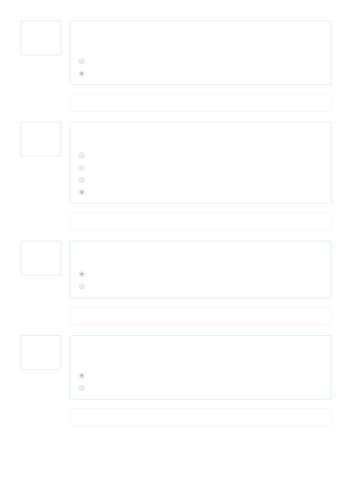 06/02/2020 Questionário Módulo 03-NR10SEP https://www.certificacaotecnica.com.br/mod/quiz/review.php?attempt=759734 1/3 Questão 1 Completo Atingiu 1,00 de 1,00 Questão 2 Completo Atingiu 1,00 de 1,00 Questão 3 Completo Atingiu 1,00 de 1,00 Questão 4 Completo Atingiu 1,00 de 1,00 As consequências da liderança autoritária estão relacionadas com uma ausência de espontaneidade e de iniciativa por parte dos liderados. Escolha uma: a. Falso b. Verdadeiro A resposta correta é: Verdadeiro. É a forma mais profunda de se compreender outra pessoa: Escolha uma: a. Caráter b. Nenhuma das Alternativas c. Confiança d. Empatia A resposta correta é: Empatia. Existe a possibilidade de um estresse vir a se tornar benéfico? Escolha uma: a. Sim b. Não A resposta correta é: Sim. O alto número de vezes que um profissional executou um determinado serviço, pode prejudicar as medidas de segurança? Escolha uma: a. Sim b. Não A resposta correta é: Sim. 06/02/2020 Questionário Módulo 03-NR10SEP https://www.certificacaotecnica.com.br/mod/quiz/review.php?attempt=759734 2/3 Questão 5 Completo Atingiu 1,00 de 1,00 Questão 6 Completo Atingiu 1,00 de 1,00 Questão 7 Completo Atingiu 1,00 de 1,00 Questão 8 Completo Atingiu 1,00 de 1,00 O líder autoritário fixa diretrizes sem a participação do grupo, determina as técnicas para a execução das tarefas. É também ele que designa qual a tarefa de cada um dos subordinados. Escolha uma: a. Verdadeiro b. Falso A resposta correta é: Verdadeiro. O líder que não se impõe ao grupo e consequentemente não é respeitado, é característica da liderança: Escolha uma: a. Autoritária b. Democrática c. Nenhuma das Alternativas d. Liberal A resposta correta é: Liberal. O que representa um clima de cooperação? Escolha uma: a. Significa coloca-se no lugar da outra pessoa. b. Significa confiança nos liderados. c. Nenhuma das Alternativas d. É uma cooperação de pontos de vistas de pessoas diferentes. A resposta correta é: É uma cooperação de pontos de vistas de pessoas diferentes.. Quais são os tipos de lideranças que existem: Escolha uma: a. Nenhuma das Alternativas b. Autoritária, liberal e democrática. c. Liberal, social e democrática. d. Social, pessoal e passiva. A resposta correta é: Autoritária, liberal e democrática.. 06/02/2020 Questionário Módulo 03-NR10SEP https://www.certificacaotecnica.com.br/mod/quiz/review.php?attempt=759734 3/3 Questão 9 Completo Atingiu 1,00 de 1,00 Questão 10 Completo Atingiu 1,00 de 1,00 São causas geradoras de mau humor nos funcionários: Escolha uma: a. Briga familiar e cobranças no trabalho b. Trabalho noturno c. Nenhuma das Alternativas d. Empatias por partes dos colegas A resposta correta é: Briga familiar e cobranças no trabalho. Uma pessoa insegura irá optar, defensivamente, por um estilo que a proteja, por exemplo, o autoritário, que não permite que a questionem. Escolha uma: a. Falso b. Verdadeiro A resposta correta é: Verdadeiro.