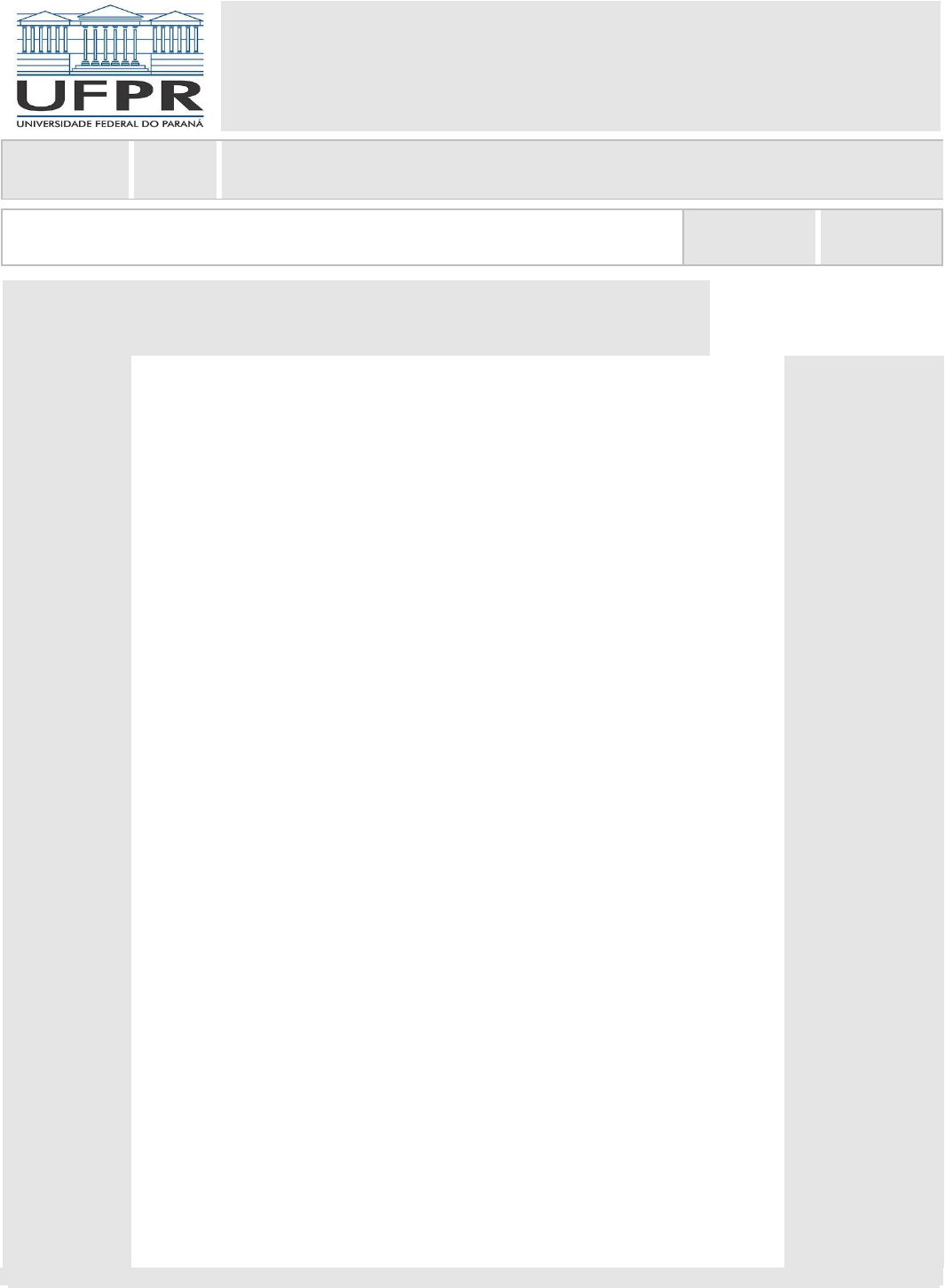 PROCESSO SELETIVO 2020 Edital 62/2019 - NC – Prova: 25/11/2019 INSCRIÇÃO TURMA NOME DO CANDIDATO ASSINO DECLARANDO QUE LI E COMPREENDI AS INSTRUÇÕES ABAIXO: CÓDIGO ORDEM C o n h e c im e n to s E s p e c íf ic o s INSTRUÇÕES 1. Confira, acima, o seu número de inscrição, turma e nome. Assine no local indicado. 2. Aguarde autorização para abrir o caderno de prova. Antes de iniciar a resolução das questões, confira a numeração de todas as páginas. 3. A prova desta fase é composta de 7 questões discursivas de Biologia. 4. As questões deverão ser resolvidas no caderno de prova e transcritas na folha de versão definitiva, que será distribuída pelo aplicador de prova no momento oportuno. 5. A interpretação das questões é parte do processo de avaliação, não sendo permitidas perguntas aos aplicadores de prova. 6. Ao receber a folha de versão definitiva, examine-a e verifique se o nome impresso nela corresponde ao seu. Caso haja qualquer irregularidade, comunique-a imediatamente ao aplicador de prova. 7. As respostas das questões devem ser transcritas NA ÍNTEGRA na folha de versão definitiva, com caneta preta. Serão consideradas para correção apenas as respostas que constem na folha de versão definitiva. 8. Não será permitido ao candidato: a) Manter em seu poder relógios e qualquer tipo de aparelho eletrônico ou objeto identificável pelo detector de metais. Tais aparelhos deverão ser DESLIGADOS e colocados OBRIGATORIAMENTE dentro do saco plástico, que deverá ser acomodado embaixo da carteira ou no chão. É vedado também o porte de armas. b) Usar boné, gorro, chapéu ou quaisquer outros acessórios que cubram as orelhas, ressalvado o disposto no item 4.6.3 do Edital. c) Usar fone ou qualquer outro dispositivo no ouvido. O uso de tais dispositivos somente será permitido quando indicado para o atendimento especial. d) Levar líquidos, exceto se a garrafa for transparente e sem rótulo. e) Comunicar-se com outro candidato, usar calculadora e dispositivos similares, livros, anotações, réguas de cálculo, impressos ou qualquer outro material de consulta. f) Portar carteira de documentos/dinheiro ou similares. g) Usar óculos escuros, exceto quando autorizado por meio de solicitação de Atendimento Especial. h) Emprestar ou tomar emprestados materiais para a realização das provas. i) Fazer anotação de informações relativas às suas respostas (copiar gabarito) fora dos meios permitidos. Caso alguma dessas exigências seja descumprida, o candidato será excluído deste processo seletivo. 9. Será ainda excluído deste Processo Seletivo o candidato que: a) Lançar mão de meios ilícitos para executar as provas. b) Ausentar-se da sala de provas portando a Folha de Versão Definitiva e/ou o Caderno de Questões, conforme os itens 7.15 e 7.17.b do Edital. c) Ausentar-se da sala de provas sem o acompanhamento do fiscal, conforme estabelecido no item 7.12 do edital, sair antes do tempo mínimo de permanência estabelecido no item 7.15 ou ainda não permanecer na sala conforme estabelecido no item 7.16 do Edital. d) Perturbar, de qualquer modo, a ordem dos trabalhos e/ou agir com descortesia em relação a qualquer dos examinadores, executores e seus auxiliares, ou autoridades presentes. e) Não cumprir as instruções contidas no Caderno de Questões da prova e na Folha de Versão Definitiva. f) Não permitir a coleta de sua assinatura. g) Não se submeter ao sistema de identificação por digital e detecção de metal. 10. Ao concluir a prova, permaneça em seu lugar e comunique ao aplicador de prova. Aguarde autorização para entregar o Caderno de Questões da prova e a Folha de Versão Definitiva. 11. Avalie a aplicação da prova: acesse www.nc.ufpr.br até 09/01/2020 e contribua para a melhoria da qualidade da prova. B io lo g ia DURAÇÃO DESTA PROVA: 2 horas e 30 minutos. 2/5 3/5 RA SC UN HO RA SC UN HO RA SC UN HO RA SC UN HO RA SC UN HO 01 - Valor: 5 pontos Uma das metas dos Objetivos do Desenvolvimento Sustentável proposto pela ONU é a erradicação, até 2030, de epidemias de AIDS, tuberculose, malária e doenças tropicais negligenciadas. Na tabela abaixo, são apresentados dados de três países do relatório estatístico anual de 2018 da Organização Mundial de Saúde sobre a malária: País Incidência / 1.000 habitantes Argentina 0,0 Brasil 6,7 Colômbia 17,2 a) Elabore uma hipótese que possa explicar as diferenças nos valores de incidência da doença entre os países apresentados, considerando a forma de transmissão. b) Que atitude governamental deve ser tomada para diminuir o número de casos? 02 - Valor: 5 pontos Mamíferos e aves são animais homeotermos, possuem sistema circulatório com coração de quatro cavidades e circulação completa (sem mistura de sangue arterial e venoso). De que maneira esse tipo de sistema circulatório contribui para a homeotermia desses animais? 03 - Valor: 6 pontos A pele é revestida por um tecido epitelial estratificado queratinizado, que é uma excelente barreira contra a invasão de patógenos, como bactérias. Por que esse tipo de epitélio não ocorre na superfície do intestino delgado, por onde passa o bolo alimentar? 04 - Valor: 6 pontos O uso de vacinas e de soro antiofídico é importante para a Saúde Pública. Ambos relacionam-se com o sistema imunológico dos pacientes. a) Caracterize a prevenção da contaminação por agentes infecciosos quanto ao tipo de imunização, à molécula efetora produzida pelo organismo que recebeu a vacina e à substância presente na vacina. Limite máximo Limite máximo Limite máximo Limite máximo Limite máximo 4/5 RA SC UN HO RA SC UN HO RA SC UN HO RA SC UN HO b) Em relação à produção de soro antiofídico, caracterize o tipo de imunização, a molécula efetora produzida pelo organismo do cavalo e a substância presente no veneno da cobra. 05 - Valor: 6 pontos Várias espécies de borboletas depositam seus ovos sobre as folhas de m