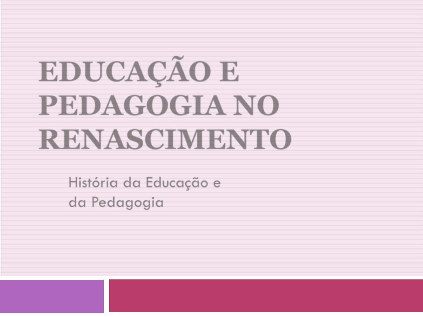 EDUCAÇÃO E PEDAGOGIA NO RENASCIMENTO História da Educação e da Pedagogia História da Educação e daPedagogia Contexto Histórico Ascensão da burguesia: Burgueses: antigos servos libertos Desenvolvimento das atividades artesanais e comerciais (revolução comercial do séc. XVI) Aliança entre burguesia e reis, em oposição à nobreza: consolidação de Estados nacionais Invenções e viagens ultramarinas (ampliação dos negócios): pólvora, papel, imprensa, bússola... Contexto Histórico Humanismo: Idade média como “idade das trevas” Retorno à cultura greco-latina sem interpretações Formação do homem mundano, o gentil-homem Questões do cotidiano, observação direta dos fatos, curiosidade Desenvolvimento da medicina (dissecação), astronomia (Copérnico), pintura (projeção)... Busca pela individualidade e crença na razão Contexto Histórico Reforma Protestante: Luteranismo, Calvinismo, Anglicanismo Crítica à estrutura autoritária da Igreja Atende a interesses políticos nacionalistas, de natureza econômica Contraria restrições aos negócios e condenção de empréstimo a juros Recebe, assim, apoio da burguesia Também apoio de nobres (pelo confisco dos bens do Clero) Contexto Histórico Contrarreforma: Reação da Igreja Católica à expansão da crença protestante Tinha como objetivo recuperar o poder perdido através da conversão dos infiéis (catequisação) Concílio de Trento reafirma supremacia do Papa e estimula criação de seminários Inquisição torna-se mais atuante, principalmente na Espanha e em Portugal Educação no Renascimento Educação de nobres e burgueses: Alta nobreza: preceptores, nos castelos Pequena nobreza e burguesia: colégios, preparação administração política e dos negócios Segmentos populares: aprendizagem de ofícios Surgimento dos colégios: Organização em séries, severas disciplinas (o nascimento da escola tradicional) Universidades: Não abertas às novidades Na universidade de Paris a Faculdade de Artes torna-se propedeutica, sendo semente do curso colegial Educação no Renascimento Educação leiga: Algumas iniciativas particulares adaptadas ao humanismo Alemanha, Franças, Países Baixos, Inglaterra e Itália Vittorino Feltre: fundou a Casa Giocosa, educação mais alegre, cultura humanística, sociabilidade... Academias: instituições privadas para suprir falhas das universidades Educação no Renascimento Educação religiosa reformada: Consulta direta ao texto bíblico Defesa da personalidade autônoma (humanismo) Trabalho pela escola para todos (pública): trabalhadores – educação primário elementar; privilegiados – ensino médio e superior Crítica aos castigos e ao verbalismo da escolástica Educação no Renascimento Educação da contrarreforma - colégio dos jesuítas (companhia de Jesus): Objetivo: propagação da fé e luta contra heréticos Influência em dois séculos de história, na Europa, Asia, África e América Uniformidade de ação: formação de professores através de manuais práticos (Ratio Studiorum) Divisão dos conteúdos: Studia inferiora: letras humanas, duração de 3 anos; filosofia e ciência, duração de 3 anos Studia superiora: teologia e ciências sagradas, 4 anos Metodologia da escola tradicional Pedagogia no Renascimento Secularização do pensamento: Bases naturais, não religiosas Não se estabeleceu na prática Vives: Tratado de ensino, atenção ao aspecto psicológico do ensino, valorização do método indutivo e experimentação, educação da mulher Erasmo: crítica à escolástica, à disciplina rigorosa Rabelais: (enciclopedista) resgate do saber greco-latinho, crítica severa à educação da época Montaigne: escreveu ensaios (subjetivos), crítica a ensino livresco e pedantismo dos falsos sábios, crítica aos castigos e à rigorosa disciplina Pedagogia no Renascimento Contrarreforma: Estudo dos clássicos adaptados às verdades da fé Visão essencialista: educação deve desenvolver potencialidades Evitar conhecimentos que pudessem levar a desvios, ao livre-pensar dos humanistas Algumas orientações religiosas não se desviaram tanto do humanismo: congregação do oratório, ordem dos franciscanos