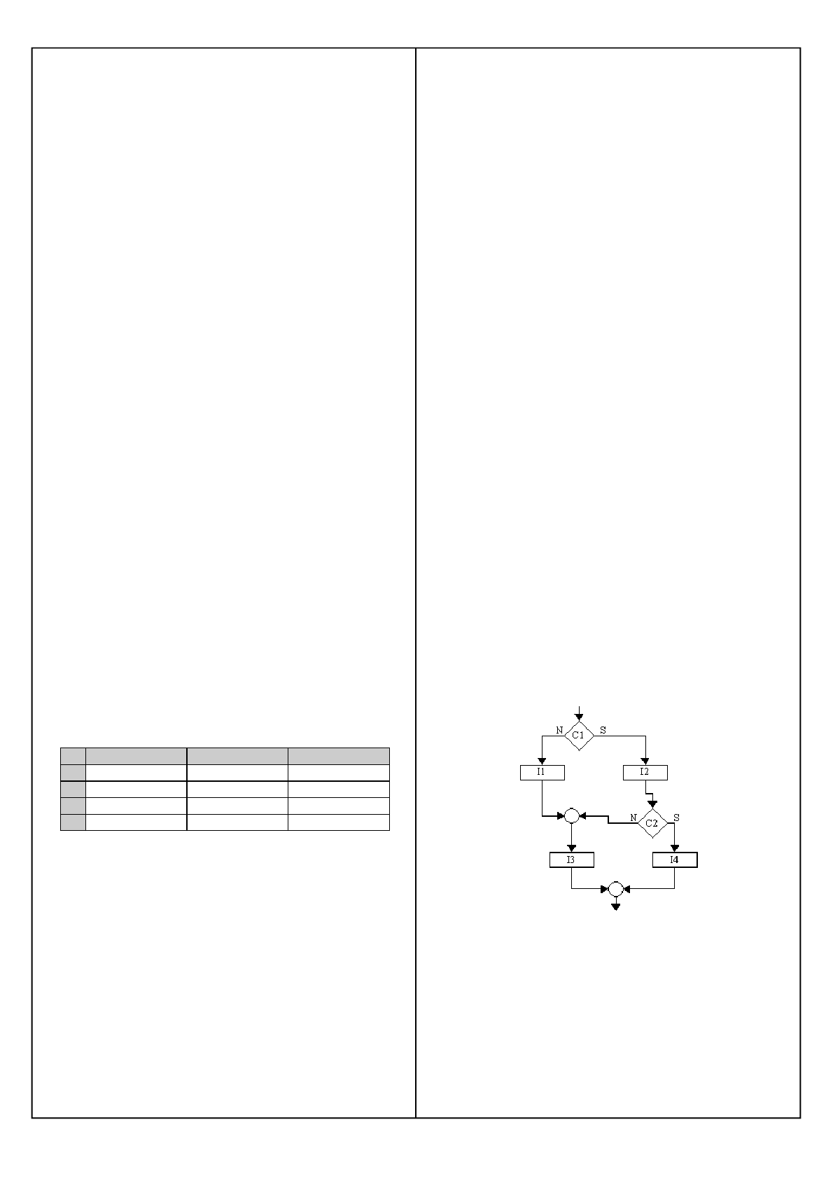 Página 8 AS QUESTÕES DE 41 A 100 REFEREM-SE À ESPECIALIDADE DE SISTEMAS DE INFORMAÇÃO 47 – Conforme Libre Office Calc 4.2, assinale o resultado correto da expressão abaixo. =(2-10/2*3+5)*MOD(3;2) a) -18 b) -8 c) 17 d) 18 46 – Quais as camadas do modelo de referência TCP/IP ? a) Apresentação, Transporte, Inter-rede e Rede b) Aplicação, Transporte, Inter-rede e Rede c) Apresentação, Transporte, Rede e Física d) Aplicação, Transporte, Rede e Física 48 – Informe se é falso (F) ou verdadeiro (V) o que se afirma sobre o diagrama de blocos abaixo. A seguir, indique a opção com a sequência correta. Considere: - C1 e C2 são condições. - I1, I2, I3 e I4 são instruções que não afetam C1 e C2. ( ) Quando C1 é verdadeira e C2 é falsa, I3 executa. ( ) Quando C1 é falsa e C2 é verdadeira, I4 executa. ( ) I2 executa independente de C1 e C2. ( ) Quando C1 é verdadeira e C2 é falsa, I1 executa. a) V – F – F – F b) V – F – F – V c) F – F – V – F d) V – V – F – V 41 – Considere que você esteja usando o LibreOffice Calc e escreveu a seguinte fórmula: =5+3*2 em uma célula da planilha. Classifique as afirmações abaixo, a respeito dessa fórmula, como verdadeira (V) ou falsa (F) e assinale em seguida a alternativa que corresponde à sequência correta. ( ) O resultado da fórmula será 16. ( ) Na fórmula, a primeira operação a ser realizada será a multiplicação. ( ) A fórmula retornará ao mesmo resultado da seguinte fórmula: =(5+3)*2. ( ) A fórmula pode ser substituída por =2*3+5 a) V – F – F – V b) F – F – V – F c) F – V – F – V d) V – F – F – V 43 – Considere que tenho uma lista de alunos em uma planilha do LibreOffice Calc e estou usando a Função “SE”. Para encontrar o Conceito desses alunos, utilizei o seguinte critério: será considerado “ruim” o conceito do aluno cuja média é inferior a 5; caso contrário, o conceito será “bom”. A B C 1 Aluno Média Conceito 2 Catarina 2 3 Maria 7 4 Ricardo 6 Assim sendo, em relação à solução desse problema, entre as assertivas abaixo, assinale qual é verdadeira (V) e qual é falsa (F); em seguida, assinale a alternativa que corresponde à sequência correta. ( ) =SE(B2>5;"ruim";"bom") apresenta o resultado correto do conceito para a aluna. ( ) o valor da função SE, para o caso do resultado do teste ser verdadeiro, vem logo após o primeiro ponto e vírgula. ( ) =SE(B3<5;"ruim";"bom") apresenta o resultado correto do conceito para a aluna. ( ) o valor da função SE para o caso do resultado do teste ser falso, vem logo após o primeiro ponto e vírgula. a) V – F – F – V b) V – V – F – V c) F – V – V – F d) F – F – V – V 44 – ___________ é um processo de cálculo matemático ou de resolução de um grupo de problemas semelhantes. a) Matriz b) Algoritmo c) Top-Down d) Operador lógico 45 – A sintaxe correta para declarar uma constante em PHP é a) $nome = "Pedro"; b) define ("nome","Pedro"); c) declare ("nome","Pedro"); d) $constante ["nome"] = "Pedro"; 42 – Marque a alternativa que descreve corretamente modelos de modem. 1 – laser 2 – óptico 3 – rádio 4 – hop-by-hop a) 1, 2 e 3 b) 1, 2 e 4 c) 1, 3 e 4 d) 2, 3 e 4 Página 9 50 – Observe o digrama de blocos abaixo e responda o significado do símbolo de número 9. a) Terminal b) Conector c) Processamento d) Entrada e saída de dados 53 – No algoritmo do programa abaixo, em português estruturado, temos as seguintes entradas para os valores das variáveis quando requisitados: N1 = 4, N2 = 7, N3 = 9 e N4 = 8. Identifique nas respostas abaixo qual será a saída do programa. programa TESTE var RESULTADO : caractere N1, N2, N3, N4 : real VALORA, VALORB : real RESPOSTA : inteiro início leia N1, N2, N3, N4 VALORA N1 + N2 + N3 + N4 VALORB VALORA / 4 se (VALORB > 7) então RESULTADO “Aprovado” senão RESULTADO “Reprovado” fim_se RESPOSTA VALORB escreva “Resultado: ” , RESULTADO, “, ”, RESPOSTA fim a) Resultado: Aprovado, 7 b) Resultado: Reprovado, 7 c) RESPOSTA: Aprovado, 8 d) RESPOSTA: Reprovado, 7 51 – Assinale a alternativa que contém o comando em PHP utilizado para selecionar o banco de dados ativo, depois de aberta a conexão com o MySQL. a) mysql_query ("select * from nome_do_banco",$id_da_conexao); b) mysql_connect ("host", "usuario", "senha"); c) mysql_select_db ("nome_do_banco"); d) mysql_close ($id_da_conexao); 52 – Ao se programar em PHP utilizando orientação a objetos, a palavra-chave final pode ser utilizada para a) informar que a classe não poderá ser instanciada. b) destruir uma instância de determinada classe. c) encerrar a declaração dos métodos da classe. d) impedir que o método seja sobrescrito. 49 – Identifique, na tabela abaixo, o tipo de operador lógico utilizado. Condição 1 Condição 2 Resultado Falsa Falsa Falso Verdadeira Falsa Falso Falsa Verdadeira Falso Verdadeira Verdadeira Verdadeiro a) .e. b) if c) .ou. d) while 54 – A Programação Orientada a Objetos (POO) define seis objetivos sobrepostos para desenvolvimento de software. Relacione a coluna da esquerda com a da direita, alinhando os objetivos com as características que explicam como a POO funciona para atender a cada um deles. 1 – Natural 2 – Confiável 3 – Reutilizável 4 – Manutenível 5 – Oportuno ( ) A natureza modular dos objetos permite fazer alterações em uma parte do programa, sem afetar outras partes. Os objetos isolam o conhecimento e a responsabilidade de onde pertencem. ( ) A programação orientada a objetos permite modelar um problema em um nível funcional e não em nível de implementação. ( ) O código orientado a objetos permite corrigir um erro em um lugar. Todos os outros objetos se beneficiarão automaticamente do aprimoramento. ( ) A programação orientada a objetos introduz a herança, para permitir que se estendam objetos existentes e o polimorfismo, para que se possa escrever código genérico. 