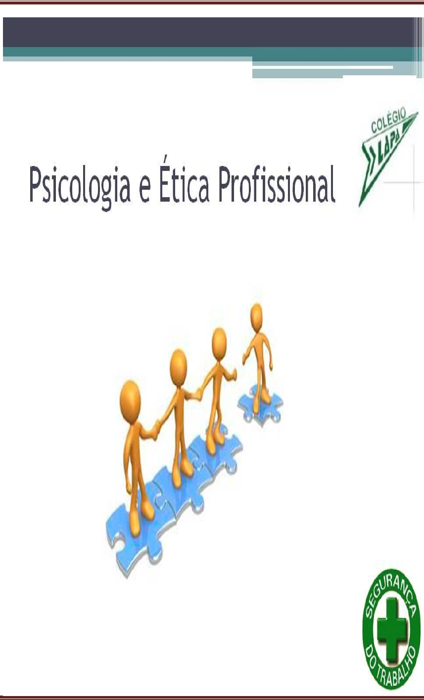 Segurança do Trabalho: Psicologia do Trabalho e Ética Profissional Colégio Lapa, Rua Guaicurus, 1467 – São Paulo – Fone: 3865-7570 / 3862-5724 Página 1 Segurança do Trabalho: Psicologia do Trabalho e Ética Profissional Colégio Lapa, Rua Guaicurus, 1467 – São Paulo – Fone: 3865-7570 / 3862-5724 Página 2 SUMÁRIO 1 INTRODUÇÃO ................................................................................................................. 4 2 PSICOLOGIA DO TRABALHO ....................................................................................... 4 2.1 Psicologia Organizacional ou das Organizações ............................................................. 4 2.2 Tarefas da Psicologia do Trabalho: ................................................................................. 4 3 SAÚDE FÍSICA ................................................................................................................. 5 4 -SAÚDE MENTAL ........................................................................................................... 5 5 COMPORTAMENTO HUMANO .................................................................................... 5 5.1 Tipos de Comportamentos: ............................................................................................. 6 6 EXERCÍCIOS DE FIXAÇÃO ........................................................................................... 6 7 GABARITO ....................................................................................................................... 7 8 PSICOLOGA DA PERSONALIDADE ............................................................................. 8 8.1 Características das Pessoas: ............................................................................................ 8 8.1. Personalidade Tipo "A": ................................................................................................. 8 8.1.2 Personalidade Tipo "B": ............................................................................................... 8 8.2 Teorias que estudam a Personalidade. ............................................................................. 9 9 ASPECTOS PSICOLÓGICOS DOS ACIDENTES DE TRABALHO ............................. 9 9.1 - Fadiga Mental: .............................................................................................................. 9 9.3 - Fadiga Mental + Fadiga Física:..................................................................................... 9 10 ÉTICA PROFISSIONAL ............................................................................................... 11 10.1 Vantagens da ética aplicada ao ambiente de trabalho: ................................................ 11 10.2 Exemplos de atitudes éticas num ambiente de trabalho: ............................................. 11 11 INDIVIDUALISMO E ÉTICA PROFISSIONAL ......................................................... 12 11.1 Definição de Individualismo ....................................................................................... 12 11 EXERCÍCIOS DE FIXAÇÃO ....................................................................................... 12 12 GABARITO ................................................................................................................... 14 13 VOCAÇÃO PARA O COLETIVO ................................................................................ 14 14 CLASSES PROFISSIONAIS ........................................................................................ 14 14.1 Definição ..................................................................................................................... 14 15 VIRTUDES PROFISSIONAIS ...................................................................................... 15 15.1 Definição de Virtude ................................................................................................... 15 15.1.1 Zelo: ......................................................................................................................... 16 15.1.2 Honestidade: ............................................................................................................. 16 15.1.4 Competência: ............................................................................................................ 16 15.1.6 Prudência: ................................................................................................................. 16 15.1.7 Coragem: .................................................................................................................. 16 15.1.8 Perseverança: ............................................................................................................ 16 Segurança do Trabalho: Psicologia do Trabalho e Ética Profissional Colégio Lapa, Rua Guaicurus, 1467 – São Paulo – Fone: 3865-7570 / 3862-5724 Página 3 15.1.9 Compreensão: ........................................................................................................... 16 15.1.10 Humildade: ............................................................................................................. 17 15.1.11 Imparcialidade: ....................................................................................................... 17 16 EXERCÍCIOS DE FIXAÇÃO ....................................................................................... 17 17 GABARITO ................................................................................................................... 18 18 DIREITOS HUMANOS ................................................................................................ 19 18.1 A Declaração Universal dos Direitos Humanos da Organização das Nações Unidas afirma que: .......................................................................................................................... 19 18.2 Quais são os direitos humanos? ..............................................