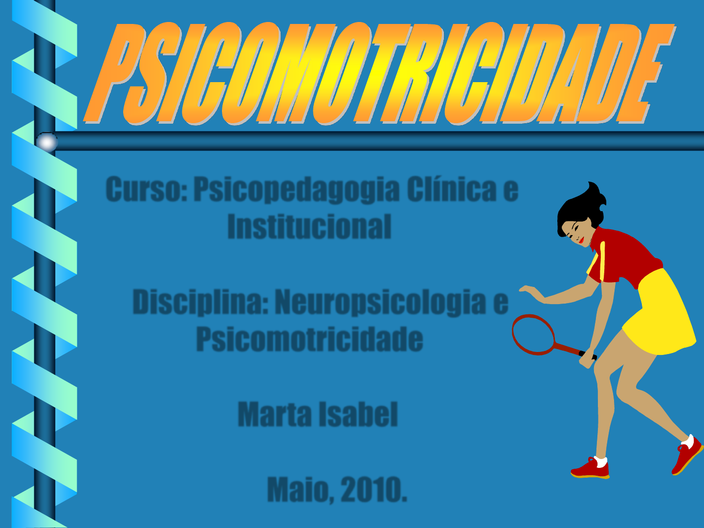 Curso: Psicopedagogia Clínica e Institucional Disciplina: Neuropsicologia e Psicomotricidade Marta Isabel Maio, 2010. PSICOMOTRICIDADE conceito “É a relação entre Motricidade e Inteligência permitindo relacionar o movimento ao afeto, à emoção, ao ambiente e os hábitos da criança”. (Wallon). “É uma terapia que, agindo por intermédio do corpo sobre as funções mentais pertubadas, considera a pessoa na sua totalidade, melhorando as qualidades de atenção, representação e relacionamento visando, pelo movimento, uma organização mental cada vez maior.” (Victor Fonseca). PSICOMOTRICIDADE conceito “É a ciência que tem como objeto de estudo o homem através do seu corpo em movimento e em relação ao seu mundo interno e externo. Está relacionada ao processo de maturação, onde o corpo é a origem das aquisições cognitivas, afetivas e orgânicas...” (SBP) PSICOMOTRICIDADE LINHAS DE ATUAÇÃO: 1.CORPORAL - trabalha desarmonia tônico - emocional, instabilidade postural e perturbações nas habilidades psicomotoras. 2.COGNITIVA - trabalha as funções cognitivas, organização perceptivas , simbólicas e conceituais. 3.EDUCATIVA - trabalha com as aprendizagens escolares 4.RELACIONAL - trabalha dificuldades de comunicação, inibição, hiperatividade, agressividade e outros. Fatores Psicomotores 7. Coordenação Motora Fina 6.Coordenação MotoraGlobal 5.Estruturação Temporal 4.Estruturação Espacial 3.Lateralidade 2.Noção Corporal 1.Equilíbrio\ Tonicidade PSICOMOTRICIDADE Aspecto básicos: CICLO EVOLUTIVO Movimento Cognição Sensação Percepção PSICOMOTRICIDADE VISA DESENVOLVER: Esquema Corporal Lateralidade Estruturação Espacial Estruturação Temporal Controle das Diversas Coordenações Equilíbrio Controle da Respiração Tônus Muscular e Outros. SISTEMA NERVOSO CENTRAL: Estruturas: Medula Tronco cerebral Cerebelo Sistema talamico Sistema Límbico. Função: Alerta, Atenção, Reflexo de Orientação. F.Psicomotor: Tonicidade Equilíbrio 1ª UNIDADE: Controle do Tônus, Vigília e regulação desse estado mental Equilíbrio Estático Dinâmico Depende das impressões periféricas: Táteis Visuais Labirínticas Cinestésicas Dificuldades no equilíbrio: -Quedas constantes MOTOR - Coordenação prejudicada - Postura inadequada e instável COMPORTAMENTO - Medo - Insegurança - Desatenção Dificuldade com postura correta(desvios,); Tensão muscular, rigidez, sincinesias, causando dificuldade na execução; Dificuldade com movimentos(falha na realização,desequilíbrio, incoordenação); Cai com facilidade,choca-se com objetos; Corre com pés afastados, corpo para frente; Impressão de desleixo ou de cansaço; Não consegue ficar quieta e estão sempre como desengonçadas. TÔNUS, POSTURA E EQUILÍBRAÇÃO: Pique pegue com comando (equilibrar em pé só...); Músicas\danças; Jogo Twister; Cobra cega, passos frente e trás); O desenvolvimento do tônus, postura e equilíbrio envolve exercícios para: fortalecimento da coordenação motora ampla. Tonus, Postura e Equilíbrio (Atividades Avaliatiava\Interventiva): Alterações de Tônus Muscular Hipotonia Hipertonia Paratonia Esquema Corporal O desenvolvimento ocorre em 02 níveis: 1) Da consciência e conhecimento das diferentes partes do corpo; 2) Do controle de si mesmo. Podemos dividir em quatro etapas desenvolvimento do esquema corporal: 1) O corpo . 2) Conhecimento das partes do corpo. 3) Orientação espaço corporal. 4) Organização espaço corporal. Esquema Corporal Uma má formação do esquema corporal acarreta: - movimentos descoordenados, - lentidão, MOTOR - postura inadequada, - falta de controle de determinadas partes do corpo - má caligrafia, - leitura expressiva não harmoniosa. A nível das relações com o mundo e o seu lado emocional: - Criança tímida e retraída, - dificuldade de se expressar, RELAÇÕES - mau humor, - dificuldade de ajuste ao meio, - criança desatenta. DIFERENCIAÇÃO DE NOMENCLATURAS 1. O conhecimento corporal abrange: imagem corporal (representação visual do corpo, impressão que o sujeito tem de si mesmo); 2. o conceito corporal (conhecimento intelectual sobre partes e funções) e o 3. esquema corporal (que regula a posição dos músculos e partes do corpo). 2/6/2010 DIP-ICHC Estruturas: -L.Occipital, -L.Temporal e -L. Parietal FUNÇÃO: -Aprendizagens precoces; -Aprendizagens pré-escolares. F.PSICOMOTOR: -Lateralidade -Noção de corpo -Estrutura Espaço- Temporal 2ª UNIDADE: Obter (Recepção), processar (análise) e armazenagem de informações (anterior) Apresenta lentidão que dificulta a realização de gestos de forma harmoniosa como abotoar roupa, andar de bicicleta, jogar bola; Problema de orientação espacial e temporal; Problema na aquisição de conceitos (exemplos: em cima, embaixo, esquerda, direita); PERTURBAÇÃO ESQUEMA CORPORAL: Dificuldade na expressão e nomeação de partes do corpo – confusão; Dificuldade na percepção da posição dos membros; Desenho da figura humana pobre; Problema de orientação espacial e temporal; PERTUBAÇÃO ESQUEMA CORPORAL: Exercicios motores; Desenho; Exercícios que possibilite identificar, reconhecer, localizar partes do corpo; Músicas (Xuxa); ESQUEMA CORPORAL (Atividades Avaliatiava\Interventiva): LATERALIDADE Dividimos o desenvolvimento da lateralidade em 4 etapas: 1) A criança não distingue nem percebe que seu corpo tem dois lados. 2) Passa a compreender que cada braço está de um lado do corpo. 3) Diferencia suas extremidades e mais tarde seus órgãos pares. 4) Sabe com precisão os dois lados e qual a dominância deles. LATERALIDADE A lateralidade é observada nos diferentes segmentos: 1) lateralidade de membros superiores 2) lateralidade de membros inferiores 3) lateralidade ocular 4) lateralidade auditiva LATERALIDADE Pode-se encontrar: - Lateralidade homogênea - Lateralidade cruzada - Ambidestreza Má formação da Lateralidade - problemas de estruturação espacial - desorgani