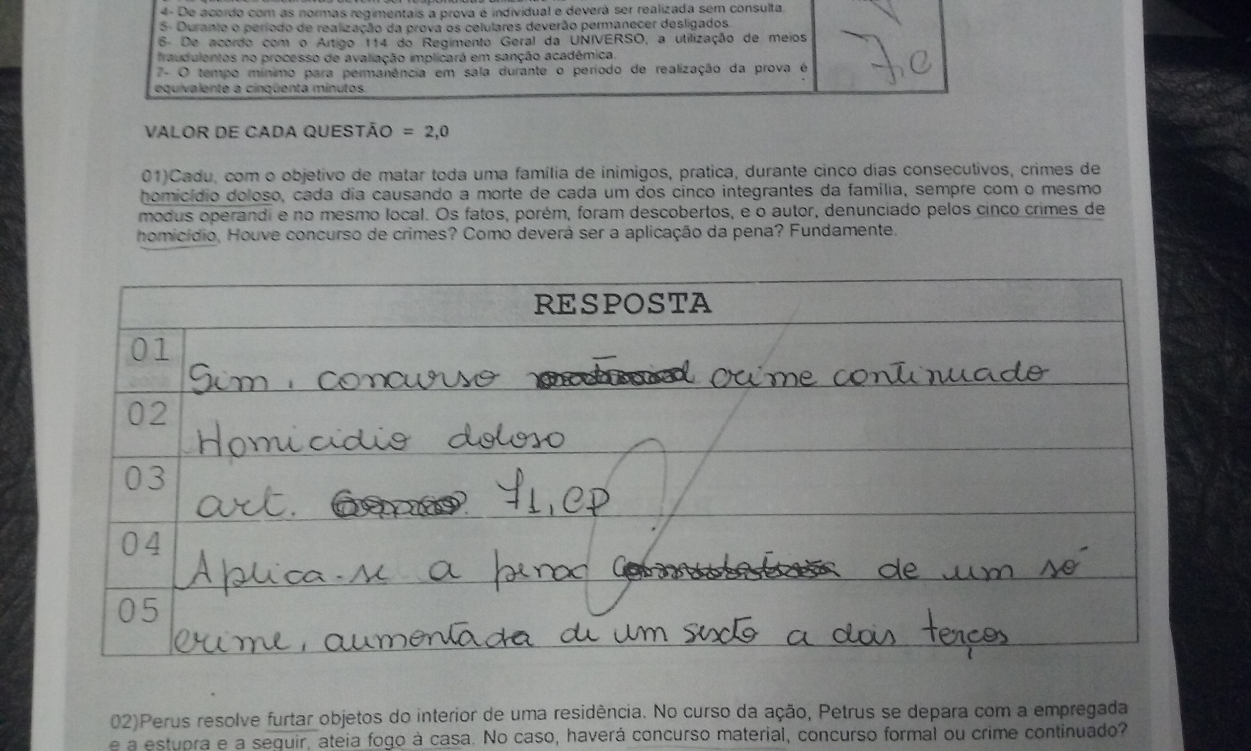 V1 DIREITO PENAL II, APLICADA EM 2019