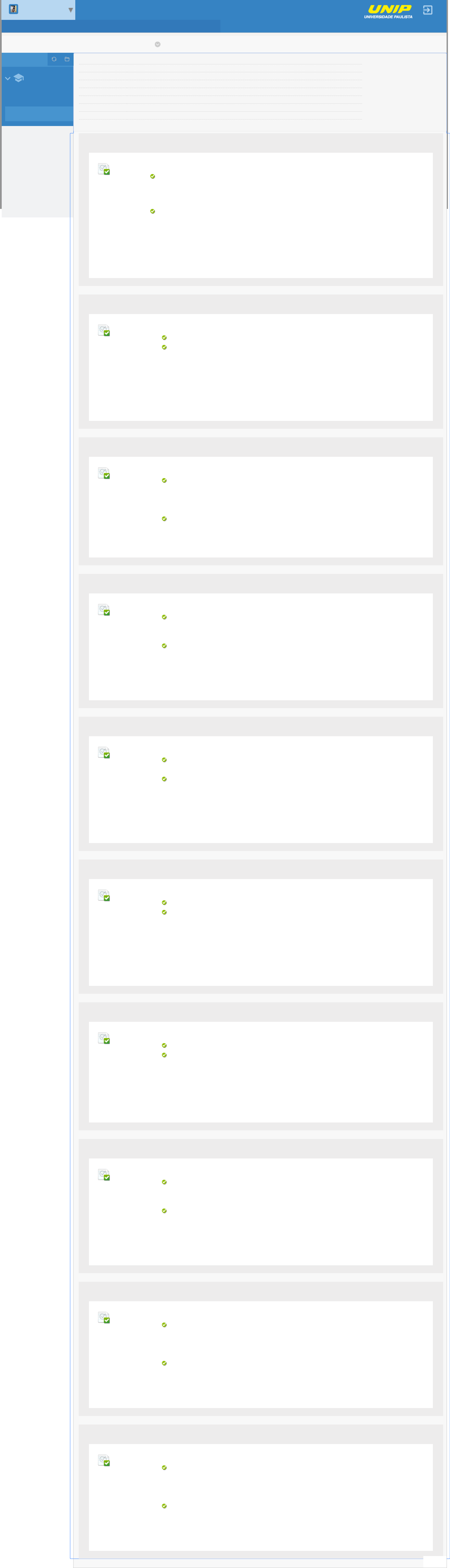Revisar envio do teste: QUESTIONÁRIO UNIDADE IIITRABALHO DE CONCLUSÃO DE CURSO 6504-60_52801_R_20201_01 CONTEÚDO TRABALHO DE CONCLUSÃO DE CURSO (6504- 60_52801_R_20201 _01) CONTEÚDO Sexta-feira, 14 de Fevereiro de 2020 15h01min46s GMT-03:00 Usuário ANGELA ALMEIDA DA SILVA Curso TRABALHO DE CONCLUSÃO DE CURSO Teste QUESTIONÁRIO UNIDADE III Iniciado 14/02/20 14:58 Enviado 14/02/20 15:01 Status Completada Resultado da tentativa 4 em 4 pontos Tempo decorrido 3 minutos Resultados exibidos Todas as respostas, Respostas enviadas, Respostas corretas, Comentários, Perguntas respondidas incorretamente Pergunta 1 Resposta Selecionada: c. Respostas: a. b. c. d. e. Feedback da resposta: A citação-autor com dois autores deve ser apresentada com: Os nomes dos autores, em letras maiúsculas separados por ponto e vírgula, com data e página entre parênteses. Os nomes dos autores, separados por “e”, com apenas a primeira letra dos nomes em caixa-alta (letra maiúscula). Os nomes dos autores, separados por vírgula, pela data e pela página entre parênteses. Os nomes dos autores, em letras maiúsculas separados por ponto e vírgula, com data e página entre parênteses. Os nomes dos autores, separados por “e”, com apenas a primeira letra dos nomes em caixa-alta (letra maiúscula), seguidos pela data e pela página entre parênteses. Todas as alternativas estão corretas. Resposta: C Comentário: os nomes dos autores, em letras maiúsculas separados por ponto e vírgula, com data e página entre parênteses. Pergunta 2 Resposta Selecionada: a. Respostas: a. b. c. d. e. Feedback da resposta: A citação-autor com um autor deve ser apresentada: No texto e, posteriormente, o nome do autor em caixa-alta (letra maiúscula), data e página, tudo entre parênteses. No texto e, posteriormente, o nome do autor em caixa-alta (letra maiúscula), data e página, tudo entre parênteses. No texto e, posteriormente, o nome do autor com data e página, tudo entre parênteses. No texto e, posteriormente, o nome do autor entre parênteses. No texto e, posteriormente, o nome do autor em caixa-alta (letra minúscula) e página. No texto e, posteriormente, o nome do autor e página com letra maiúscula entre parênteses. Resposta: A Comentário: no formato citação-autor com um autor deve ser apresentada a citação no texto e, posteriormente, o nome do autor em caixa-alta (letra maiúscula), data e página, tudo entre parênteses. Pergunta 3 Resposta Selecionada: d. Respostas: a. b. c. d. e. Feedback da resposta: A partir da introdução, para a numeração das páginas, os alunos devem usar: Algarismos sequenciais arábicos. Algarismos sequenciais romanos. Algarismos sequenciais romanos e arábicos. Algarismos a critério do aluno. Algarismos sequenciais arábicos. Algarismos romanos. Resposta: D Comentário: a partir da introdução, usar algarismos sequenciais arábicos. Pergunta 4 Resposta Selecionada: c. Respostas: a. b. c. d. e. Feedback da resposta: Citações de elementos retirados dos documentos pesquisados durante a pesquisa documenta que se revelaram úteis para: Corroborar ideias desenvolvidas pelo autor no decorrer do seu raciocínio. Rea�rmar ideias desenvolvidas pelo autor. Contribuir para a melhoria do vocabulário do aluno. Corroborar ideias desenvolvidas pelo autor no decorrer do seu raciocínio. Garantir a sintonia entre o uso da gramática e o conhecimento do autor. Todas as alternativas estão corretas. Resposta: C Comentário: “As citações são os elementos retirados dos documentos pesquisados durante a leitura da documentação e que se revelaram úteis para corroborar ideias desenvolvidas pelo autor no decorrer do seu raciocínio” (SEVERINO, 2000, p. 106). Pergunta 5 Resposta Selecionada: b. Respostas: a. b. c. d. e. Feedback da resposta: Para a citação de diversos documentos de um mesmo autor em anos diferentes, o aluno deve colocar da seguinte forma: Nome(s) em caixa-alta (letras maiúsculas), datas separadas por vírgula e ordenadas de forma crescente. Nome(s) completo(s) em letras minúsculas, datas separadas por vírgula e ordenadas de forma crescente. Nome(s) em caixa-alta (letras maiúsculas), datas separadas por vírgula e ordenadas de forma crescente. Nome(s) em caixa-alta (letras maiúsculas), datas separadas por ponto e vírgula e ordenadas de forma decrescente. Nome(s) em caixa-alta (letras maiúsculas), datas separadas por vírgula e ordenadas de forma decrescente. Todas as alternativas estão corretas. Resposta: B Comentário: a citação de diversos documentos de um mesmo autor em anos diferentes deve ser: nome(s) em caixa-alta (letras maiúsculas), datas separadas por vírgula e ordenadas de forma crescente. Pergunta 6 Resposta Selecionada: a. Respostas: a. b. c. d. e. Feedback da resposta: Para a citação de documentos com mais de um volume, deve-se colocar da seguinte forma: Nome(s) em caixa-alta (letras maiúsculas), seguido(s) por data, volume e página, todos separados por vírgula. Nome(s) em caixa-alta (letras maiúsculas), seguido(s) por data, volume e página, todos separados por vírgula. Nome(s) em caixa-alta (letras maiúsculas), seguido(s) por volume e data, todos separados por vírgula. Nome(s) em caixa-alta (letras maiúsculas), seguido(s) por volume e todos separados por ponto e vírgula. Nome(s) em caixa-alta (letras maiúsculas), seguido(s) por volume e página, todos separados por ponto e vírgula. Todas as alternativas estão corretas. Resposta: A Comentário: documentos com mais de um volume devem ser citados da seguinte forma: nome(s) em caixa-alta (letras maiúsculas), seguido(s) por data, volume e página, todos separados por vírgula. Pergunta 7 Resposta Selecionada: a. Respostas: a. b. c. d. e. Feedback da resposta: Para a numeração das páginas do TCC, a partir da folha de sumário até listas, os alunos devem usar: Algarismos romanos sequenciais no canto superior direito. Algarismos romanos sequenciais no canto superior dire