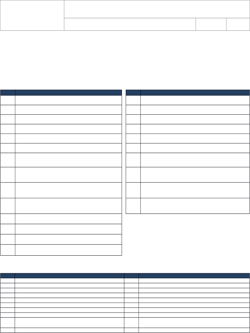 SISTEMA DE GESTÃO DA QUALIDADE PROCEDIMENTO DE EXECUÇÃO Código: PE – X.X Processo: Estaca Hélice Continua PROCEDIMENTO DE EXECUÇÃO DRENAGEM E REBAIXAMENTO DE LENÇOL Identificação: PE.RJ-2.4 Revisão: 01 1. OBJETIVO O objetivo desse procedimento é padronizar e fornecer as diretrizes básicas para execução de rebaixamento de lençol, drenagem superficial, galerias de águas pluviais e drenagem profunda, descrevendo procedimentos para execução das redes de drenagem. Este procedimento é aplicável às obras da Unidade Rio de Janeiro. 2. CONDIÇÕES PARA O INÍCIO DOS SERVIÇOS ITEM PRÉ-REQUISITOS ITEM REQUISITOS GERAIS 1 Recolhimento da ART de execução. 1 Equipamentos e ferramentas liberados para uso e calibrados, quando aplicável. 2 Terreno próximo da cota definitiva de terraplanagem. 2 Equipamentos críticos da obra com a sua manutenção periódica em dia. 3 Local limpo e sem obstruções. 3 Equipamentos operados por pessoal treinado e apto conforme normatização vigente. 4 Local demarcado e conferido pela topografia, pós demolição, se houver. 4 Projetos da obra disponíveis e na última versão. 5 Rebaixamento de lençol funcionando, se for necessário. 5 Materiais críticos inspecionados e controlados desde o recebimento até sua utilização final. 6 É recomendável que toda a terraplanagem já esteja realizada. 6 Produtos não conforme segregados e identificados, para evitar o uso não intencional. 7 Todo o material deve estar na obra a fim de se evitar ao máximo o tempo das valas abertas. 7 Resíduos gerados armazenados e destinados conforme PGRCC (Plano de Gerenciamento de Resíduos da Construção Civil). 8 Verificar se existe projeto do empreendimento está aprovado no órgão competente (RIO – ÁGUAS). 8 Análise Preliminar de Risco (APR) elaborada e assinada antes do início das atividades. 9 Caso os projetos estejam aprovados no órgão, será necessário a comunicação ao órgão e a obtenção da A.I.O (Autorização de Início de Obra) 9 Planejamento Diário de Segurança (PDS) realizado. 10 Em obras de rebaixamento de lençol freático é necessária licença específica para lançamento das águas nas galerias. 11 Os equipamentos de proteção individual e coletiva devem estar disponíveis, conforme orientações do PCMAT da obra. 11 Análise do terreno de acordo com as sondagens da área. 12 Caso necessidade de troca de material observar licença de bota fora e importação do material. 13 Análise da topografia das cotas de fundo e topo para deságue final. 14 ARTs, Licenças de operação (transportador), licenças ambientais dos materiais importados entre outros. 3. ESPECIFICAÇÃO TÉCNICA DOS MATERIAIS ITEM MATERIAL / PRODUTO ITEM MATERIAL / PRODUTO 1 Brita / Areia grossa lavada. 11 Canaletas de concreto. 2 Bidin. 12 Tela de nylon. 3 Tubo dreno PEAD corrugado. 13 Argamassa. 4 Tubo de concreto. 14 Aditivo. 5 Areia graduada. 15 Argila. 6 Tubo ranhurado de PVC ou aço. 16 Registros e conexões. 7 Mangote flexível. 17 Tubo de borracha. 8 Mangueira coletora. 18 Fios elétricos. 9 Peças pré-moldadas para sistema de coletas de águas pluviais. 19 Tampa de visita de ferro fundido conforme projeto específico. 10 Tubo PVC reforçado( Vinilfort). 20 Grelha de ferro fundido. 4. EQUIPAMENTOS E FERRAMENTAS ITEM EQUIPAMENTOS E FERRAMENTAS ITEM EQUIPAMENTOS E FERRAMENTAS ITEM EPIs MÍNIMOS 1 Nível topográfico. 8 Escovas. 1 Bota de segurança. 2 Pás. 9 Panos. 2 Capacete. 3 Enxadas. 10 Prumos de face e centro. 3 Colete refletivo. 4 Cavadeiras. 11 Réguas metálicas 4 Protetor auricular ou concha 5 Chibanca. 12 Escavadeiras e retroescavadeiras 5 Luvas de proteção. 6 Soquetes manuais. - 6 Óculos de proteção. 7 Soquetes pneumáticos ou compactadores de placa vibratória. - 7 Uniforme. 5. PARTICULARIDADE DO PROCESSO Em caso de troca de material sempre transportar com as NTR - Notas de Transporte de Resíduos (FORM-RJ.MAM-02-NTR). 6. MÉTODO EXECUTIVO 6.1. DRENAGEM ITEM PROCESSO DESCRIÇÃO DO PROCESSO ILUSTRAÇÃO 1 Obras de drenagem · Deve ser conferido o nível de projeto com o nível da rua e com o nível referenciado no projeto arquitetônico aprovado. A locação dos elementos de drenagem deverá ser executada pelo seu eixo principal. Serão utilizados gabaritos de madeira pelo seu ponto central (poço de visita) ou com base no dispositivo hidráulico principal (bocas-de–leão e/ou bocas-de-lobo, que são os pontos de captação de água). · Deverão ser demarcados no terreno os limites previstos na escavação para implantação das obras. · Deverão ser implantadas referências topográficas ao longo das obras, externamente à área de trabalho e em locais protegidos para utilização no exato posicionamento das obras nas fases seguintes. 2 Escavação de valas a céu aberto · As escavações das valas e cavas para implantação das tubulações e dispositivos associados a galerias serão executadas manualmente com o auxilio de ferramentas apropriadas ou mecanicamente por meio de retroescavadeira ou escavadeira. · A complementação da escavação será feita manualmente, sendo nesta operação realizados os serviços de regularização, nivelamento e compactação do fundo da vala, quando o solo for instável. · Para a compactação do fundo devem ser utilizados soquetes manuais ou compactadores manuais de placa vibratória e soquetes pneumáticos. · Para evitar a inundação das valas por águas superficiais, cuidados especiais deverão ser tomados no sentido de proteger as bordas das escavações como criação de valetas estrategicamente localizadas para captação das águas na crista do talude. · Seguir as recomendações da NR-18: - Prever escoramento da vala para aberturas superiores a 1,25 m de altura, ou fazer taludes nas paredes da vala se o espaço permitir; mantendo a estabilidade da região de trabalho. - Os acessos devem ser garantidos por escadas com guarda corpo laterais com patamar intermediário quando a altur