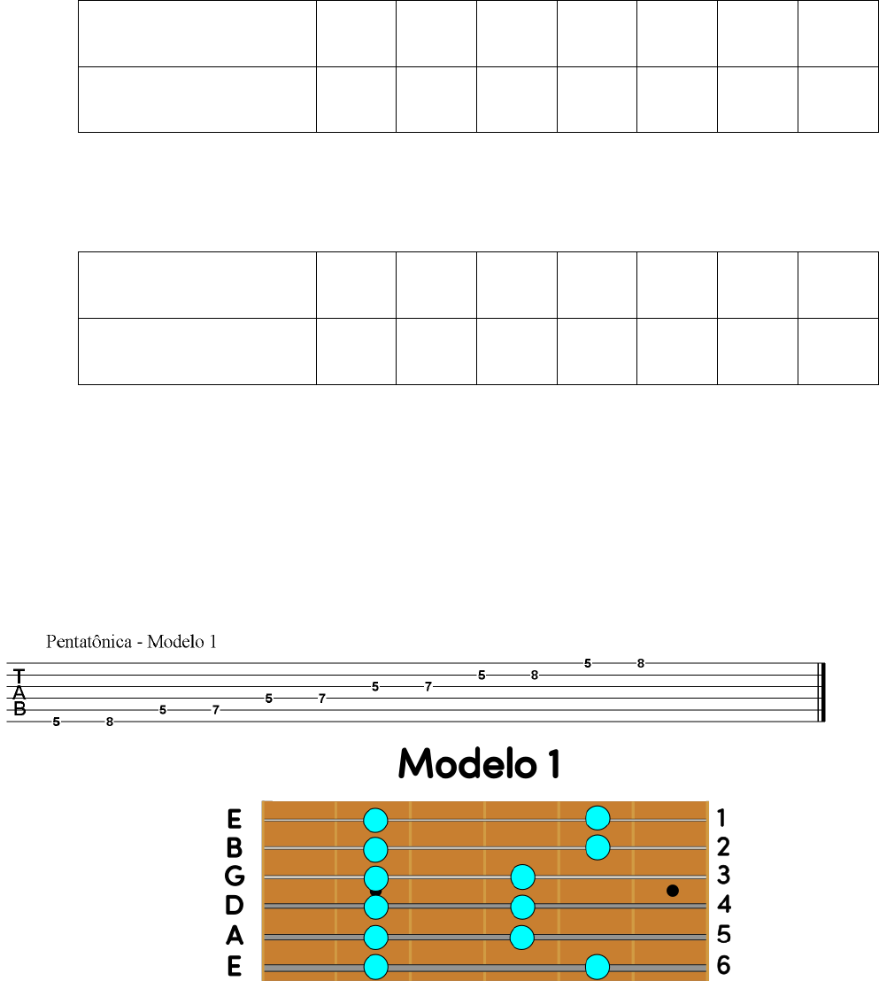 Guia Completo – Escalas Pentatônicas (Vídeo #1 e #2) Por Leandro Kasan Escala Pentatônica: Escala com 5 notas extraída da escala maior Escala de Dó Maior Dó Ré Mi Fá Sol Lá Si Escala Pentatônica de Dó Maior Dó Ré Mi Sol Lá x Isso acontecerá para todos os tons, para escalas pentatônicas maiores e menores. Escala de Lá menor Lá Si Dó Ré Mi Fá Sol Escala Pentatônica de Lá menor Lá x Dó Ré Mi x Sol O modelo mais importante da Pentatônica é o modelo 1 - A primeira nota deste modelo, tocada com o dedo indicador na 6ª corda, é a tônica MENOR - A segunda nota deste modelo, tocada com o dedo mindinho na 6ª corda, é a tônica MAIOR 5 Modelos da Escala Pentatônica Exemplo no tom de Sol Menor (Gm)