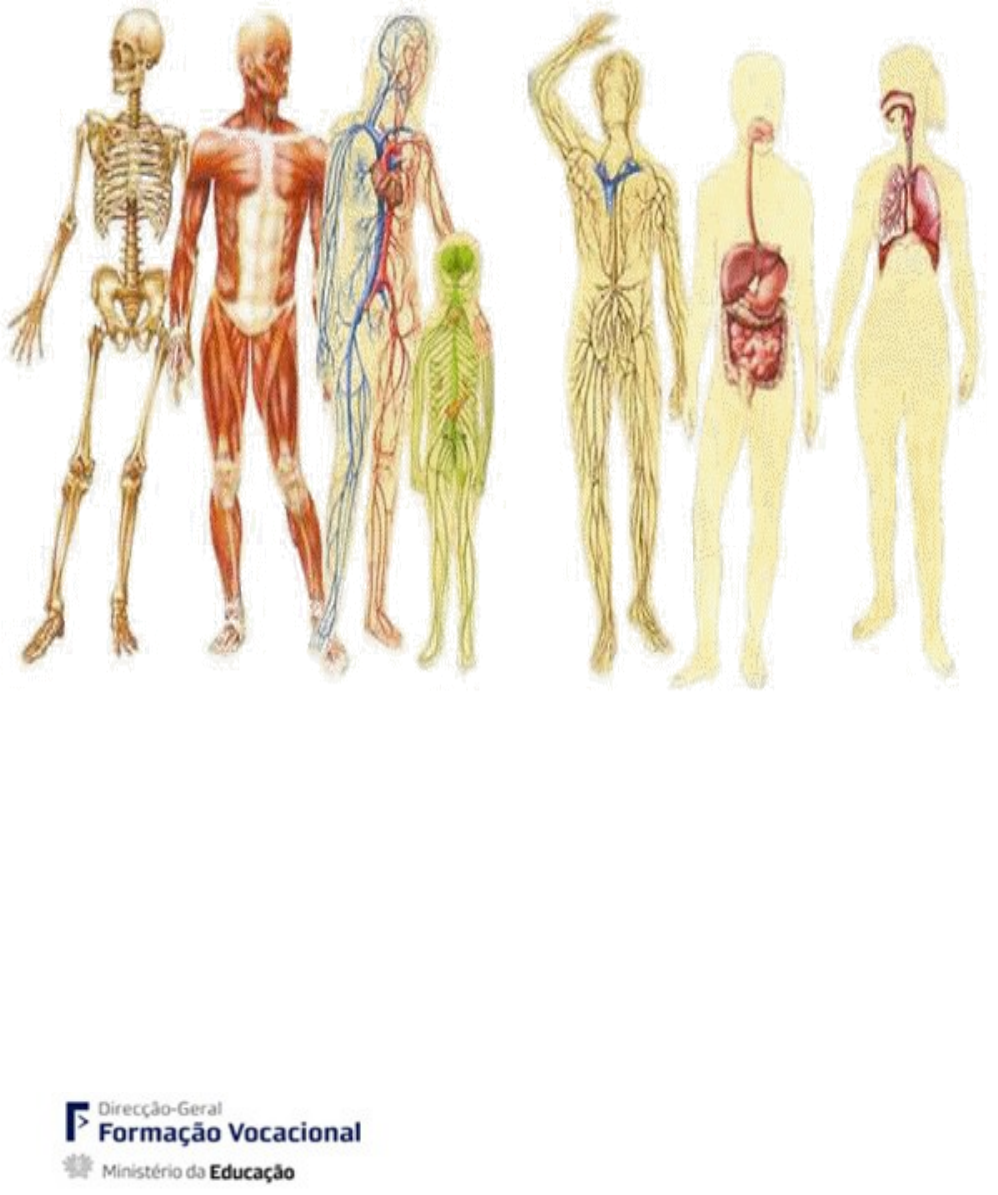 MANUAL SOBRE O CORPO HUMANO Elaborado pelo Curso EFA de Geriatria da Cruz Vermelha Portuguesa – Núcleo de Valença Fevereiro 2005 Índice Aparelho circulatório 3 O sangue 4 Características dos vasos 4 Dinâmica da circulação 8 O pulso 13 A pequena circulação 14 A grande circulação 15 A estrutura e a função dos vasos 16 A digestão 18 Tubo digestivo 19 A boca 21 Os dentes 22 A faringe 25 O esófago 26 O estômago 27 O intestino 27 O pâncreas 28 O fígado 28 A vesícula 30 Fisiologia do sistema digestivo 31 Esqueleto 33 Estrutura microscópica do osso 38 O crânio 40 Ossos da base 42 Ossos da face 45 A coluna 50 A estrutura das vértebras 50 Apófises 51 Vértebras cervicais 53 Vértebras torácicas 53 Vértebras lombares 54 Vértebras sacras 54 Vértebras coccigeanas 54 O tórax 57 Esterno 58 Costelas 59 Os membros 62 O sistema respiratório 65 O sistema muscular 68 Aparelhos sensoriais 73 Sistema urinário 75 Sistema reprodutor 79 Sistema nervoso 81 Bibliografia 84 APARELHO CIRCULATÓRIO Todas as células do nosso organismo têm necessidade, para se manter em vida e a desempenhar as suas funções, de receber oxigénio e materiais nutritivas. A tarefa de transportar esses elementos cabe ao sangue, o qual, por sua vez, recebe das células as substâncias de rejeição. Para realizar esse fornecimento, o sangue tem necessidade de "circular" continuamente: os canais dentro dos quais o sangue circula são os vasos sanguíneos, enquanto o coração é a bomba que dá ao sangue o seu impulso para circulação. Coração e vasos constituem, no seu conjunto, o aparelho circulatório. Tum, tum, tum, bate coração..." O coração bate mais forte quando se salta, joga, brinca ou corre por aí. Por quê? Quando nos movimentamos rapidamente, gastamos mais energia. Então o sangue tem que circular depressinha, porque tem muita coisa para fazer: - alimentar cada célula - levar embora o "cocó" da célula (aquilo que ela não aproveita do alimento) - trazer ar novo para os pulmões - expulsar o ar usado. Ufa! O coração bate mais rápido, porque é ele que faz o sangue circular. Assim como os carros circulam pelas ruas, o sangue circula pelo nosso corpo. As avenidas percorridas pelo sangue chamam-se veias e artérias. Pelas veias, o sangue chega ao coração. As artérias levam-no embora. O sangue é constituído por glóbulos vermelhos, glóbulos brancos e plaquetas. O sistema circulatório está encarregado de transportar, por meio do sangue, substâncias necessárias para a vida das células. Abastece as células de nutrientes e oxigénio, leva os hormonios das glândulas endócrinas até aos órgãos onde actuam, e retira os resíduos metabólicos (bióxido de carbono etc.) e outras substâncias que as células eliminam. Actua também no equilíbrio da temperatura. O sistema circulatório é formado por: -Uma bomba que impulsiona o sangue através do organismo: o coração. -Um sistema de vasos que inclui: artérias, arteríolas, veias, vênulas e capilares. -O sangue. O coração ocupa uma posição central na cavidade torácica, e tem o tamanho equivalente a uma mão fechada. Ele divide-se em duas metades, direita e esquerda, por uma membrana. Cada lado tem duas cavidades: uma aurícula (cavidade receptora) e um ventrículo (cavidade de descarga). Estas duas cavidades comunicam uma com a outra através de um orifício auriculoventricular, e cada uma é dotada de uma válvula. O coração é um órgão de natureza muscular que se contrai... O sangue Os glóbulos vermelhos, glóbulos brancos e plaquetas são como as peças de um carro. Cada um tem uma função definida. Os glóbulos vermelhos levam oxigénio. Os brancos combatem infecções, ou seja, vírus e bactérias que atacam o corpo e que nos deixam doentes. E as plaquetas ficam responsáveis por estancar os sangramentos, ou seja, a plaqueta ajuda na coagulação do sangue. Os três estão misturados numa substância líquida chamada plasma. Um homem tem em média 5 milhões de glóbulos vermelhos por milímetro cúbico de sangue. O sangue não anda só por avenidas. Existem também as ruas, que são as vênulas e as arteríolas. E ainda há ruazinhas chamadas de vasos capilares. Características dos Vasos As artérias: a sua função é a de transportar sangue oxigenado sob uma pressão elevada aos tecidos, por isso as artérias têm paredes vasculares fortes e o sangue flui rapidamente nelas. As artérias são tubos expansíveis que têm três capas: · Interna ou íntima: formada por tecido endotelial. · Média: composta principalmente por fibras elásticas. · Externa ou adventícia: composta principalmente por tecido fibroso. Pela presença do tecido elástico as artérias respondem de forma passiva à pressão do sangue contido. As arteríolas: São os últimos galhos do sistema arteriolar. A sua estrutura é similar às das artérias, sendo a capa média principalmente muscular, pelo que se espera que haja mudanças activas e não passivas no seu calibre. Portanto a quantidade de sangue que chega à camada capilar pode aumentar ou diminuir em resposta às necessidades dos tecidos e, às vezes, em resposta à actividade emocional. Os capilares: São compostos por uma só capa: o endotélio. Em média, não medem mais do que 1mm de comprimento e servem de conexão entre arteríolas e vênulas. A função dos capilares é intercambiar líquidos, nutrientes, electrólitos, hormônios e outras substâncias entre o sangue e o líquido intersticial ou tissular. Para esta função as paredes capilares são muito finas e permeáveis às moléculas pequenas. As vênulas e veias: As vênulas recolhem o sangue dos capilares. Estas unem-se para formar veias. Possuem três capas como as artérias, porém mais finas, especialmente a capa média. A pressão nelas é mais baixa em comparação com as artérias. As veias actuam como condutoras para o transporte do sangue dos tecidos até ao coração mas, de forma igualmente importante,