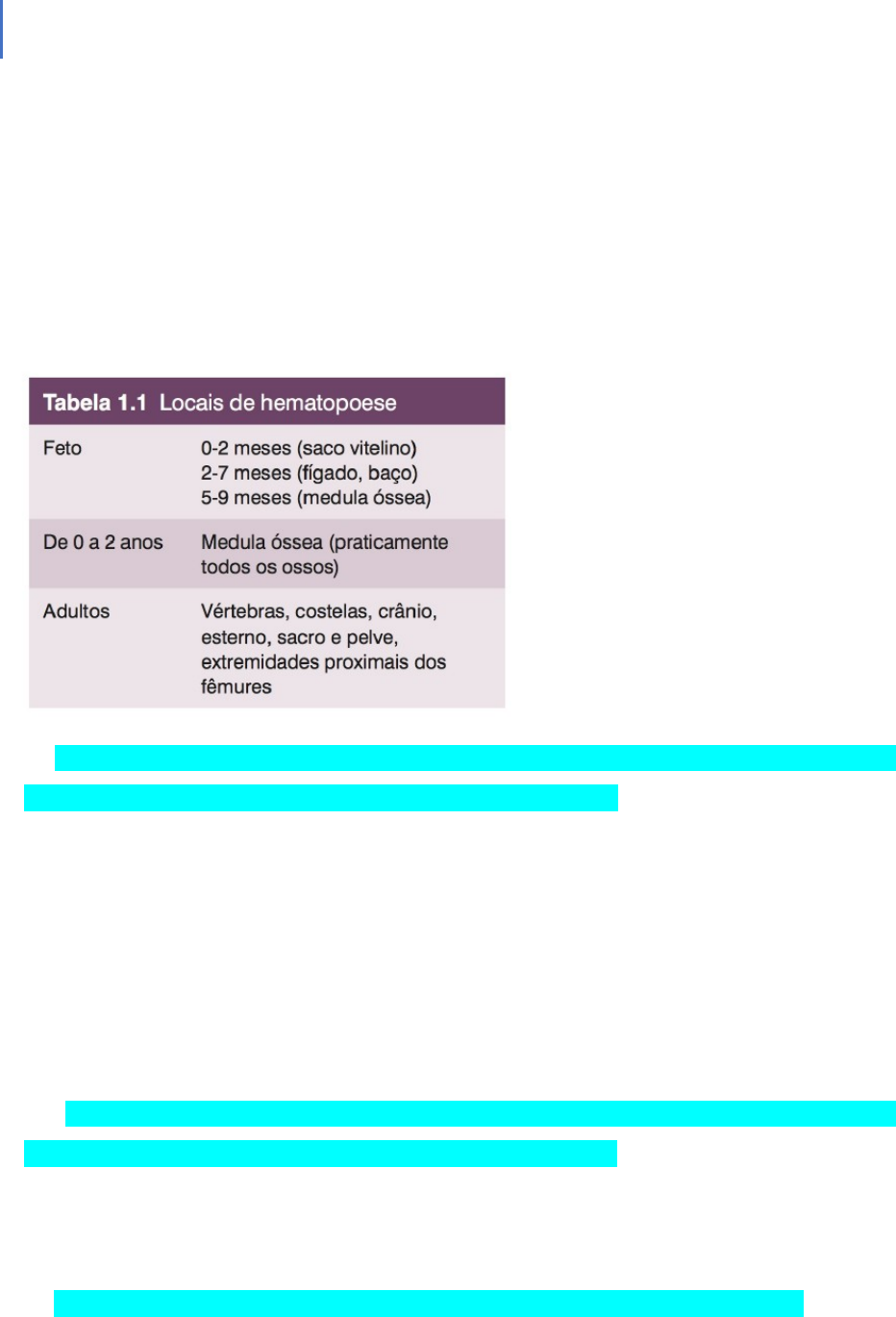 Letícia Morais | Hematologia – Aula 2: Eritropoese, leucopoese e trombopoese HOFFBRAND, A.V.; MOSS, P.A.H. Fundamentos em Hematologia. 6ª ed. Porto Alegre: Editora Artmed, 2013. Capítulo 1, 2, 8 e 24. CAPÍTULO 1 - HEMATOPOESE LOCAIS DE HEMATOPOESE ► Hematopoese definitiva deriva de uma população de células-tronco na aorta dorsal, designada região AGM (aorta-gônadas-mesonefros). ► Precursores comuns às células endoteliais e hematopoéticos aninham no fígado, baço e medula óssea. ► A partir de 6 a 7 meses de vida fetal, infância e vida adulta: medula óssea é sitio hematopoético e única fonte de novas células sanguíneas. ► 2 primeiros anos: medula óssea é hematopoética. ► No adulto, regiões hematopoéticas possuem cerca de 50% da medula composta por gordura. CÉLULAS-TRONCO HEMATOPOÉTICAS E CÉLULAS PROGENITORAS ► Hematopoese inicia-se com uma célula-tronco pluripotente que pode se autorrenovar e dar origem às distintas linhagens celulares. ► Capazes de repovoar medula cuja células tenham sido eliminadas por irradiação/quimioterapia letais. ► CTHs são escassas (1:20.000.000) e residem em nichos hematopoéticos. ► Progenitores Hematopoéticos comprometidos: etapa em que ocorre diferenciação celular a partir da célula-tronco com potencial de desenvolvimento restrito. ► Células progenitoras exclusivas para cada linhagem podem ser demonstradas por técnicas de cultura in vitro. ► CFU-GEMM (Unidade Formadora de Colônias): primeiro precursor misto detectável, originando granulócitos, eritrócitos, monócitos e megacariócitos. ► Medula óssea: origem de linfócitos que se diferenciam de um precursor linfocítico comum. ► Célula-tronco: capacidade de autorrenovação. ► Células precursoras são capazes de responder a fatores de crescimento hematopoético com aumento de produção seletiva de uma ou outra linhagem celular de acordo com necessidades. ESTROMA DA MEDULA ÓSSEA ► Medula óssea constitui-se em ambiente adequado para sobreida, autorrenovação e formação de células progenitoras diferenciadas. ► Ambiente é composto por células do estroma (adipócitos, fibroblastos, células endoteliais e macrófagos, podem secretar moléculas extracelulares e fatores de crescimento e formar matriz extracelular) e rede microvascular. ► Células-tronco mesenquimais: críticas na formação do estroma e em conjunto com osteoblastos formam nichos e fornecem fatores de crescimento, moléculas de adesão e citoquinas que dão suporte às células-tronco. ► Células-tronco são capazes de circular no organismo, sendo encontrada em pequeno número no sangue periférico. ► A mobilização de células-tronco ocorre quando células deixam medula óssea, atravessando endotélio vascular, e isso é aumentado pela administração de fatores de crescimento. CÉLULAS-TRONCO TECIDO-ESPECÍFICAS ► Células-tronco são pluripotentes podem gerar vários tipos de tecidos. REGULAÇÃO DA HEMATOPOESE ► Hematopoese começa com mitoses das células-tronco → cada divisão, uma célula-filha repõe célula-tronco (autorrenovação) e outra se compromete em diferenciação. ► Células progenitoras precocemente comprometidas expressam baixos níveis de fatores de transcrição que as comprometem com linhagens especificas. ► Alguns fatores de transcrição regulam a sobrevivência das células-tronco enquanto outros se envolvem na diferenciação ao longo das principais linhagens celulares. FATORES DE CRESCIMENTO HEMATOPOÉTICOS ► Fatores de crescimento são hormônios glicoproteicos que regulam proliferação e diferenciação das células progenitoras hematopoéticas e função das células sanguíneas maduras. ► Podem agir no local em que são produzidos ou circular no plasma. Ainda, podem ligar-se à matriz extracelular, formando nichos. ► Capazes de promover proliferação celular, estimular diferenciação, maturação, prevenção da apoptose e afetar funções das células maduras. ► Compartilham certo número de propriedades e agem em diferentes etapas da hematopoese. ► As células do estroma são as principais fontes de fatores de crescimento. Exceções: eritropoetina (90% produzida nos rins) e TPM (fígado). ► Podem agir sinergicamente no estimulo a proliferação ou diferenciação de uma célula em particular e, ainda, a ação de um fator de crescimento pode estimular produção de outro fator ou de um receptor de fator. RECEPTORES DE FATORES DE CRESCIMENTO E TRANSDUÇÃO DE SINAIS ► Efeitos biológicos dos fatores de crescimento são mediados por receptores específicos nas células-alvo. ► Superfamília dos receptores hematopoéticos: dimeriza após conectar com seus ligantes. Ex.: EPO-R. ► 3 principais vias de transdução de sinais intracelulares: · JAK/STAT; · Proteinoquinase Ativada por Mitogênio (MAP); · Fosfatidil-Inositol 3 (PI3). CICLO CELULAR ► Processo complexo que se situa no núcleo da hematopoese. ► Controlado em dois checkpoints: coordenam processo de divisão no fim das fases e . APOPTOSE ► Processo regulado de morte celular fisiológica autoprogramada. ► Manutenção da homeostasia tecidual na hematopoese e no desenvolvimento de linfócitos. FATORES DE TRANSCRIÇÃO ► Regulam expressão genica pelo controle da transcrição de genes específicos ou de famílias de genes. CAPÍTULO 2 – ERITROPOESE E ASPECTOS GERAIS DA ANEMIA ► Diariamente são produzidos em torno de novos eritrócitos por meio do processo complexo e regulado de maneira precisa da eritropoese. ► Células-tronco → → → → pró-eritroblasto → eritroblastos → reticulócito → eritrócito. ERITROPOETINA ► Hormônio que regula eritropoese. ► Produção: células intersticiais peritubulares renais (90%), fígados e outros locais. ► Estímulo para produção: tensão de oxigênio nos tecidos do rim. ► Promove eritropoese ao aumentar número de células progenitoras comprometidas. HEMOGLOBINA 