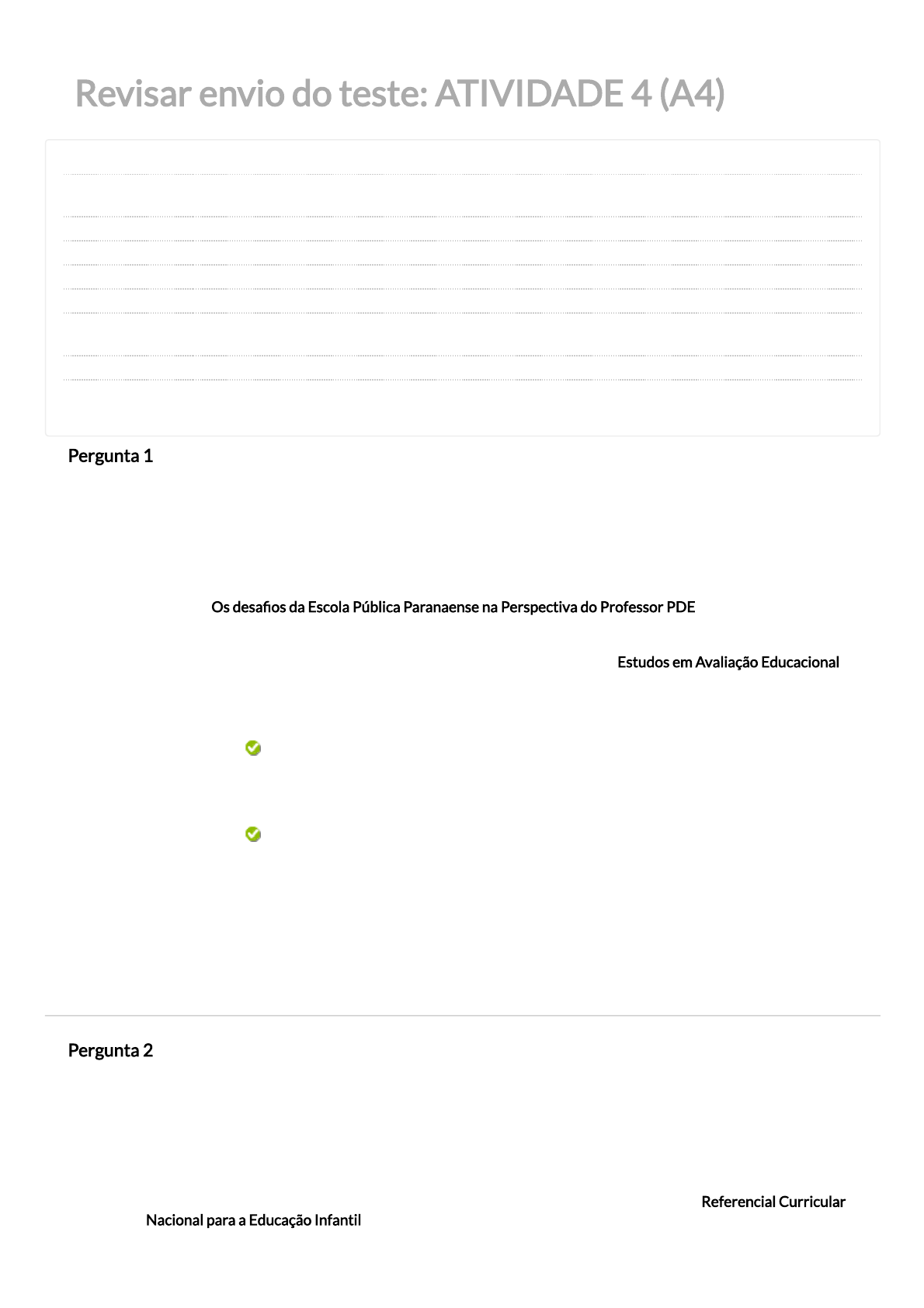 Respostas enviadas, Respostas corretas, Comentários