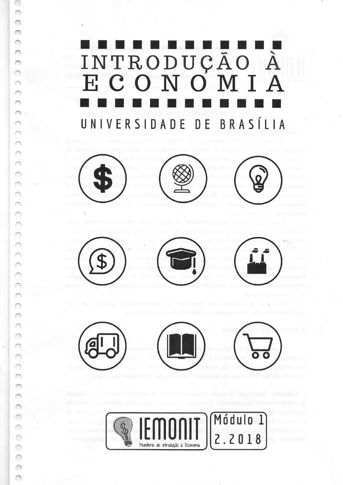 ’ > INTRODUÇÃO À ECONOMIA UNIVERSIDADE DE BRASÍLIA iSj$ XJai i O O líMódulo í 2.2018lEmonu Montaria de Introdução a Economia Universidade de Brasília -FACE - Departamento de Economia (ECO) Introdução à Economia 2*72018 Coordenação da disciplina: Andrea Felippe Cabello«MT Monitoria ifc toiroduç® à Economia PROGRAMA INTEGRADO 1. OBJETIVOS E MÉTODO O curso apresenta instrumentos de análise e conceitos básicos da Economia, visando capacitar o estudante a melhor compreender os fenômenos económicos da realidade que o cerca. Cursada por mais de mil e quinhentos alunos a cada semestre, a disciplina é oferecida em um formato inovador, com turmas grandes, provas e programa unificados, e um papel central atribuído à Equipe de Monitoria- IEMonit, formada por estudantes especialmente selecionados e treinados para essa tarefa. O conteúdo do programa será transmitido aos alunos por três vias igualmente importantes: as leituras indicadas abaixo, as aulas expositivas dos professores e as aulas de exercícios, ministradas pelos monitores. Os textos de leitura são selecionados de várias fontes. Não é uma solução ideal: há algumas superposições ou descontinuidades e o material proveniente de autores estrangeiros contém, naturalmente, poucas referências a situações e exemplos brasileiros. Mas essa deficiência é compensada por três mecanismos: aulas expositivas, onde os temas das leituras são apresentados pelos professores numa sequência coerente e com exemplos apropriados; material de leitura complementar referente à economia brasileira, disponibilizado para os alunos via internet; e exercícios, aplicações frequentemente referentes a situações concretas, conceitos e instrumentos apresentados nas leituras e nas aulas. As aulas, as leituras e os exercícios se complementam, portanto um bom rendimento no curso dependerá do conjunto desses três elementos. 2. CONTEÚDO DO CURSO O conteúdo da disciplina está dividido em sete unidades e dois módulos, sendo as unidades 1, 2 e 3 no módulo I, unidades 4, 5, 6 e 7 no módulo II. Cada módulo corresponde ao conteúdo das respectivas provas I e II. Segue abaixo uma relação simplificada dos conteúdos abordados em cada uma das sete unidades do curso. 1" Unidade - Introdução. A teoria económica: objeto. Economia “positiva”: a hipótese do comportamento maximizador. Alocação de recursos escassos e eficiência. Custos de Oportunidade, Curvas de Possibilidades de Produção e Linhas de Possibilidade de Consumo. Vantagens absolutas, vantagens comparativas e ganhos comerciais. Teorias do Comércio. Relações económicas internacionais. Determinação de fluxos de comércio: vantagens comparativas. Modelos alternativos: livre comércio e protecionismo. 1 Economia “normativa” e juízos de valor. Escolha social: decisões de mercado e decisões centralizadas. Lista de Exercícios 1. 2a Unidade - Sistema de Preços. Teoria elementar da demanda e oferta de bens e serviços: determinantes. Funcionamento do mercado: deslocamentos e políticas de preço máximo e mínimo. Comportamento competitivo: o modelo de concorrência perfeita; determinação de preços em concorrência; o conceito de equilíbrio de mercado. Elasticidade preço e elasticidade-renda. Substituição e complementaridade. Bens normais e inferiores. Estruturas de mercado. Falhas de Mercado: a ideia de extemalidades, o conceito de bem público e o governo como agente regulador. Listas de Exercícios 2A e 2B. 3a Unidade - Contas Nacionais. A mensuração da atividade económica. Óticas de mensuração: Produto, Renda e Despesa. A despesa global e seus componentes. Formas de medida dos agregados económicos. Comparações internacionais de nível de renda. Comparações no tempo: o problema do deflacionamento. índices de preços. Listas de Exercícios 3A e 3B. 4a Unidade - Noções de Economia Monetária. Funções e história da moeda. O sistema bancário e a criação de moeda. Banco Central e controle da oferta monetária. Sistema financeiro no Brasil. Inflação: causas, consequências. Lista de Exercícios 4. 5a Unidade - Noções de Macroeconomia. Produto potencial e produto efetivo. Crescimento económico. A economia no curto prazo: flutuações do produto e renda. Poupança, investimento e o papel do sistema financeiro. A visão “clássica” e a keynesiana. Política anticíclica de curto prazo. Multiplicador keynesiano de despesa. Política fiscal: efeitos, instrumentos. Desemprego keynesiano. Outras causas de desemprego. Listas de Exercícios 5A e 5B. 6a Unidade - Noções de Economia Internacional. O Balanço de Pagamentos: conceito, principais contas. Noções de macroeconomia aberta. O mercado cambial: regimes de câmbio. Taxas de câmbio real e nominal. Teoria da paridade do poder de compra. Teoria macroeconômica da economia aberta. Listas de Exercícios 6A e 6B. 7a Unidade - Distribuição de Renda e Tópicos de Economia Brasileira. Distribuição pessoal e funcional da renda. Medidas absolutas de avaliação da pobreza: linha de pobreza e linha de miséria. Medidas relativas: desigualdade distributiva e seus indicadores. Curva de Lorenz, índice de Gini. Distribuição de renda no Brasil: evolução, fatores que a influenciam. Evolução da economia brasileira; o processo de industrialização; transformações recentes e perspectivas atuais. A experiência inflacionária brasileira e os planos de estabilização. Lista de Exercícios 7. 3. LISTAS DE EXERCÍCIOS Listas de Exercícios, cobrindo cada unidade do programa, estarão disponíveis na página do curso na internet e nas apostilas do curso. Os exercícios são essenciais para um bom aprendizado da disciplina e devem ser resolvidos paralelamente à discussão, em classe, das unidades do programa. Os gabaritos destas listas serão divulgados na semana seguinte à sua resolução pelos monitores, ou na sexta-feira da semana anterior à prova. 2 4. EQUIPE DE MONITORIA-I