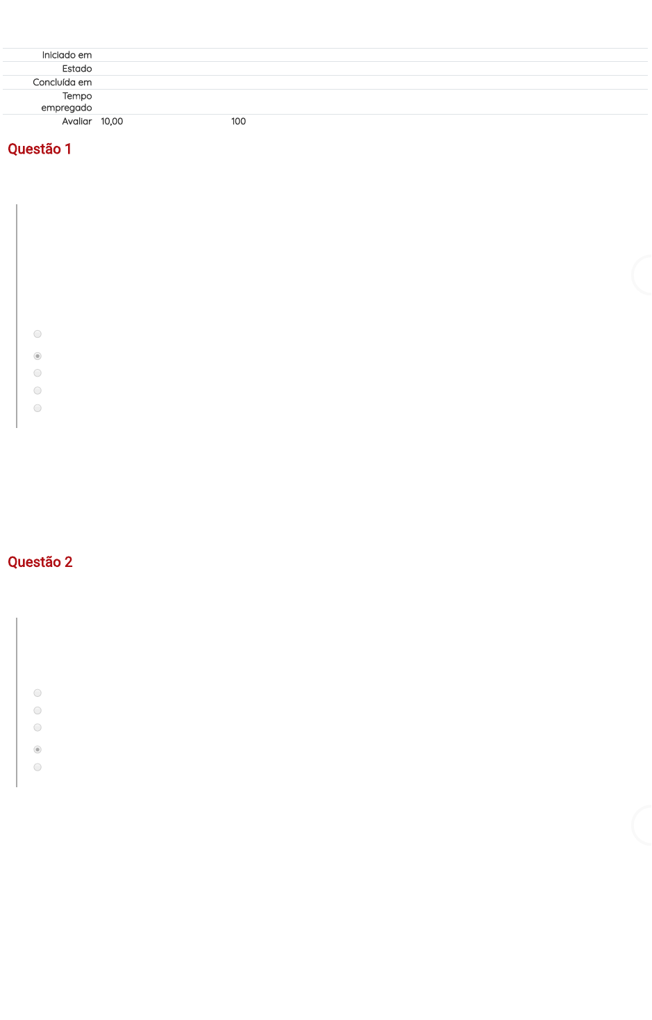 Iniciado em Sunday, 29 Dec 2019, 18:45 Estado Finalizada Concluída em Sunday, 29 Dec 2019, 19:02 Tempo empregado 16 minutos 41 segundos Avaliar 10,00 de um máximo de 10,00(100%) Questão 1 Correto Atingiu 1,00 de 1,00 De acordo com o material didático, analise os itens a seguir, no que diz respeito à tutoria. I – Os tutores, antes de interagirem com seus pares, recebem ensinamentos, são habilitados e supervisionados pelos professores. II – Os professores tentam transmitir aos mesmos uma informação simpli�cada sobre o tipo de de�ciência que o colega apresenta, além de fazê-los ver os aspectos de segurança e manobras físicas que promovem a independência do aluno com de�ciência. III - a tutoria é uma via de mão dupla, e os tutores igualmente se bene�ciam deste relacionamento educativo. É correto apenas o que se �rma no item: Escolha uma: a. Nenhuma das alternativas. b. I, II e III; c. I e III apenas; d. I e II apenas; e. II e III apenas; Questão 2 Correto Atingiu 1,00 de 1,00 Uma das estratégias de ensino que vem sendo aceita nas escolas, e também fora delas, onde o professor ou educador apronta um colega de sala ou da escola para auxiliar o aluno com de�ciência. Essa estratégia aceita que no modelo inclusivo, ambas as partes aprendem e ensinam a si próprias, a outro e ao educador. Assinale a alternativa que apresenta a estratégia conceituada. Escolha uma: a. Ensino colaborativo b. Ensino cooperativo c. Monitoria d. Tutoria e. Consultoria Questão 3 Correto Atingiu 1,00 de 1,00 De acordo com o material estudado, assinale a alternativa que apresenta corretamente os tipos de de�ciências físico-motoras identi�cadas nas escolas. Escolha uma: a. Disre�exia autonômica ou hiper�exia autonômica; cognitivas; intelectuais: síndrome de down; de�ciência visual; auditiva; entre outras. b. Somente pessoas com de�ciência visual e Auditiva. c. Somente pessoas com Paralisia cerebral e amputados. d. Somente cadeirantes, pessoas com de�ciência visual e Auditiva. e. Somente pessoas com de�ciência intelectual. Questão 4 Correto Atingiu 1,00 de 1,00 De acordo com o material estudado, observam várias di�culdades na escola em aulas de Educação Física. Não somente a falta de interesse de professores e sim o medo dos alunos com algum tipo de de�ciência em realizar atividades práticas nas aulas de educação física, da mesma forma Melhem (2009) a�rma que o motivo é: Marque a alternativa correta. Escolha uma: a. Não aceitação de suas limitações e se sentem incapacitados. b. Desconhecimento, descon�ança ou mesmo preconceito. c. Preconceito consigo mesmo e consideram a prática desnecessária. d. Autoestima baixa e revolta. e. Desconhecimento e consideram a prática desnecessária. Questão 5 Correto Atingiu 1,00 de 1,00 Hoje quase todos os cursos de Educação Física disponibilizam nas grades curriculares conteúdos e práticas relacionadas à Educação Física ______________ e à _____________. Marque a alternativa que melhor completa o enunciado. Escolha uma: a. Adaptada / Aplicada. b. Adaptada / Inclusão. c. Aplicada / Inclusa. d. Aprimorada / Pessoas com De�ciência. e. Inclusiva / Aplicada. Questão 6 Correto Atingiu 1,00 de 1,00 Os jogos que envolvem competições em modalidades conhecidas como olímpicas, com as adaptações imperativas para proporcionar sua prática pelas pessoas com de�ciência. São chamados como: Marque a alternativa correta. Escolha uma: a. Jogos Olímpicos adaptados ou Paraolimpíadas b. Jogos Especiais c. Jogos Olímpicos ou Olimpíadas d. Jogos Paradesportivos e. Jogos para Pessoas com De�ciência Questão 7 Correto Atingiu 1,00 de 1,00 Falando um pouco sobre as manifestações esportivas, o material estudado destaca alguns esportes que foram pensados e tiveram suas regras reformuladas para que as pessoas com de�ciência pudessem participar. Com base em informações do Comitê Paralímpico Brasileiro, respondam sobre esportes praticados. A Vela é praticada por pessoas que possuem de�ciência: Escolha uma: a. Auditiva ou Intelectual. b. Visual e auditiva. c. Locomotora ou visual. d. Auditiva. e. Intelectual. Questão 8 Correto Atingiu 1,00 de 1,00 No que diz respeito às modalidades esportivas exercidas pelas pessoas com de�ciência, analise os itens a seguir: I - São fundamentadas na classi�cação funcional para todas as modalidades e a classi�cação dos atletas em suas especí�cas modalidades e são baseadas em conformidade com seu comprometimento físico-motor. II - Para cada tipo de de�ciência, existem modalidades esportivas possíveis, como é o caso de pessoas com de�ciência visual, que praticam o futebol, goalball ou judô. III - As de�ciências homologadas nos esportes paraolímpicos vão desde paralisia cerebral, amputação de algum membro do corpo até a de�ciência visual completa e de�cientes auditivos. IV - A modalidade em que os atletas são categorizados por peso corporal é no sumô. É correto apenas o que se �rma na alternativa: Escolha uma: a. I e III apenas b. I, II apenas c. III e IV apenas d. I, II, III e IV. e. I, II e III apenas. Questão 9 Correto Atingiu 1,00 de 1,00 O Comitê Paraolímpico Brasileiro (CPB) foi fundado com sede na cidade de Niterói/RJ. Marque a alternativa que apresenta corretamente o primeiro presidente da entidade. Escolha uma: a. Ivaldo Brandão b. Mizael Conrado c. João Batista de Carvalho e Silva d. Carlos Arthur Nuzman e. Andrew Parsons Questão 10 Correto Atingiu 1,00 de 1,00 No Brasil, o esporte paraolímpico deu início à sua pratica por qual atleta? Escolha uma: a. Luiz Cláudio Pereira b. Yohansson do Nascimento Ferreira c. Sebastião Neto d. Robson Sampaio de Almeida, e como parceiro o Aldo Miccolis. e. César Antônio Goalberto ATIVIDADE ANTERIOR Avaliação Formativa I PRÓXIMA ATIVIDADE AP3.1 Avaliação Formativa Processual - Online (vale 40% da MAP)
