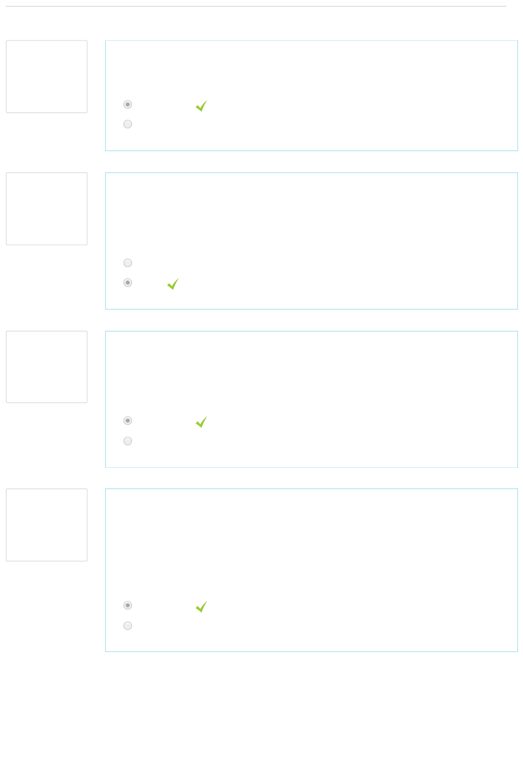 Questão 1 Correto Atingiu 1,00 de 1,00 Questão 2 Correto Atingiu 1,00 de 1,00 Questão 3 Correto Atingiu 1,00 de 1,00 Questão 4 Correto Atingiu 1,00 de 1,00 Avaliar 5,00 de um máximo de 5,00(100%) As empresas sem fins lucrativos visam lucro. Escolha uma opção: Verdadeiro Falso Custos são os valores gastos com bens e serviços relativos à manutenção da atividade da empresa (exemplos: materiais de escritório, salário da administração). Escolha uma opção: Verdadeiro Falso O ponto de equilíbrio de uma empresa é o momento em que a margem de contribuição se iguala ao custo fixo, fazendo com que o lucro seja igual a zero. Escolha uma opção: Verdadeiro Falso Markup ou Mark Up é um termo usado em Economia para indicar quanto do preço do produto está acima do seu custo de produção e distribuição. Pode ser expressado como uma quantia fixada ou como percentual. O valor representa a quantia efetivamente cobrada sobre o produto a fim de obter o preço de venda. Escolha uma opção: Verdadeiro Falso Questão 5 Correto Atingiu 1,00 de 1,00 O lucro líquido é obtido após a subtração da margem de contribuição pelo custo variável (LL = MC – CV). Escolha uma opção: Verdadeiro Falso