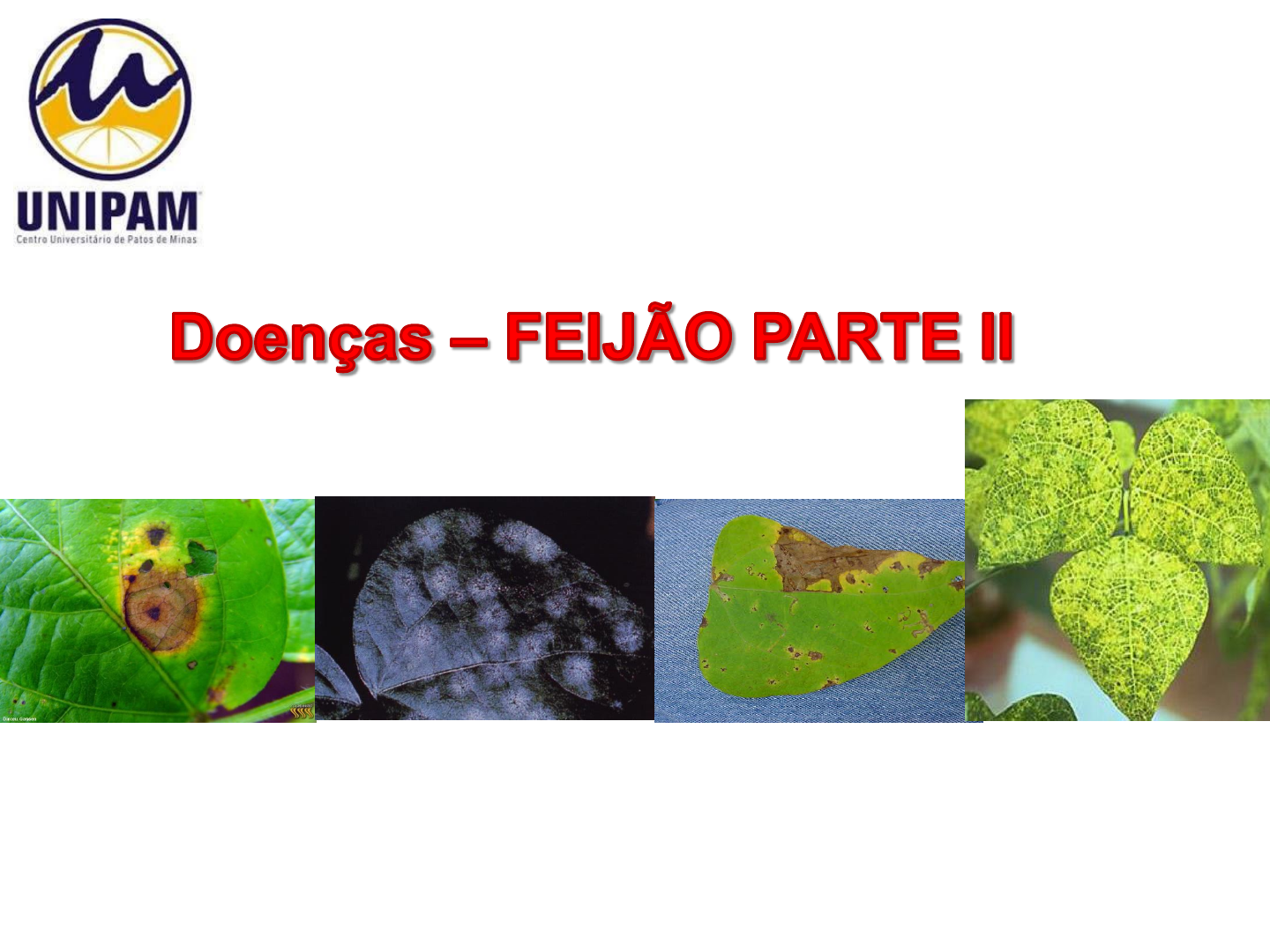 Centro Universitário de Patos de Minas Patos de Minas - 2018 Lucas da Silva Mendes Etiologia -Agente causal – Alternaria cichori, A. cathami e Alternaria alternata deuteromicetos Condições favoráveis: - Alta umidade - 16 a 20 ºC Mancha de Alternária Disseminação - Sementes – afeta a germinação - Sobrevivem restos de culturas e outras plantas hospedeiras. Mancha de alternaria Mancha de alternaria SINTOMAS São pequenas pontuações irregulares de coloração marrom-avermelhadas, com bordos bem definidos de coloração marrom escuros. Com a evolução da doença as lesões vão se coalescendo se aproximando do formato circular, apresentando anéis concêntricos, cujo o centro pode se desprender ao longo do tempo. Mancha de alternaria Mancha de alternaria - CONTROLE Sementes sadias (teor de umidade na colheita armazenamento); Tratamento de sementes; Evitar semeadura em regiões muito frias; VR – Goiano precoce, Jalo precoce, IAC-carioca; Manejo da irrigação; Rotação com gramíneas; Controle químico: ipridione (Rovral), mancozeb (Manzate), trifenil acetato de estanho (Hokko Suzu); Oídio Erysiphe polygoni doença SECUNDÁRIA – embora esteja bem distribuído no Brasil; Pode provocar redução no rendimento de grãos em até 69%; Comum em plantio tardios na safra de outono; Importância quando ocorre antes do florescimento Oídio SINTOMAS Em incidência acentuadas pode-se observar sintoma o amarelecimento e o retorcimento das folhas, resultando em desfolha precoce do feijoeiro. Iniciam na parte superior das folhas, com machas verde-escuras que se desenvolve em pequenas massas acinzentadas, com aspectos pulverulento. Sintomas na folha Oídio SINTOMAS Doenças causadas por bactérias CRESTAMENTO BACTERIANO Xanthomonas axonopodis pv. phaseoli Doença causada pro bactéria – ocorrência generalizada – regiões úmidas e relativamente quentes . Semente é considerada como a principal fonte primária de inóculo – ENRUGADA. Regiões muito baixas apresenta pouca incidência dessa doença. Epidemiologia Umidade elevada com Chuvas Frequentes; Temperatura Ideal entre 28 e 32 ºC; O Crescimento é diminuído à medida que a temperatura abaixa, detendo-se a 16 º C; Plantas com Abertura causada por ferimentos; A semente é o meio mais importante para a sua difusão. Sintoma nas Folhas Sintoma nas Folhas Sintoma nas Folhas Inicia-se com pequenas manchas úmidas na face inferior das folhas; A quais se coalescem umas às outras originando áreas pardo-necróticas. É comum encontrar-se um estreito halo amarelado entre área necrosada e os tecidos sadio da folha. • Rotação de cultura; • Eliminação de resto de cultura, plantas hospedeiras; • Época de plantio; • Controle da irrigação; • Diminuir o stande; • Aumentar o espaçamento; • Adubação equilibrada – Cuidado com N; • Controle químico; CRESTAMENTO BACTERIANO - CONTROLE Cultivares resistentes ao crestamento bacteriano. Cultivar Grupo Nível de resistência BRS Pontal Carioca Moderadamente resistente BRS Esplendor Preto Moderadamente resistente IPR Graúna Preto Moderadamente resistente IPR Saracura Carioca Moderadamente resistente IPR Chopim Preto Moderadamente resistente IPR Gralha Preto Moderadamente resistente IPR Siriri Carioca Moderadamente resistente IPR Campos Gerais Carioca Moderadamente resistente IPR Andorinha Carioca Moderadamente resistente O controle químico só dever ser utilizado nas seguintes situações: Alta intensidade da doença; Em campos de produção de sementes; Produtos à base de cobre (hidróxido de cobre). Classe: Fungicida Ingrediente Ativo: Oxicloreto de Cobre 504 g/kg Clorotalonil 250 g/kg Modo de Ação: Contato Espectro de Registro: Antracnose e Ferrugem Classe Toxicológica: II Altamente Tóxico Carência: 14 dias Controle de Crestamento Bacteriano e Oídio MURCHA DE CURTOBACTERIUM Curtobacterium flaccumfaciens pv. flaccumfaciens; Condições favoráveis: –Alta temperatura: 32°C; – Estresse hídrico. Uso de sementes sadias; Plantio em locais distantes de lavouras velhas; Evitar o cultivo sucessivo de feijão; Rotação de culturas com gramíneas (mínimo de 2 anos); Adubação nitrogenada equilibrada; Uso de cultivares resistentes (principal método): MEDIDAS DE CONTROLE Cultivares resistentes à murcha de curtobacterium. Cultivar Grupo Nível de resistência IPR Garça Branco Moderadamente Resistente IPR Tangará Carioca Resistente IPR Saracura Carioca Moderadamente Resistente FT Bonito Carioca Moderadamente Resistente IPR Campos Gerais Carioca Moderadamente Resistente IAC Alvorada Carioca Resistente BRS Pontal Carioca Moderadamente Resistente IAPAR 31 Carioca Resistente Cultivares resistentes à murcha de curtobacterium. Cultivar Grupo Nível de resistência IPR Chopim Preto Resistente IPR Tiziu Preto Moderadamente Resistente IPR Gralha Preto Moderadamente Resistente BRS Esplendor Preto Moderadamente Resistente Rio Tibagi Preto Moderadamente Resistente FT Nativo Preto Moderadamente Resistente FT Nobre Preto Moderadamente Resistente IAPAR 44 Preto Resistente IPR Graúna Preto Moderadamente Resistente Bemisia tabaci raça B 15 a 18 Dias de Ciclo ! Ovoposição: » - Raça A: 110 ovos / fêmea » - Raça B: 300 ovos / fêmea PLANTAS HOSPEDEIRAS: 750 ESPÉCIES Ovos Ninfas: Estágios Iniciais Ninfas 3° Instar Pupa ou Pré Pupa Adulto Mosca Branca Fases da Mosca Branca Longevidade Macho: 9 a 17 dias ( média de 13 dias) Fêmea: 38 a 74 dias ( média de 63 dias) Ciclo de vida: ovo - adulto 18 - 19 dias (32ºC) 73 dias (15 ºC) Duração do ciclo Ovos: período de incubação - 3 a 6 dias Ninfas: 10 dias Pupas: 4 dias Número de gerações: 11 a 15 / ano Biologia Quantas Moscas Brancas são necessárias para destruir um hectare de feijão? Qual época do ano não tem Mosca Branca? DAE Jalo Precoce Carioca Pérola A- (7) 100,0 100,0 100,0 B- (14) 100,0 100,0 100,0 C- (21) 82,20 100,0 100,0 D- (28) 55,61 90,80 90,00 E- (35) 0,0 45,99 61,11 F- (42) 3,04 12,38 21,25 G- (