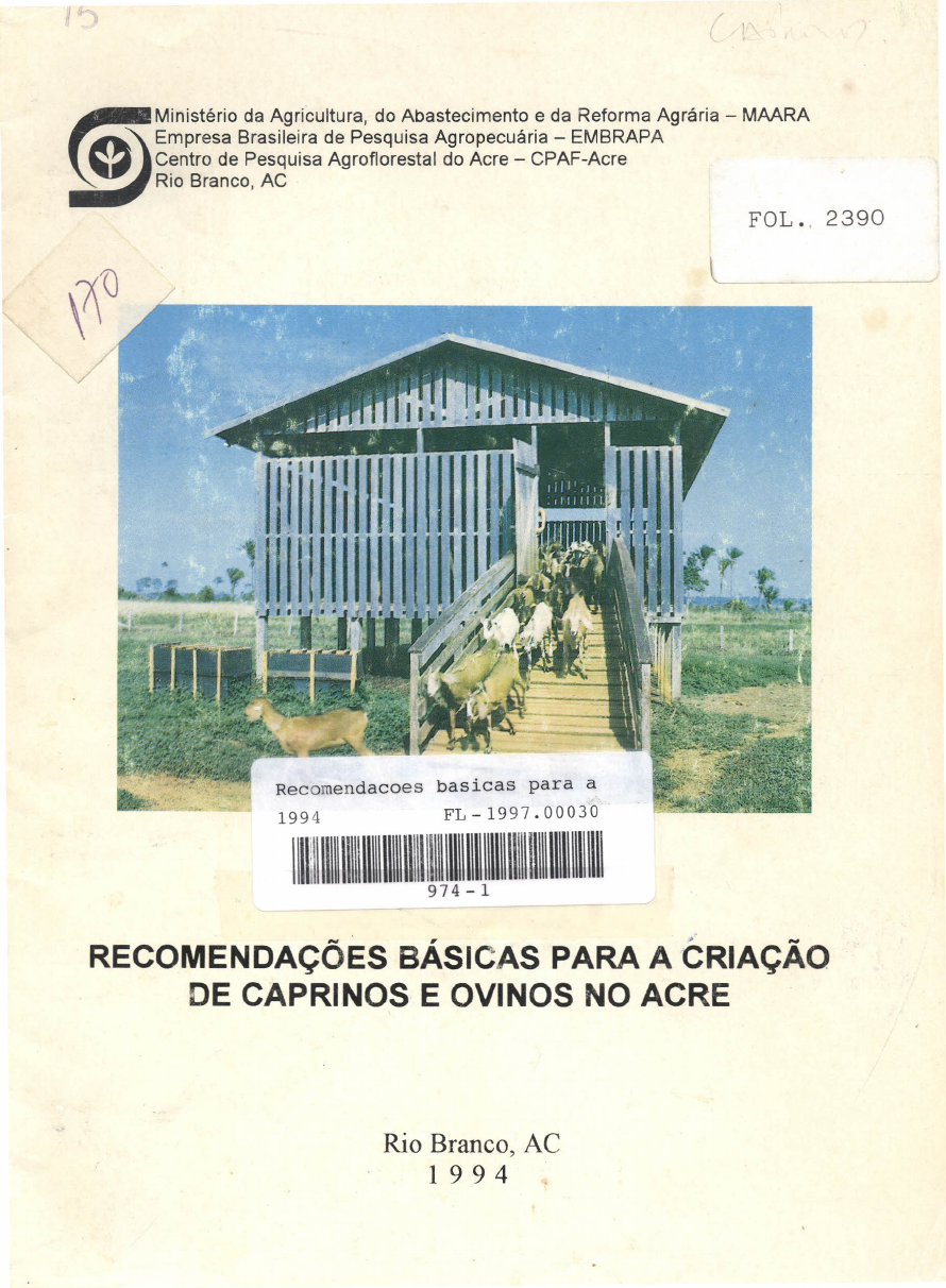 básicas para a criação de caprinos e ovinos no Acre. Rio Branco: