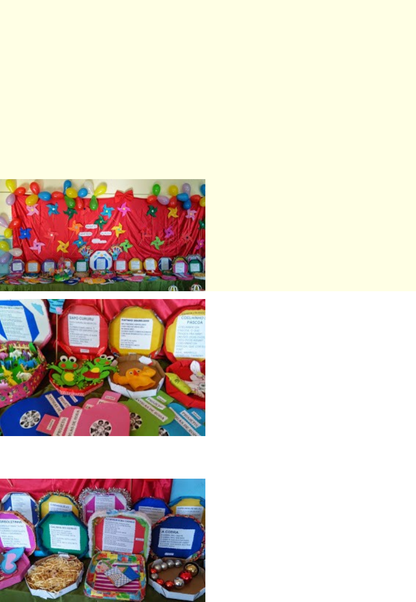 Tatiane Simoni Ferreira da Silva Projeto: Cantigas na educação infantil Para desenvolver este projeto será preciso a parceria de todas as professoras da escola onde também resgataremos as "Brincadeiras antigas" e faremos uma produção do DVD com as cantigas trabalhadas juntamente com um livro de cantigas produzido pelos alunos e professoras. Haverá também a participação das famílias no desenvolvimento do projeto . Artes na caixa de Pizza Se essa rua fosse minha O pintinho amarelinho.Arte em eva/ lembrancinhas para os visitantes. Maquete música atirei o pau no gato. A dona aranha Tema: Cantigas Justificativa: Cantar é maravilhoso “Quem canta seus males espanta". Todos gostam de brincadeiras. Essas cantigas são muito importantes, pois pertencem à tradição oral é são transmitidas de geração em geração. Entre na roda, na ciranda da brincadeira e divirta-se com sua turma .Quem não se lembra da música/cantiga “borboletinha? Ou da letra de Ciranda, cirandinha? As cantigas ultrapassam o tempo e continuam emocionando diversas gerações, pois, cantar ainda é uma das brincadeiras mais divertidas para as crianças e para os adultos. Objetivo geral: Resgatar canções infantis despertando o gosto pelas cantigas, uma vez que cada cantiga é aprendida e passada, ou seja, cantada de geração em geração para que a criança possa interagir e expressar seus desejos, necessidades e sentimentos por meio da linguagem oral. Objetivos: · Aprender diferentes cantigas. · Pesquisar sobre as diferentes cantigas que existem. · Proporcionar a leitura das canções. · Ampliar o repertório musical. · Resgatar as brincadeiras mais antigas. Metodologia: O projeto será desenvolvido abordando os conteúdos (linguagem oral e escrita, artes, natureza e sociedade e matemática), através das seguintes ações: · Escrita de palavras/títulos das músicas · Músicas e Parlendas · Jogos e brincadeiras antigas · Confecção de cartazes com as músicas · Instrumentos que revelam a interação com as outras culturas · Desenvolvimento da coordenação motora · Noção de espaço, medidas. · Danças/mímicas. · Artes/pintura/dobraduras · confecção De cartazes com as cantigas Desenvolvimento do trabalho: 1º passo-Cada turma escolhera uma cantiga ,e assim desenvolver atividades de artes para exposição : Mural, animais recicláveis que representam a música escolhida. 2º passo- Apresentar ao grupo algumas das cantigas que serão trabalhadas: Ouvir CD ou DVD com cantigas . Elaborar uma lista das cantigas que mais chamou a atenção. 3º passo- Conhecer a cantiga: “Atirei o pau no gato”, bem como suas características. Cantar e registrar a cantiga; Representar em sala esta cantiga; Conhecer a versão “politicamente correta” desta cantiga; Conversar sobre os cuidados com os animais. No decorrer do projeto ir explorando , registrando e ilustrando diversas cantigas 4º Passo- Coletar todas as cantigas trabalhadas e montar um albinho de cantigas. 5º passo- Dividir tarefas para ser realizadas com as famílias dos alunos. Cada criança levará para casa uma caixa de pizza com uma letra de música dentro. Junto com a família realizarão uma arte na capa e dentro da caixa fizeram uma maquete, fantoches, dedoches, desenho, escultura... de acordo com a letra da música. 6° passo- Sortear as professoras que ficarão com a tarefa/ tema "Brinquedos e Brincadeiras antigas. 7familiaresSortear a professora que ficará responsável por organizar as gravações e montar um DVD com os alunos cantando as cantigas de roda e participando das brincadeiras. Essa será a lembrancinha distribuída para os familiares na culminância do projeto. 8º passo- Culminância com apresentação de um número musical para os visitantes (pais, amigos ), apreciação dos projetos/atividades expostas . A duração prevista deste projeto é de 2 meses . Recursos: · CD’S e DVD’S de cantigas; · Livros de histórias e cantigas · Embalagens de pizza para artes · Papéis diversos, lápis, pincéis, cola... · Outros materiais que forem necessário; Avaliação:Avaliar a participação dos alunos e professores no decorrer do projeto e atividades realizadas.