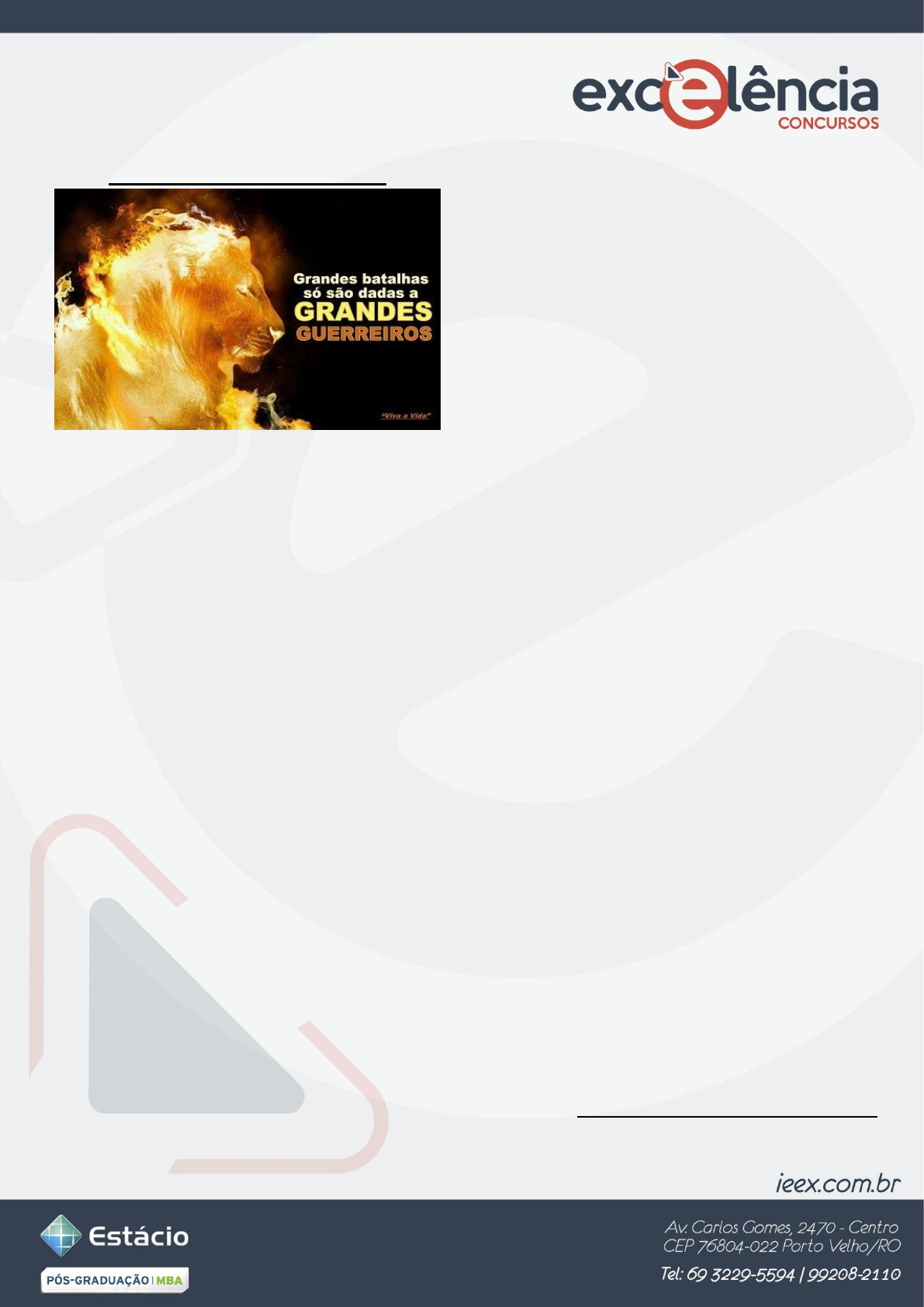 APOSTILA DE RACIOCÍNIO LÓGICO Olá, querido concurseiro. Iniciaremos agora nossa trajetória rumo ao seu cargo no concurso da Assembléia Legislativa de Rondônia. Passarei algumas orientações necessárias para que você tenha 100% de aproveitamento neste módulo: 1) não falte as aulas; 2)entre uma questão e outra tire suas dúvidas com a professora. Não deixe as dúvidas aumentarem; 3) resolva esta apostila toda pelo menos 3 vezes para obter êxito em sua prova. 4) na hora da prova resolva cada questão pelo menos duas vezes; 5) boa POSSE para você! Professora Márcia. Estrutura lógica de relações arbitrárias entre pessoas, lugares, objetos ou eventos fictícios; dedução de novas informações das relações fornecidas e avaliação das condições usadas para estabelecer a estrutura daquelas relações. Compreensão e análise da lógica de uma situação, utilizando as funções intelectuais: raciocínio verbal, raciocínio matemático, raciocínio sequencial, orientação espacial e temporal, formação de conceitos, discriminação de elementos. Operações com conjuntos. Raciocínio lógico envolvendo problemas aritméticos, geométricos e matriciais. Proporcionalidade direta e inversa. Juros. Problemas de contagem e noção de probabilidade. Lógica: proposições, negação, conectivos, implicação. Plano cartesiano: sistema de coordenadas, distância. Problemas de lógica e raciocínio. Lógica: proposições, negação, conectivos, implicação. 01. 2017 FGV Prefeitura de Salvador – BA Considere a afirmação: “Nenhum deputado é sensato”. A sua negação é: a) “Há, pelo menos, um deputado sensato”. b) “Alguns sensatos são deputados”. c) “Todos os deputados são sensatos”. d) “Todos os sensatos são deputados”. e) “Todos os deputados são insensatos”. 02.Ano: 2017Banca: FGVÓrgão: Prefeitura de Salvador - BA Considere a afirmação:“Todos os baianos gostam de axé e de acarajé”. a) “Nenhum baiano gosta de axé nem de acarajé”. b) “Nenhum baiano gosta de axé ou de acarajé”. c) “Alguns baianos gostam de axé, mas não de acarajé”. d) “Quem não gosta de axé nem de acarajé não é baiano”. e) “Pelo menos um baiano não gosta de axé ou não gosta de acarajé”. 03. Ano: 2017Banca: FGVÓrgão: TRT - 12ª Região (SC)Prova: Analista Judiciário - Área Administrativa https://www.qconcursos.com/questoes-de-concursos/provas/fgv-2017-trt-12-regiao-sc-analista-judiciario-area-administrativa A negação lógica da sentença “Se eu como e não corro, então eu engordo” é: a) Se eu como e não corro, então eu não engordo. b) Eu como e não corro e não engordo. c) Se eu não engordo, então eu não como ou corro d) Eu não como e corro e não engordo. e) Se eu não como ou corro, então eu não engordo. 04.Ano: 2015Banca: FGVÓrgão: CODEMIGProva: A dvogado Societário Em uma empresa, o diretor de um departamento percebeu que Pedro, um dos funcionários, tinha cometido alguns erros em seu trabalho e comentou: “Pedro está cansado ou desatento." A negação lógica dessa afirmação é: a) Pedro está descansado ou desatento. b) Pedro está descansado ou atento. c) Pedro está cansado e desatento. d) Pedro está descansado e atento. e) Se Pedro está descansado então está desatento. 02. Ano: 2015Banca: FGVÓrgão: TJ- PIProva: Analista Judiciário - Oficial de Justiça e Avaliador Barbosa afirmou: “Todo cidadão brasileiro tem direito à educação e à saúde". A negação lógica dessa sentença é: A) Nenhum cidadão brasileiro tem direito à educação e à saúde. B) Nenhum cidadão brasileiro tem direito à educação ou à saúde. C) Todo cidadão brasileiro não tem direito à educação e à saúde. D) Algum cidadão brasileiro não tem direito à educação ou à saúde. E) Algum cidadão brasileiro não tem direito à educação nem à saúde. 06.Ano: 2015Banca: FGVÓrgão: TCE- SEProva: Analista de Tecnologia da Informação- Segurança da InformaçãoConsidere a afirmação: “Se hoje é sábado, amanhã não trabalharei." A negação dessa afirmação é: a) Hoje é sábado e amanhã trabalharei. b) Hoje não é sábado e amanhã trabalharei. c) Hoje não é sábado ou amanhã trabalharei. d) Se hoje não é sábado, amanhã trabalharei. e) Se hoje não é sábado, amanhã não trabalharei. 07. Ano: 2013Banca: FGVÓrgão: AL- MTProva: Assistente Social Considere a sentença “Se como doces, então en gordo ou tenho azia.” A negação lógica dessa sentença é a) se não como doces, então não engordo ne m tenho azia. b) se como doces, então não engordo nem te nho azia. c) como doces e não engordo nem tenho azia . d) não como doces e engordo ou tenho azia. e) se não como doces, então engordo ou tenh o azia. 08. Ano: 2013Banca: FGVÓrgão: AL- MTProva: Assistente Social Considere a sentença “Não é verdade que tod o juiz de futebol apita mal os jogos do time para o qual você torce”. Assinale a alternativa que indica a sentença logicamente equivalente à sentença dada. a) Todo juiz apita bem os jogos do time para o qual você torce. b) Nenhum juiz apita bem os jogos do tim e para o qual você torce. c) Todo juiz apita mal os jogos do time para o qual você torce. https://www.qconcursos.com/questoes-de-concursos/provas/fgv-2015-codemig-advogado-societario https://www.qconcursos.com/questoes-de-concursos/provas/fgv-2015-codemig-advogado-societario https://www.qconcursos.com/questoes-de-concursos/provas/fgv-2015-tj-pi-analista-judiciario-oficial-de-justica-e-avaliador https://www.qconcursos.com/questoes-de-concursos/provas/fgv-2015-tj-pi-analista-judiciario-oficial-de-justica-e-avaliador https://www.qconcursos.com/questoes-de-concursos/provas/fgv-2015-tce-se-analista-de-tecnologia-da-informacao-seguranca-da-informacao https://www.qconcursos.com/questoes-de-concursos/provas/fgv-2015-tce-se-analista-de-tecnologia-da-informacao-seguranca-da-informacao https://www.qconcursos.com/