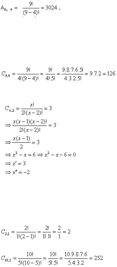 Logo, o número de combinações simples será o quociente 3024:24=126.