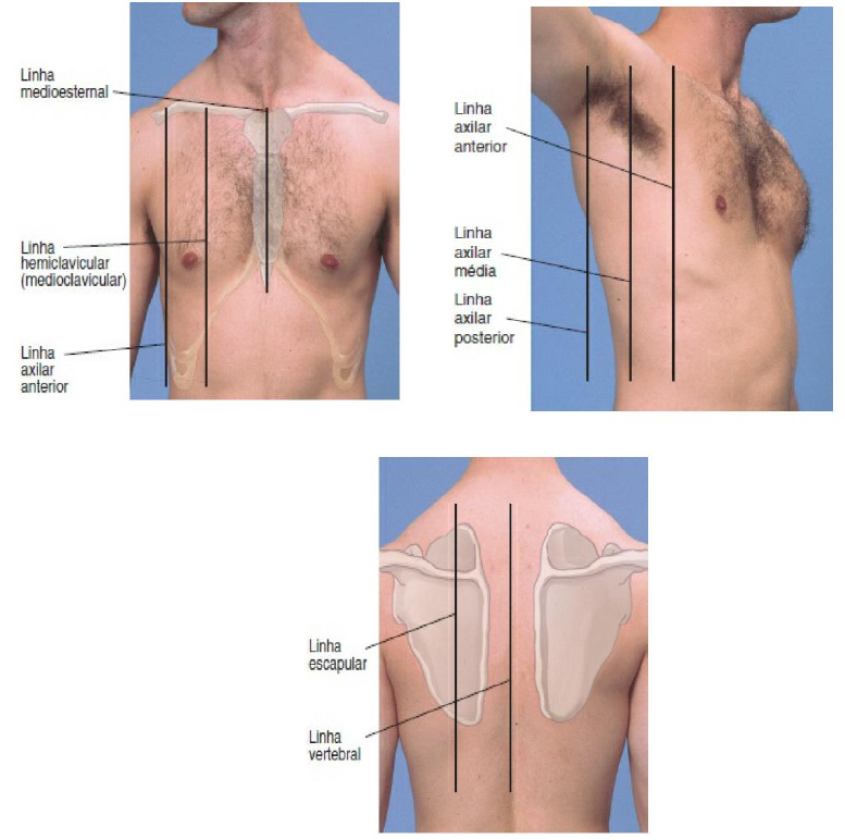 SEMIOLOGIA RESPIRAToRIA 01) Faça uma descrição da topografia do tórax (estruturas anatômicas, pontos de referências, linhas convencionais, regiões e projeções). Os limites da caixa torácica são: anteriormente o osso esterno, lateralmente o conjunto de 12 costelas e posteriormente a col una vertebral de T1 a T12. O limite superior do tórax é estabelecido na região da primeira costela, sendo correspondente à base do pescoço, em que se localiza a fossa supraclavicular. Pontos de referência: a) anterior (ângulo de Louis, terceira cartilagem costal, mamilos e sexta costela) b) posterior (sétima vértebra cervical (mais proeminente), borda superior da escápula e ângulo inferior da escápula que corresponde a sétima vértebra) Linhas convencionais: a) anterior (clavicular, terceira costela, sexta costela, paraesternal, medioesternal e medioclavicular) b) posterior (escapular, vertebral, infraescapular, axilar posterior, 12ª vértebra dorsal e interescápulo vertebral) c) lateral (axilar anterior, sexta costela, axilar média e axilar posterior) Regiões e projeções correspondentes ao pulmão: a) face anterior supraclavicular – campo de Kronig que corresponde ao ápice pulmonar, infraclavicular – maior parte do lobo superior, mamária – lobo médio e parte do inferior hipocôndrios – lobo inferior e fundo do saco pleural b) posterior supraescapular – ápice pulmonar, escapular – lobo superior e inferior infraescapular – lobo inferior 02) Quais são os tipos de tórax dentro da normalidade? E quais as alterações torácicas conforme as anormalidades ósseas do esterno e coluna vertebral? Morfologia normal do tórax: ângulo de Charpy é formado pelo cruzamento das últimas costelas inferiores, tendo como vértice a base do apêndice xifóide. - Tórax normolíneo - aquele cujo ângulo de Charpy é igual a 90 graus. - Tórax longilíneo aquele cujo ângulo de Charpy é menor do que 90 graus. - Tórax brevilíneo - aquele cujo ângulo de Charpy é maior do que 90 graus. Ângulo reto “tórax chato” devido raquitismo, mas não patológico. Inversão da concavidade do ângulo do esterno “tórax de sapateiro” ou infundibiliforme (pectum excavatum) que pode causar transtorno pulmonar. No prontuário deve ser escrito segundo a apresentação da coluna vertebral: tórax escoliótico (desvio lateral da coluna), tórax cifótico (encurvamento posterior da coluna torácica) e tórax lordóico. Anormalidade óssea: cariniforme (concavidade aumentada) e infundibuliforme (inversão da concavidade) Tórax infundibuliforme (pectus excavatus): depressão acentuada no terço inferior do esterno. Tórax em tonel: diâmetro anteroposterior iguala-se ao transversal. Tórax Cariniforme (pombo): aumento no nível do esterno. Tórax Cifótico: encurvamento posterior da coluna por defeito na postura ou lesões 03) O que é tórax em tonel ou barril? Qual o significado clinico? Explique. Tórax de barril mais comumente se relaciona com osteoartrite, conforme você envelhece. Artrite pode endurecer as articulações onde as costelas se unem na espinha, não ao contrário do que acontece com articulações dos dedos no envelhecimento. As costelas tornam-se fixas em sua posição mais expandida, causando a aparência de um peito de barril. 04) Como devemos examinar, quanto a posição e vestes do paciente, na propedêutica respiratória? E quais são os quatro tempos do exame físico respiratório? Cite-os. Inspeção (estática e dinâmica), palpação, percussão e ausculta. O paciente deve estar sem roupa na porção superior (de preferência sentado). Tórax descoberto, iluminação deve ser adequada, ambiente silencioso, paciente confortável. Na parte posterior pedir ao paciente que "abrace", para espaçar as escapulas. Se não for possível faz-se deitado mobilizando-o no leito de um lado ao outro e se também não for possível devido as condições clinicas do paciente, faz-se somente a parede anterior (embora o exame fique prejudicado). Deve-se examinar com o tórax nu, poupando as mulheres de tirar o sutiã. 05) Analise a frase: “O paciente está em hiperventilação devido a taquipneia, embora esteja em hipopneia”. O que significa os termos sublinhados? Qual a relação da ventilação pulmonar, frequência respiratória e volume corrente? Justifique sua resposta. Volume corrente: quantidade de ar que entra e sai do pulmão O paciente que está hiperventilando devido a taquipneia e está com uma hipopneia é porque ele está hiperventilando devido ao aumento da frequência respiratória que pode ser acometido devido a uma obstrução das vias aéreas que estão causando essa falta de ar → caso de asma. Sabendo-se pela fisiologia temos que V = VC x FR, onde V é denominado de ventilação, VC volume corrente e FR frequência respiratória, ter-se-á a relação entre eles. Portanto: V aumentado denomina-se hiperventilação, se diminuído hipoventilação. VC aumentado denomina-se hiperpneia, se diminuído hipopneia. FR aumentada denomina-se taquipneia, se diminuído bradpneia. Convém lembrar que em condições normais, dizemos: normoventilação, normopneia e eupneia. O termo dispneia significa falta de ar, e apneia quando VC = zero, ou seja, parada respiratória. Assim podemos concluir que a frase diz: a hiperventilação ocorre, neste caso, a custas da taquipneia, mesmo com volume corrente baixo. A fórmula acima justifica o produto (hiperventilação), pois um dos fatores encontra-se aumentado e outro diminuído, logo predomínio da taquipneia. Exemplo: paciente taquipneico com inspirações curtas como ocorre numa crise de asma grave. 06) Analise a frase: “A paciente está taquidispneica”. Esta frase está correta ou incorreta. Por quê? Está incorreta, pois dispneia é um termo de anamnese, logo o paciente informa a falta de ar. No entanto taquipneia é um termo do exame físico que é o aumento da frequência respiratória e, portanto, mensurável. 
