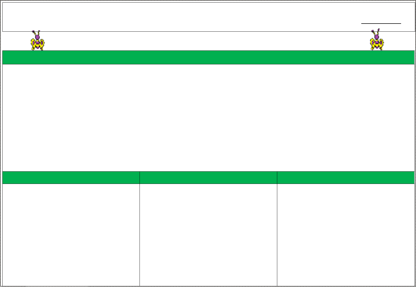 ESCOLA: _________________________________________________________________________________________________________ PROFESSOR (A)_______________________________________________________________________________________ ANO: 2019 PÚBLICO ALVO: ____________________________________ TURNO: ______________________ PERÍODO: 3º BIMESTRE OBJETIVOS DE APRENDIZAGEM (EI01EO05) Reconhecer seu corpo e expressar suas sensações em momentos de alimentação, higiene, brincadeira e descanso. (Eu, o outro e o nós) (EI01EO06) Interagir com outras crianças da mesma faixa etária e adultos, adaptando-se ao convívio social. (Eu, o outro e o nós) (EI01CG04) Participar do cuidado do seu corpo e da promoção do seu bem-estar. (Corpo, gestos e movimentos) (EI01CG05) Utilizar os movimentos de preensão, encaixe e lançamento, ampliando suas possibilidades de manuseio de diferentes materiais e objetos. (Corpo, gestos e movimentos) (EI01TS01) Explorar sons produzidos com o próprio corpo e com objetos do ambiente. (Traços, sons, cores e formas) (EI01TS03) Explorar diferentes fontes sonoras e materiais para acompanhar brincadeiras cantadas, canções, músicas e melodias. (Traços, sons, cores e formas) (EI01EF05) Imitar as variações de entonação e gestos realizados pelos adultos, ao ler histórias e ao cantar. (Escuta, fala, pensamento e imaginação) (EI01EF06) Comunicar-se com outras pessoas usando movimentos, gestos, balbucios, fala e outras formas de expressão. (Escuta, fala, pensamento e imaginação) (EI01ET04) Manipular, experimentar, arrumar e explorar o espaço por meio de experiências de deslocamentos de si e dos objetos. (Espaços, tempos, quantidades, relações e transformações) (EI01ET05) Manipular materiais diversos e variados para comparar as diferenças e semelhanças entre eles. (Espaços, tempos, quantidades, relações e transformações) CONTEÚDOS HABILIDADES METODOLOGIA I - EU, O OUTRO E O NÓS Relação com os Companheiros 1. Regras de convivências 2. Auto iniciativa de interação 2.1 Objetos pessoais 2.2 Objetos coletivos Relação com o meio 3. Exploração do meio ambiente 3.1 Contatos com pequenos animais 3.2 Observação dos hábitos dos animais domésticos Relação de autoconhecimento 4. Noções básicas de saúde, alimentação Vivenciar situações que envolvam regras básicas de convivência, a fim de que a criança possa, gradativamente, familiarizar- se com as diferenças individuais. Reconhecer e compartilhar os objetos pessoais de uso coletivos; Explorar o ambiente para que possa se relacionar com pequenos animais que fazem parte do habitat local; Observar os hábitos e características dos animais domésticos; Desenvolver hábitos de alimentação saudável, para promoções da saúde e bem está física e mental. Promover atividades em que as crianças possam explorar diferentes ambientes do seu convívio, para adaptar-se aos espaços do C.M.E.I. a fim de desenvolver sua autonomia. Proporcionar momentos de interação, de brincadeiras e de reflexão tendo como tema central os animais do convívio das crianças; Organizar um mural com imagens de animais domésticos e de estimações fornecidas pelas próprias crianças Promover momentos de interação com auxílio de vídeos e imagens alusiva a hábitos de alimentação saudável. PLANEJAMENTO BIMESTRAL PARA EDUCAÇÃO INFANTIL 0 A 1 ANO E 6 MESES BLOG: evanildes07.blogspot.com BLOG: evanildes07.blogspot.com II - CORPO, GESTOS E MOVIMENTOS Experiências com brincadeiras 1. Ritmo corporais 1.1 Jogos 1.2 Brincadeiras com pneus, bolas, corda, etc. Experiências de cuidados e bem-estar: 2. Relaxamento ou sono 3. Alimentação/Hábitos de higiene Experiências com músicas 4. Exploração do espaço, objetos e brinquedos Desenvolver movimentos corporais acompanhando diversos ritmo com ou sem auxílio de músicas, para desenvolvimento dos grandes músculos. Participar de experiencias com jogos, brincadeiras com bolas, pneus, cordas ou brincadeiras livres, na companhia de outras crianças para promoção de laços de amizades e companheirismo; Habituar-se a dormir com os ruídos habituais, assim como estar com outras pessoas; Usar o corpo para explorar o espaço, objetos e brinquedos Promover diversos tipos de brincadeiras, jogos, atividade rítmicas sem ou com auxílio de músicas, fazendo uso da exploração de diferentes espaços, objetos e brinquedos; Colocar músicas suaves para relaxamento, repouso ou no horário das refeições ( o som deve ser baixo); Durante o período de almoço, do lanche, do sono, etc. promover atividade de formação de hábitos de higiene, atividades de relaxamento como: Tocar, embalar, massagear, acalentar os bebês que desejem ou que necessitem desse cuidado para relaxar e/ou dormir. III - TRAÇOS, SONS, CORES E FORMAS Linguagem Musical 1 Imitação dos sons do ambiente próximo 2 Escutar obras musicais de diferentes gêneros; Linguagem Visual 3 Leitura de imagens diversas; 4 Movimentos gestuais: produção de marcas gráficas usando partes do corpo. 5 Desenho livre Brincar com a música e imitar diversos tipos de sons presentes na natureza local; Escutar obras musicais de diferentes gêneros: Infantil, folclórico, regionais, etc.; Observação e identificação de imagens diversas; Explorar e reconhecer deferentes movimentos gestuais visando à produção de marcas gráficas usando partes do corpo Representar suas ideias e imaginação através de desenhos livre. Selecionar diferentes tipos de sons para promoção de escutas e reprodução usando partes do corpo; Cantar para crianças canções de ninar tradicionais, produzir sons diversos por meios de imitação de sons de animais, ruídos, sons corporais, como palmas, batinas nas pernas, pés etc. Disponibilizar espaço para que as crianças possam expor suas imagens ou produções artísticas. IV – ESCUTA, FALA, PENSAMENTO E IMAGINAÇÃO Linguagem Oral e Escrita 1. Coordenação Visomotora 1.1 Alfabetos(manuseio) 1.2 Nome (Ident