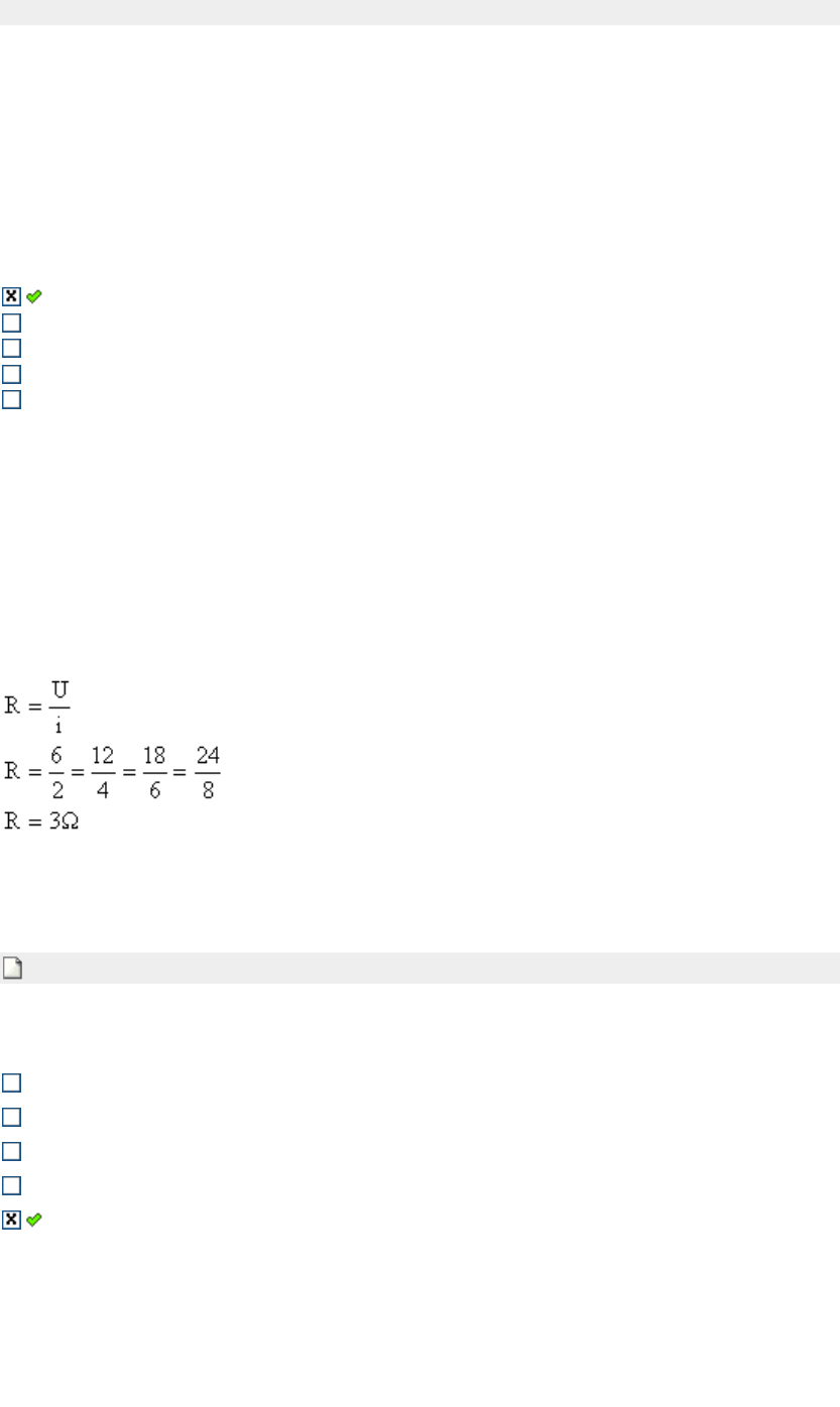1a Questão (Ref.:201803604224) Pontos: 0,1 / 0,1 Um bastão, carregado eletricamente, atrai uma pequena esfera de isopor, pendurada por um fio de seda. Uma pessoa, observando o fenômeno, elaborou as seguintes hipóteses: I) A esfera esta carregada eletricamente II) A esfera pode estar neutra III) Trocando-se o bastão por outro com carga de sinal oposto, a esfera certamente será atraída. Assinale a(s) hipótese(s) correta(s) se apenas a hipótese II estiver correta se apenas a hipótese I estiver correta se todas as hipóteses estiverem corretas. se apenas as hipóteses II e III estiverem corretas. se apenas a hipótese III estiver correta Respondido em 06/04/2020 08:17:54 Compare com a sua resposta: Um condutor ôhmico é caracterizado por não alterar sua resistência quando mudam a corrente ou a tensão, fazendo com que o produto entre as duas permaneça constante. Se o resistor descrito é ôhmico, basta calcularmos a resistência em um dos dados fornecido (exceto o 0V, pois quando não há tensão não pode haver corrente), esse cálculo é dado por: 2a Questão (Ref.:201803604534) Pontos: 0,1 / 0,1 Uma carga pontual Q, positiva, gera no espaço um campo elétrico. Num ponto P, a 0,5m dela, o campo tem intensidade E=7,2.106N/C. Sendo o meio vácuo onde K0=9.109 unidades S. I., determine Q. 2,0 . 10-6C 4,0 . 10-4C 4,0 . 10-6C 2,0 . 10-2C 2,0 . 10-4C Respondido em 06/04/2020 08:18:51 Compare com a sua resposta: I. Verdadeira II. Verdadeira lll. Falsa IV. Verdadeira 3a Questão (Ref.:201803604265) Pontos: 0,1 / 0,1 Na Grécia Antiga, o filósofo Thales de Mileto verificou que uma quantidade de âmbar, quando atritado com outro material, atraia palha e fragmentos de madeira. Atualmente, sabe-se que tal fenômeno é associado a partículas elementares, como prótons e elétrons. Estes possuem uma propriedade inerente que faz com que o fenômeno ocorra. Podemos afirmar que tal propriedade em questão é: linhas de corrente campo elétrico carga elétrica carga magnética densidade Respondido em 06/04/2020 08:19:28 Compare com a sua resposta: De acordo com a terceira Lei de Newton, as forças de interação elétrica são iguais em módulo e, portanto, a razão entre elas é 1. 4a Questão (Ref.:201803604009) Pontos: 0,1 / 0,1 A energia potencial elétrica U de duas partículas em função da distância r que as separa está representada no gráfico da figura abaixo. Uma das partículas está fixa em uma posição, enquanto a outra se move apenas devido à força elétrica de interação entre elas. Quando a distância entre as partículas varia de r i = 3 x 10-10 m a rf = 9 x 10-10 m, a energia cinética da partícula em movimento diminui 1 x 10-18 J diminui 2 x 10-18 J aumenta 1 x 10-18 J. não se altera aumenta 2 x 10-18 J. Respondido em 06/04/2020 08:20:45 Compare com a sua resposta: Temos Q1=-Q e Q2=3Q após o contato entre elas teremos: Q1+Q2=Q1+Q2 mas temos ainda que após o contato as cargas são idênticas, entao Q1=Q2 = Q o que nos fornece que Q = (-Q+3Q)/2 ⇒ Q=Q Antes do contato tínhamos: F=3kQ2/d2 e após o contato teremos F=kQ2/d entao F/F= (3kQ2)/(d2/kQ2/d2) = 3 5a Questão (Ref.:201803604122) Pontos: 0,1 / 0,1 Um corpo é eletrizado com carga Q = 64.10-6 C. Qual é o número de elétrons que foi retirado do corpo para que ele adquirisse essa carga? 4.10^13 elétrons 3.10^14 elétrons 4.10^19 elétrons 4.10^16 elétrons 4.10^14 elétrons Respondido em 06/04/2020 08:21:47 Compare com a sua resposta: 2,4 Ω.